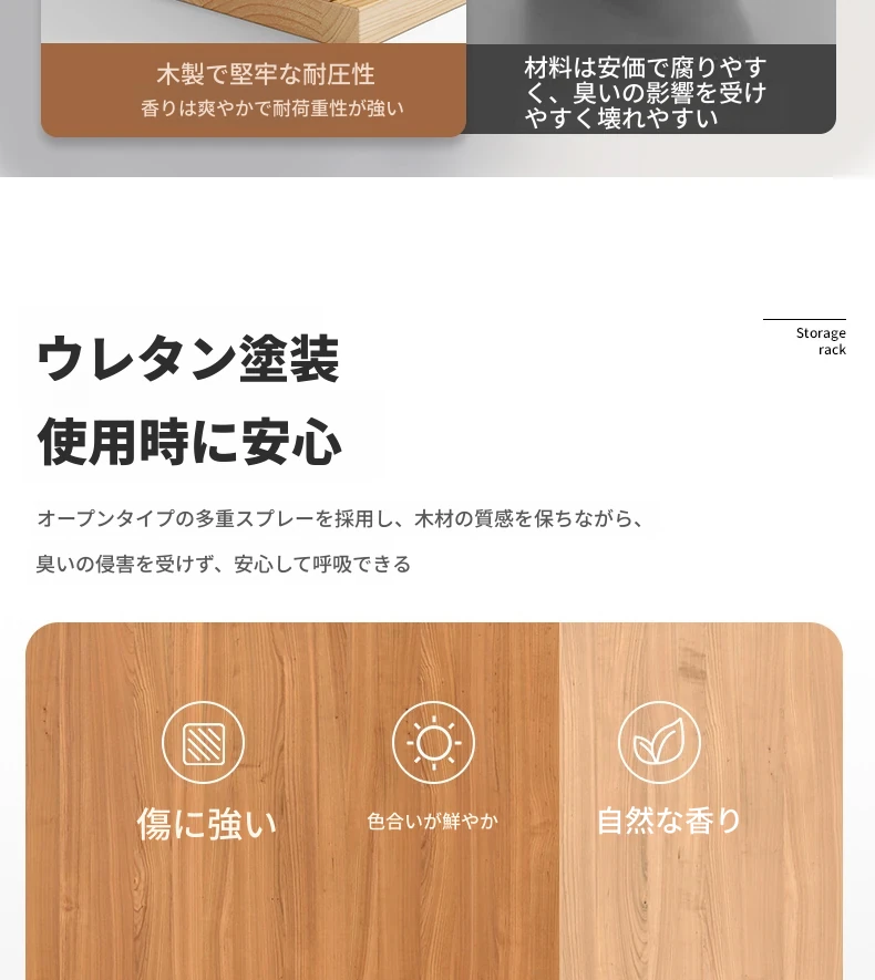 【アップグレード・ハイ・ディープタイプ】全無垢材-クリア塗装【100長×22幅×86高】