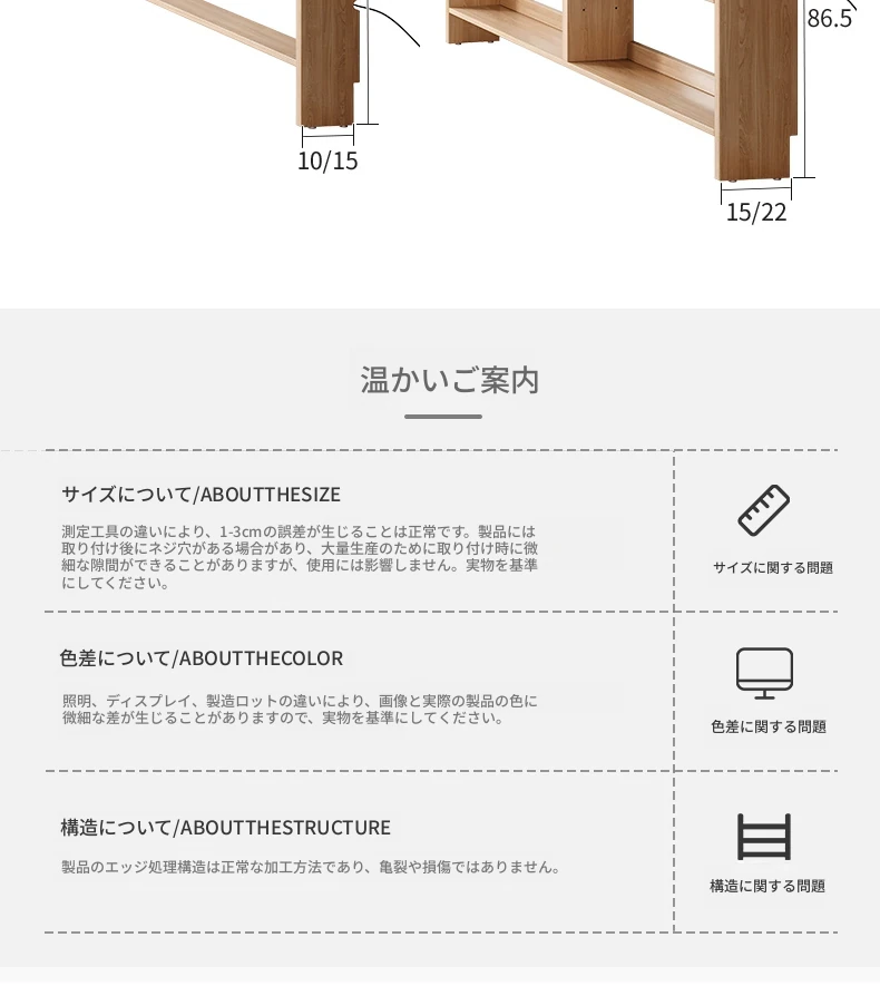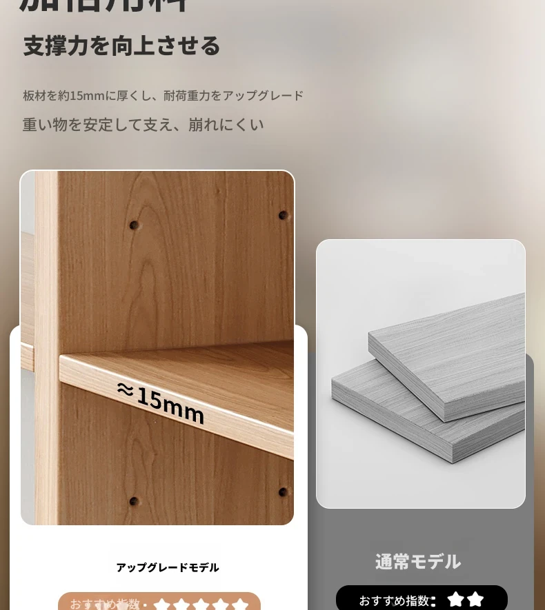 【アップグレード・ハイ】全無垢材-クリア塗装【100長×15幅×86高】