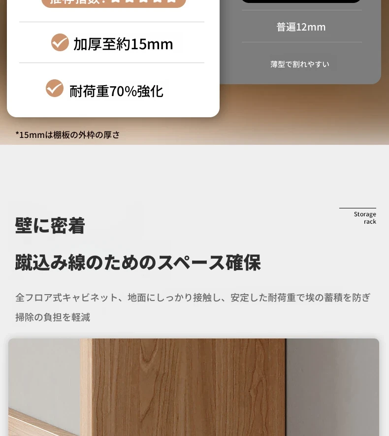 【ディープタイプ】全無垢材-クリア塗装【150長×15幅×69高】