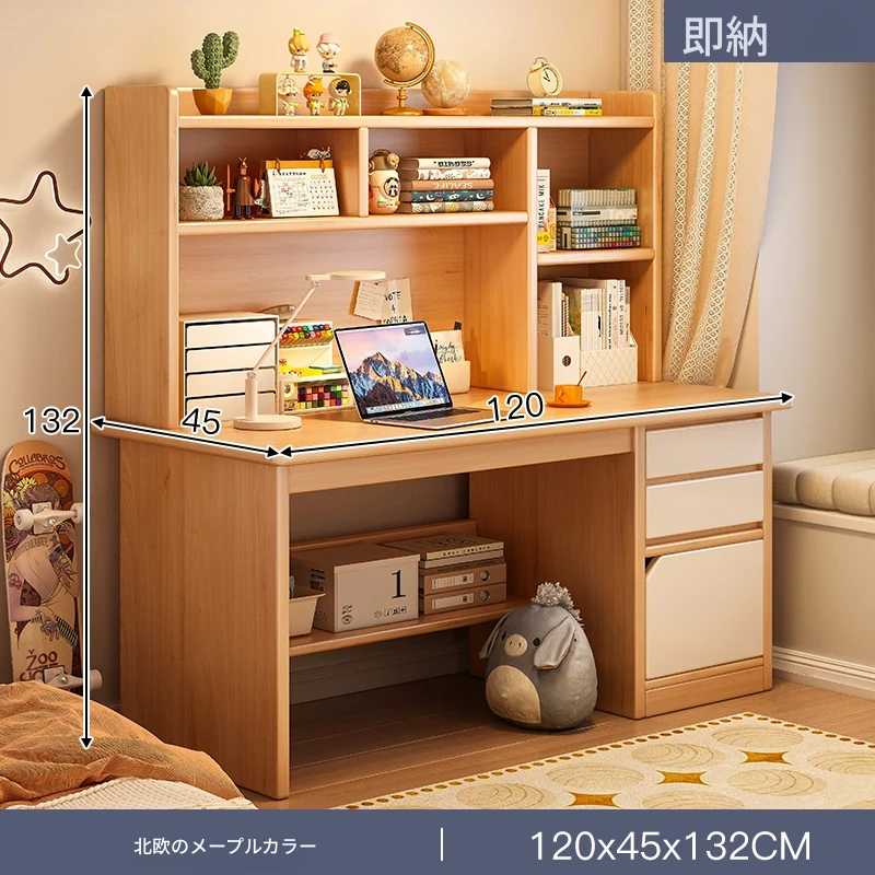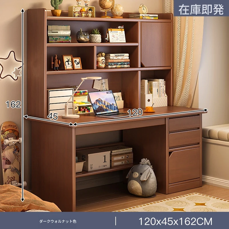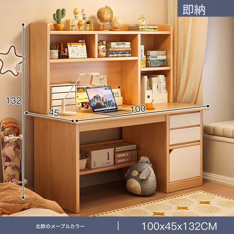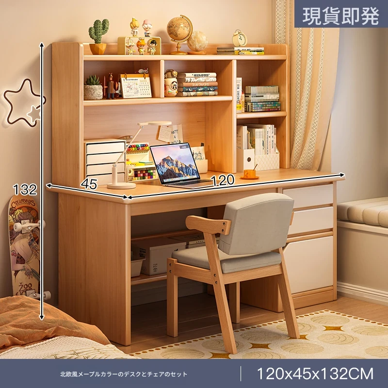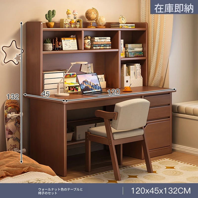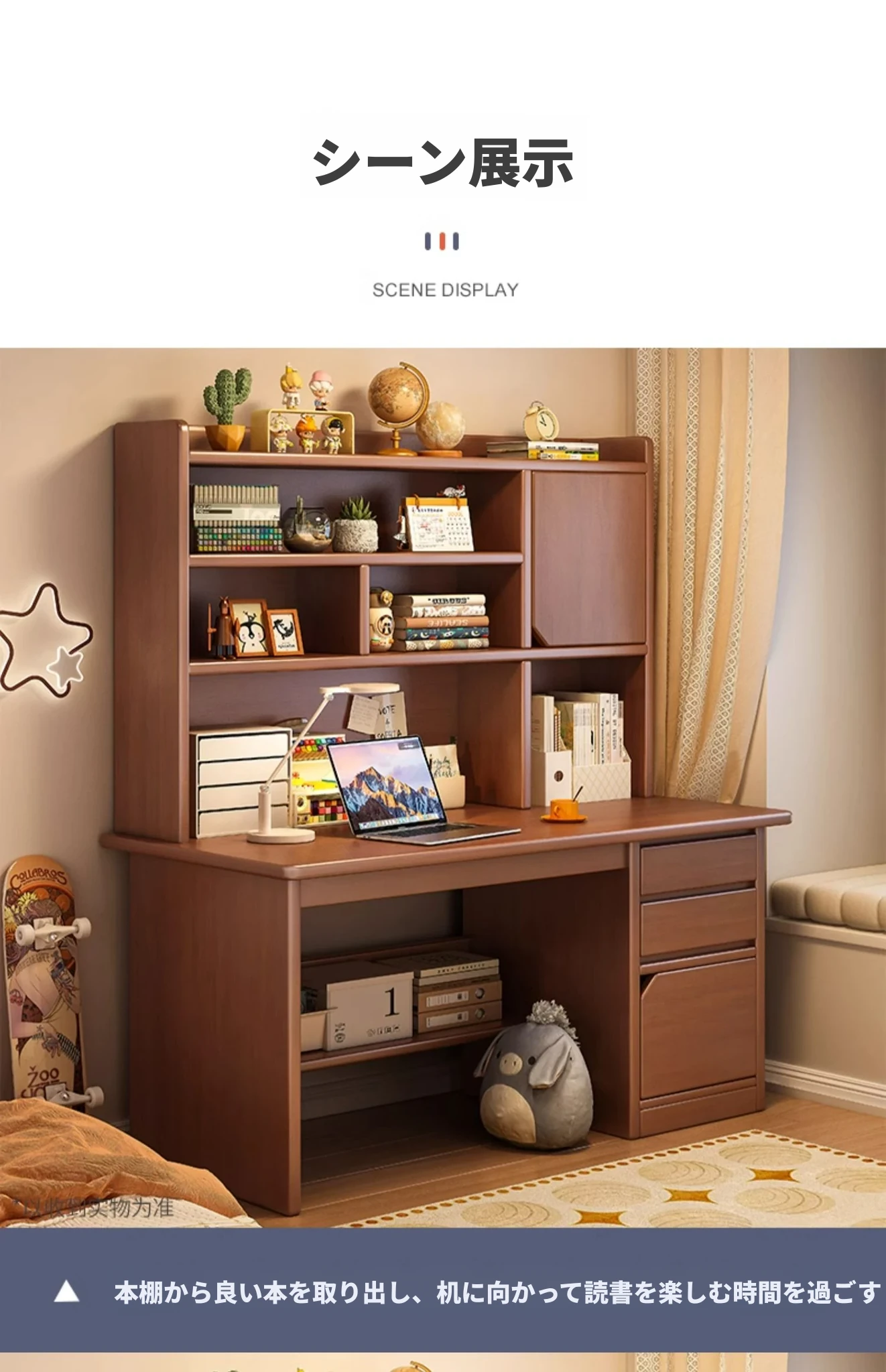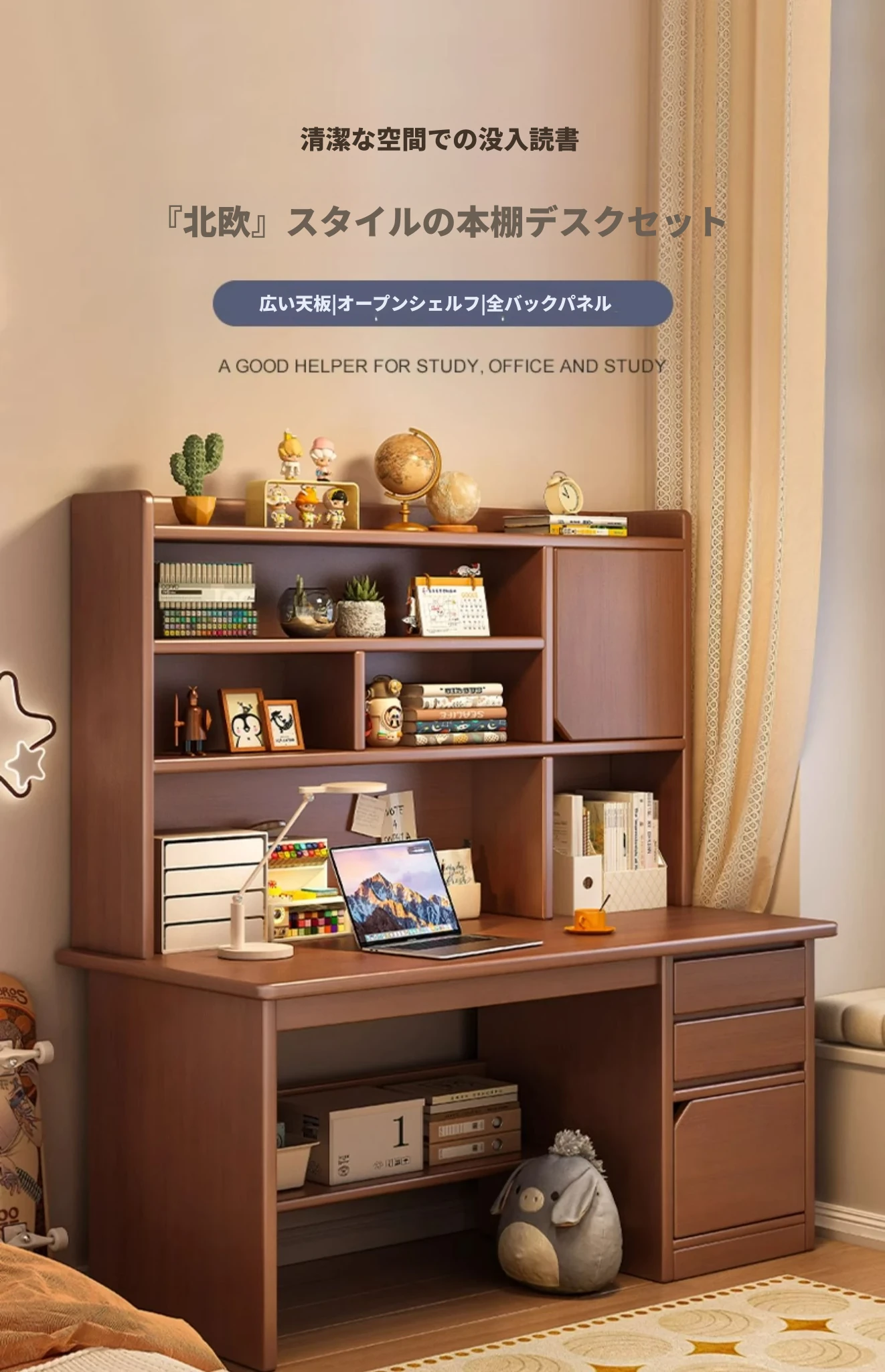 天然木材使用のスタイリッシュなデスク&書棚一体型、引き出し付き!中学生に最適な勉強・執筆用デスク、家庭用・寝室用のコンピューターデスクとしても大活躍。シンプルで機能的なデザインで、あなたの学習環境をアップグレード!