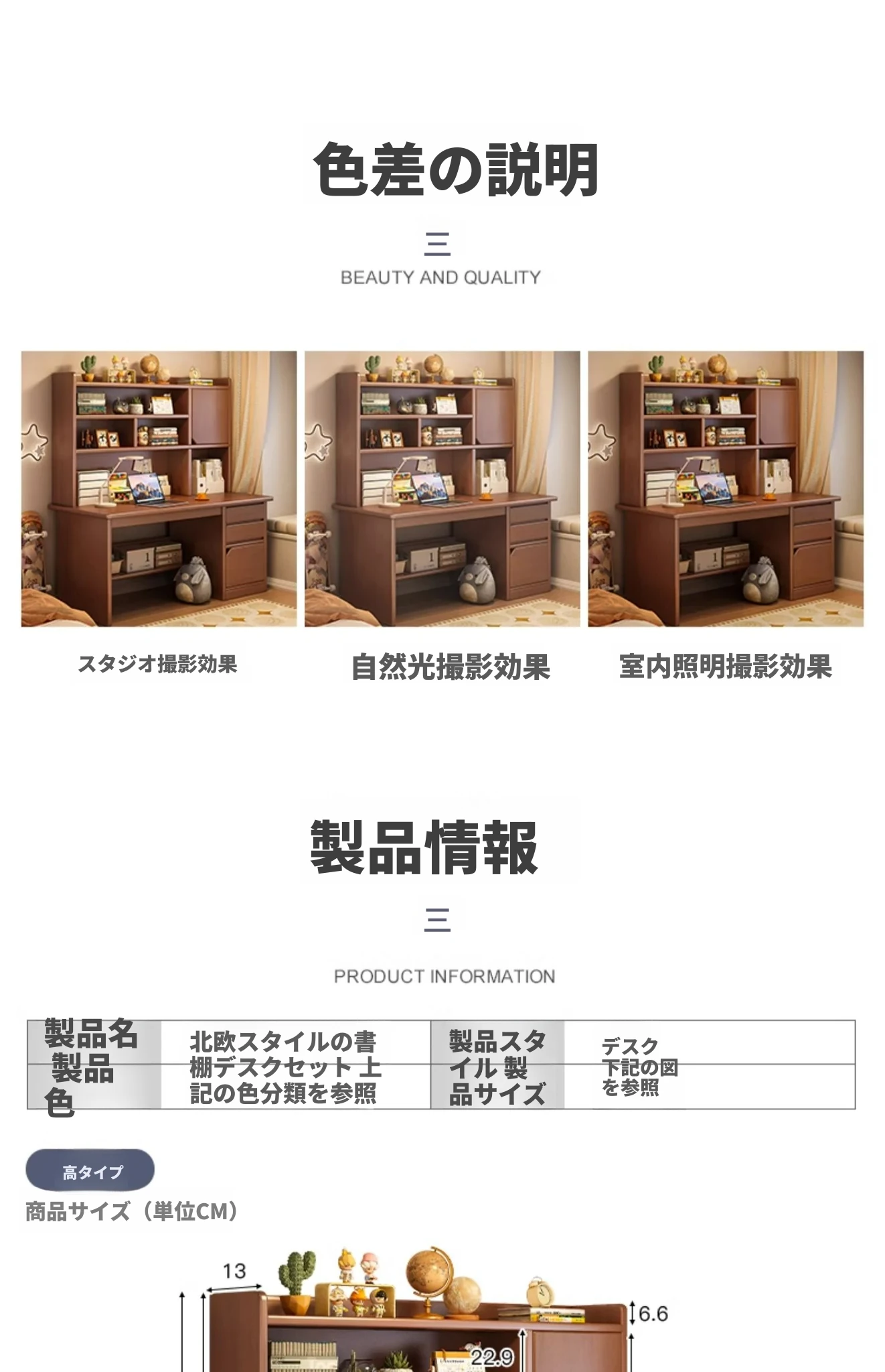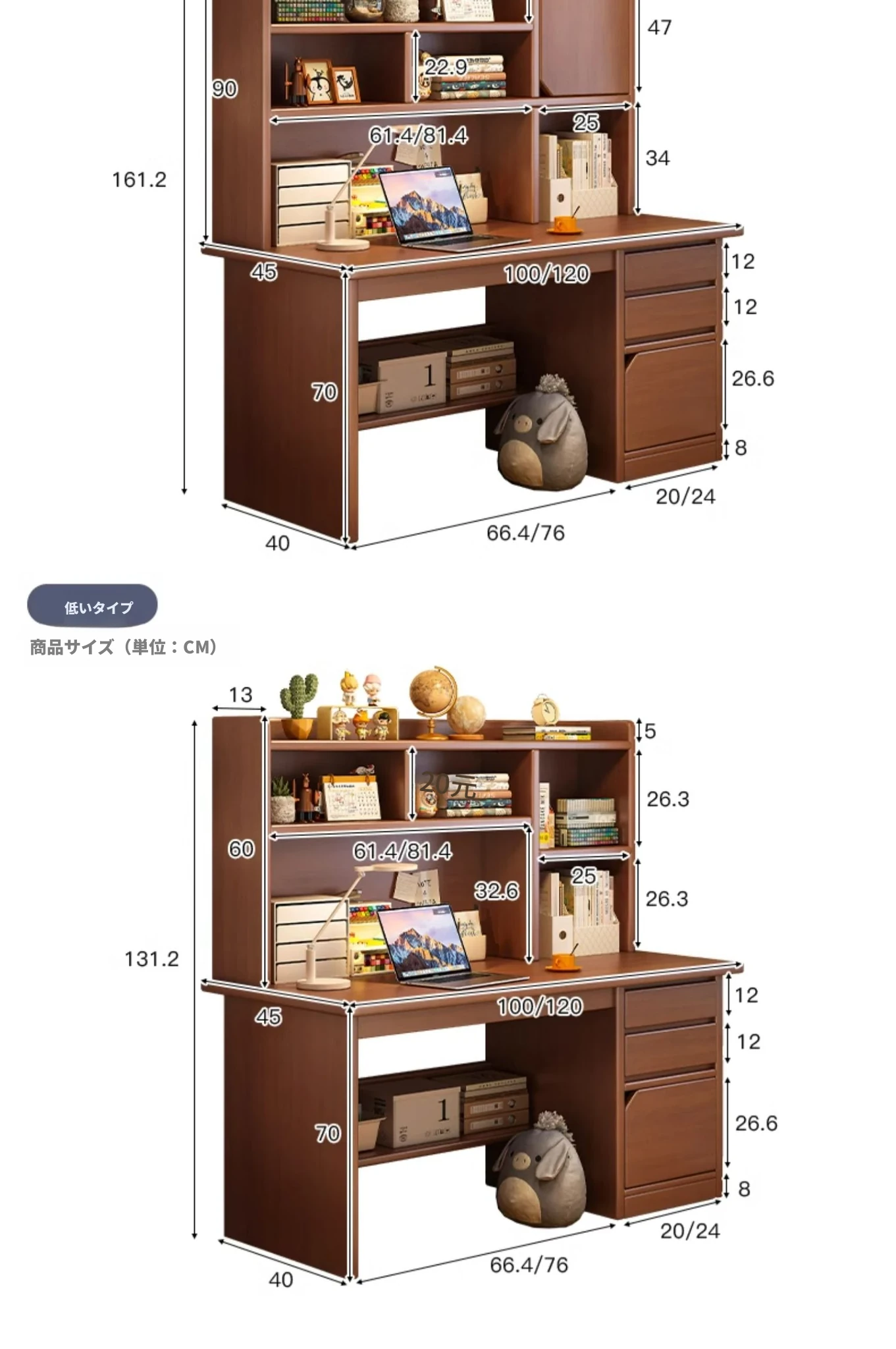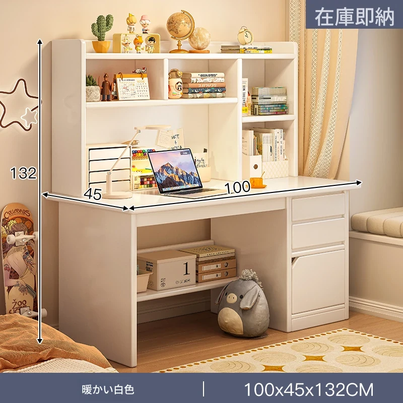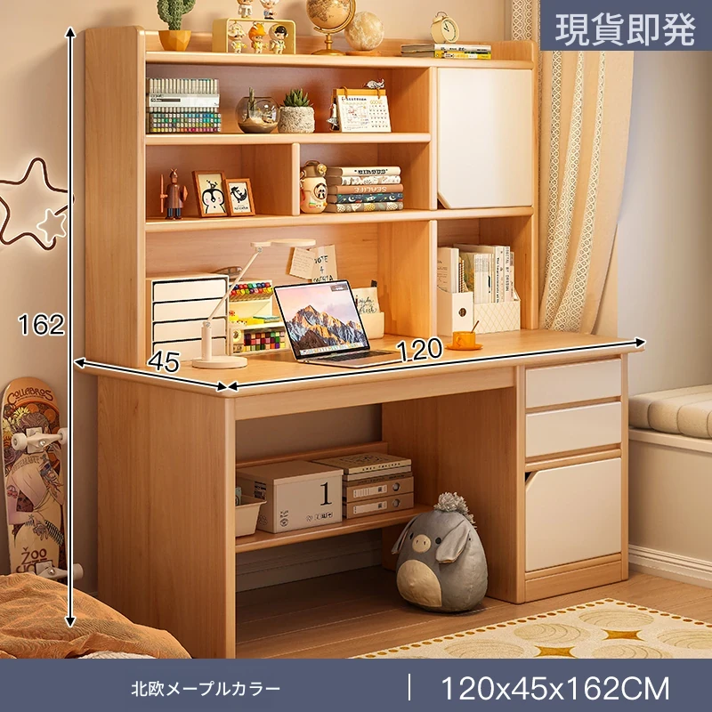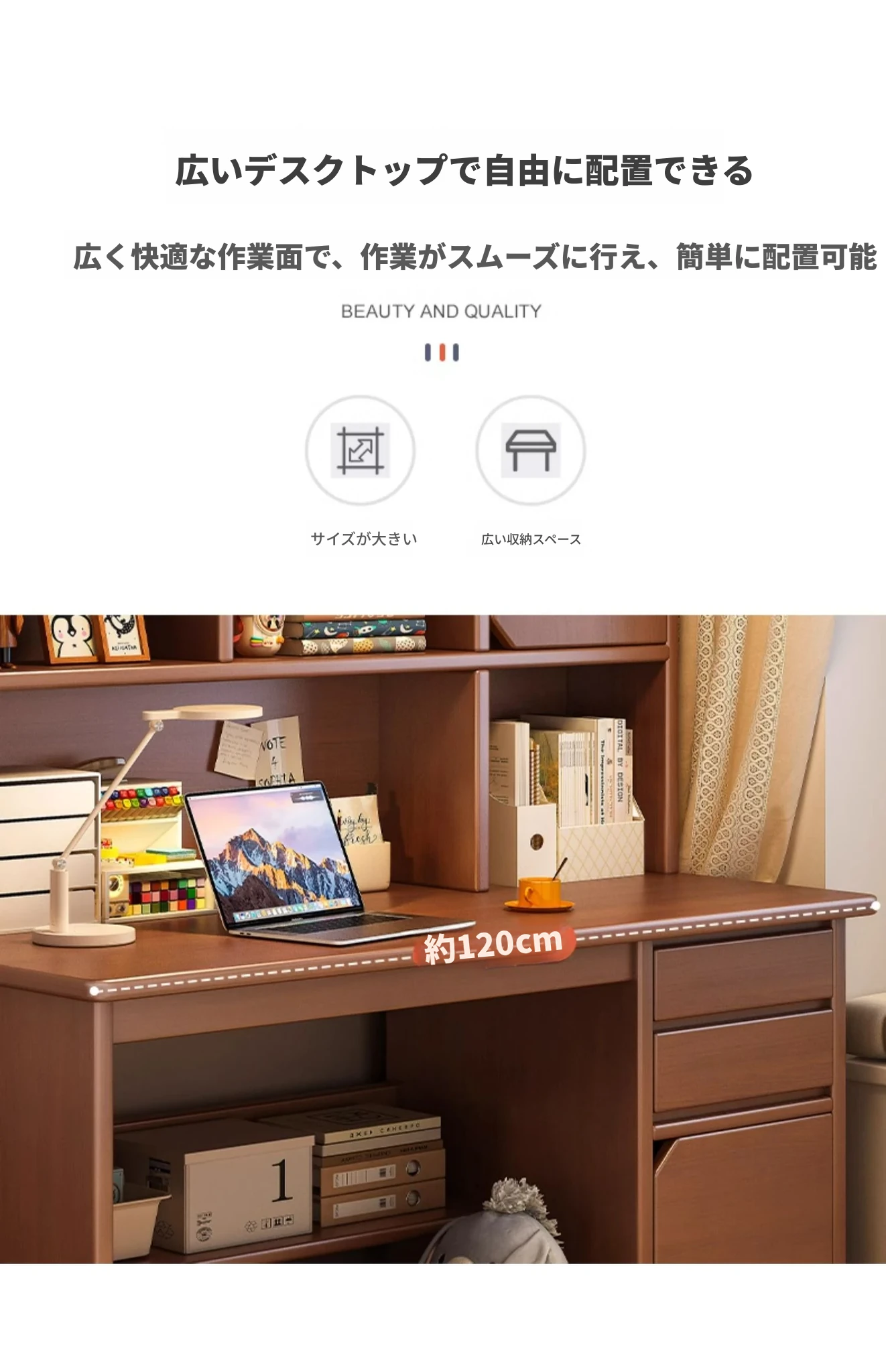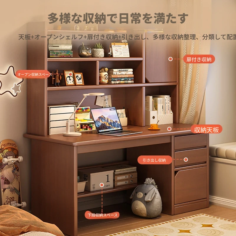 天然木材使用のスタイリッシュなデスク&書棚一体型、引き出し付き!中学生に最適な勉強・執筆用デスク、家庭用・寝室用のコンピューターデスクとしても大活躍。シンプルで機能的なデザインで、あなたの学習環境をアップグレード!