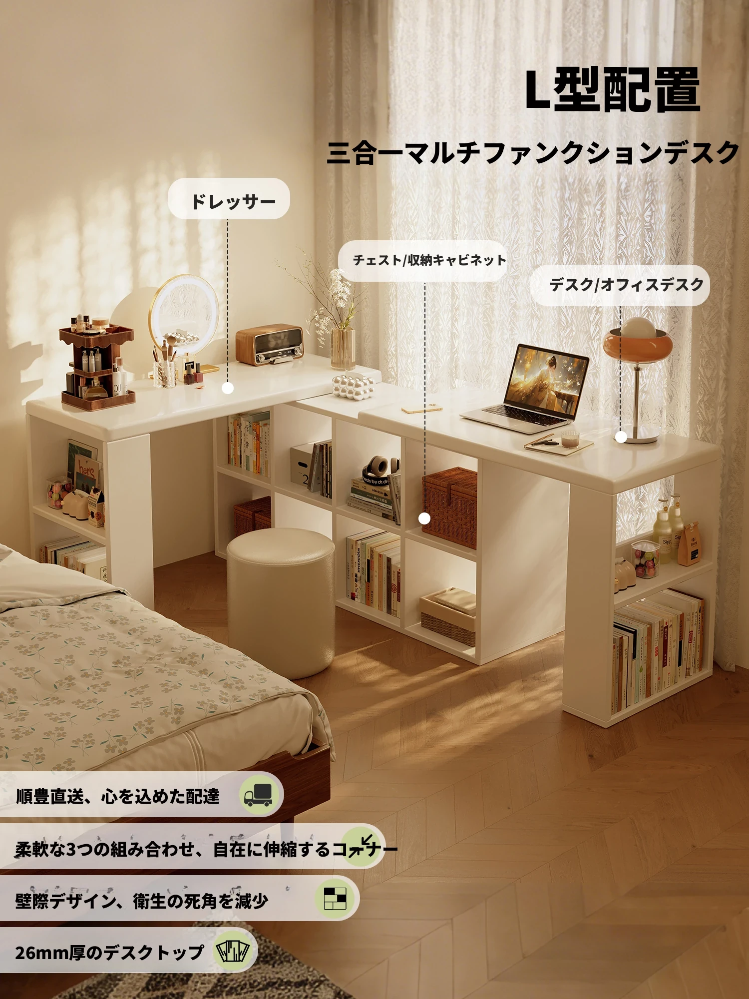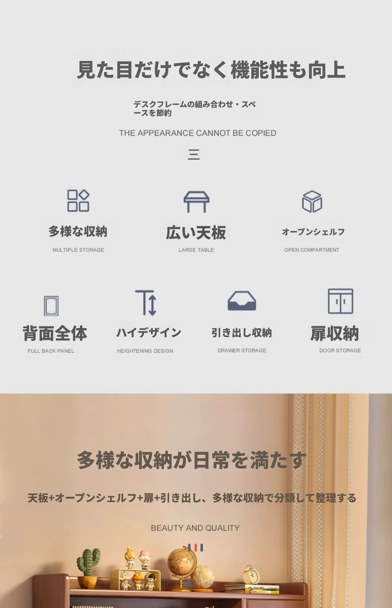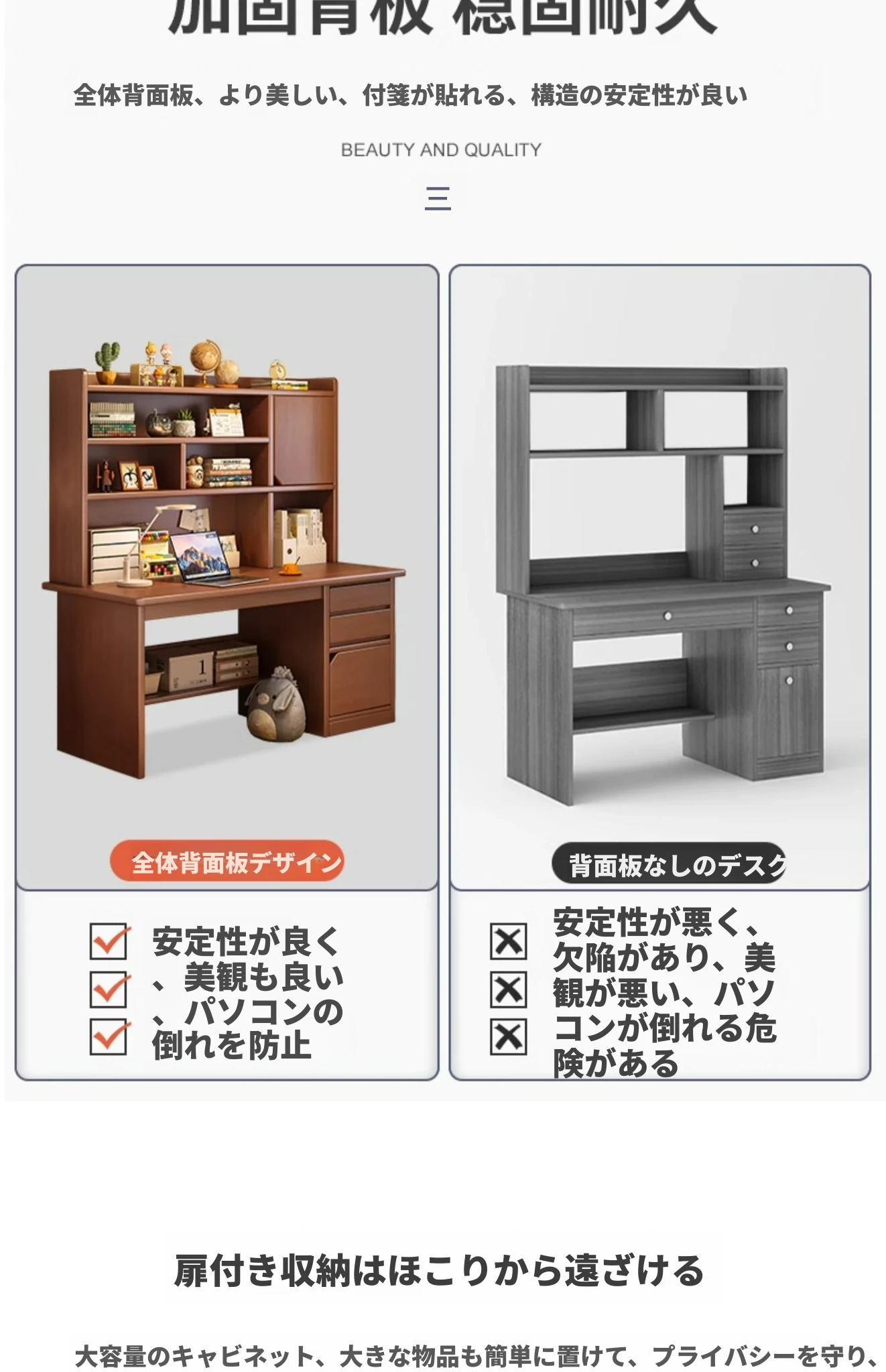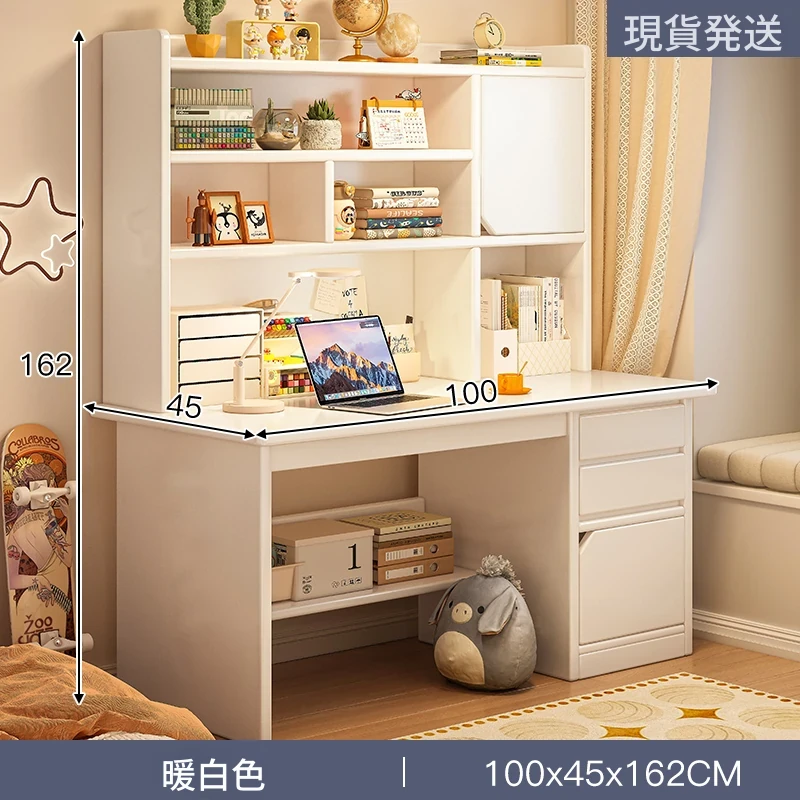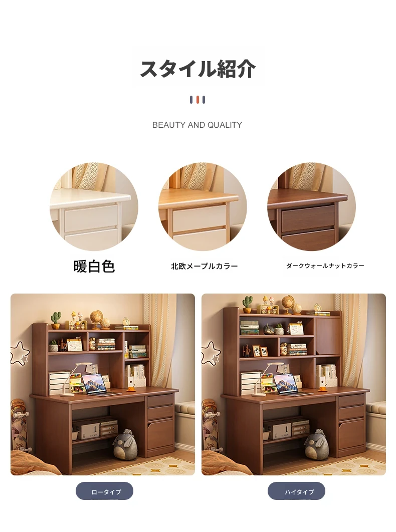 天然木材使用のスタイリッシュなデスク&書棚一体型、引き出し付き!中学生に最適な勉強・執筆用デスク、家庭用・寝室用のコンピューターデスクとしても大活躍。シンプルで機能的なデザインで、あなたの学習環境をアップグレード!