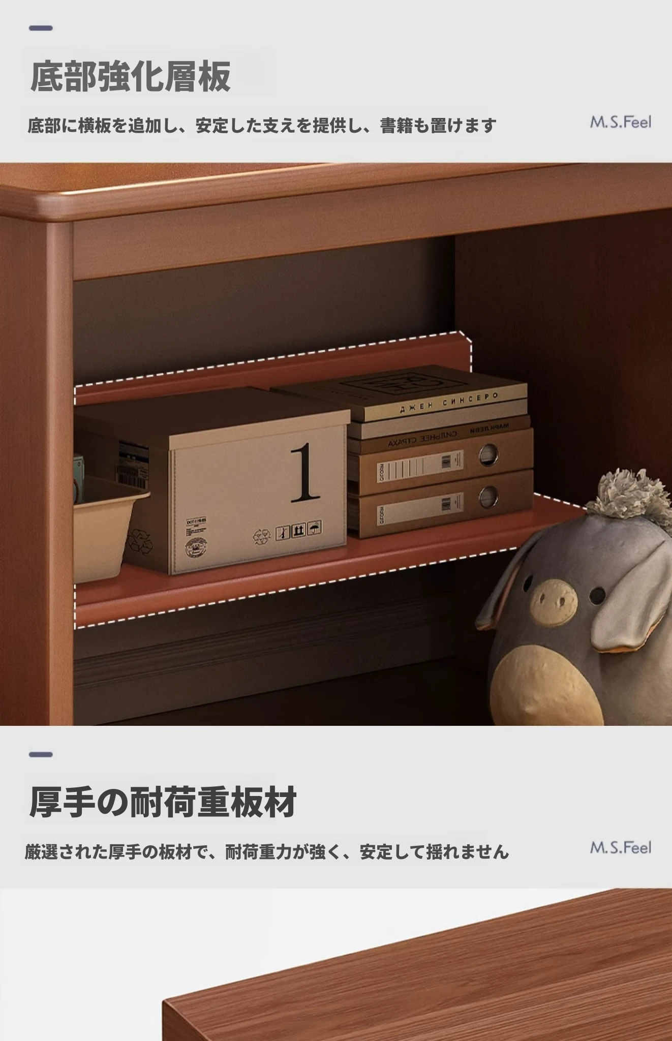 【厚手の無垢材】100cm北欧メープル色ハイキャビネット扉付き