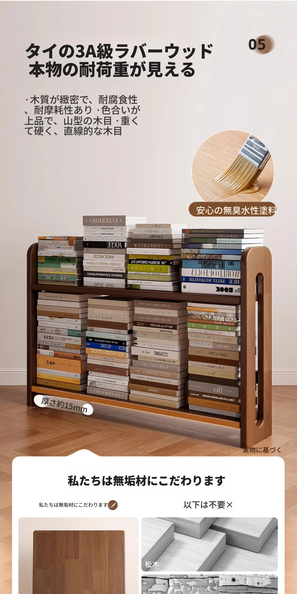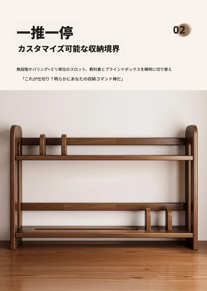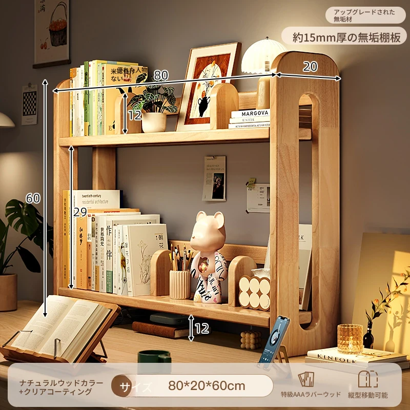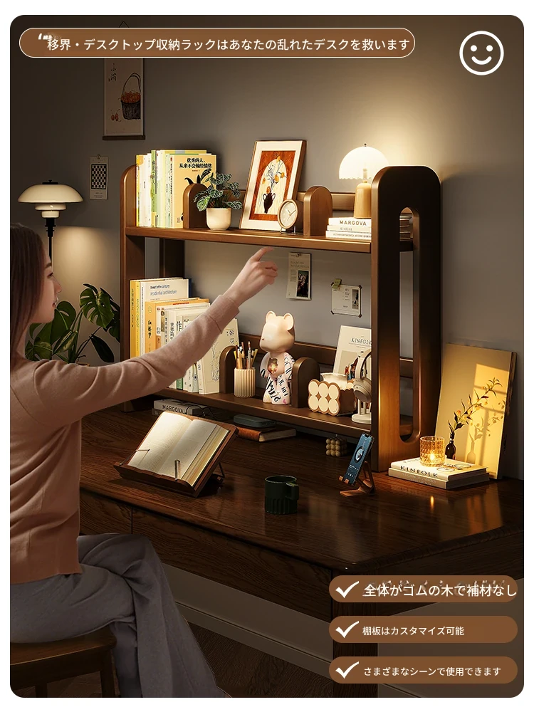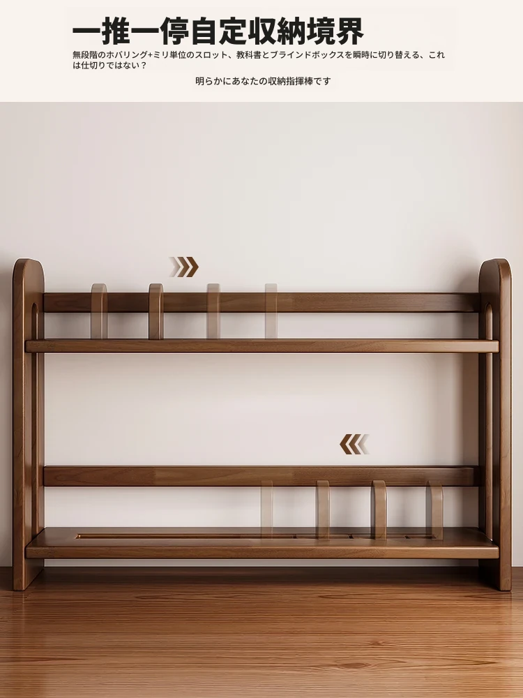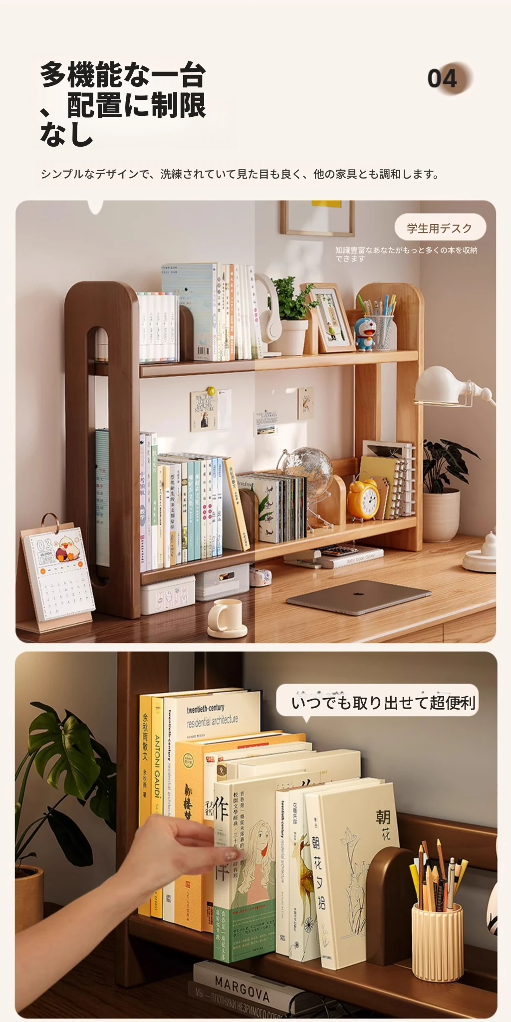 全実木製デスクトップ書棚 スタンド式 多段階 学生用 シンプルな収納ラック 子供向け 本を立てて収納できる便利な書架
