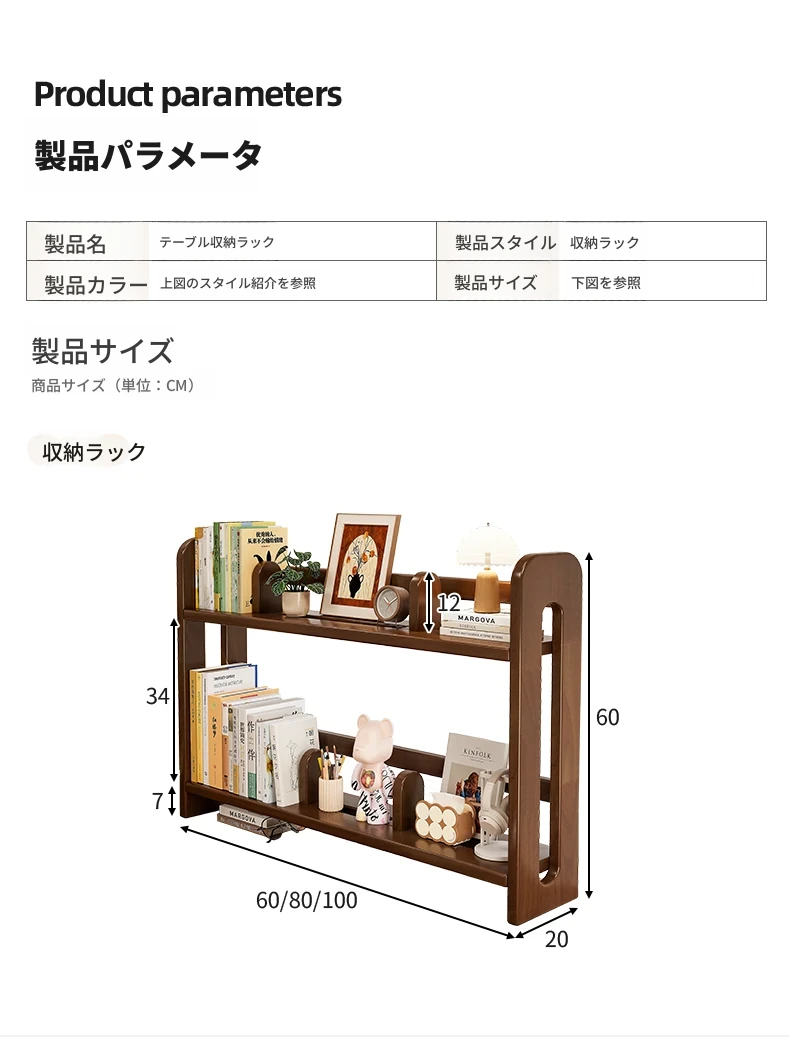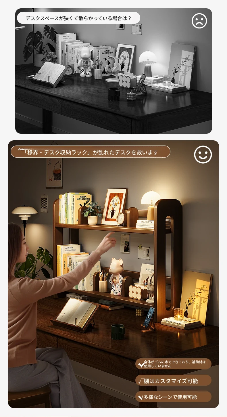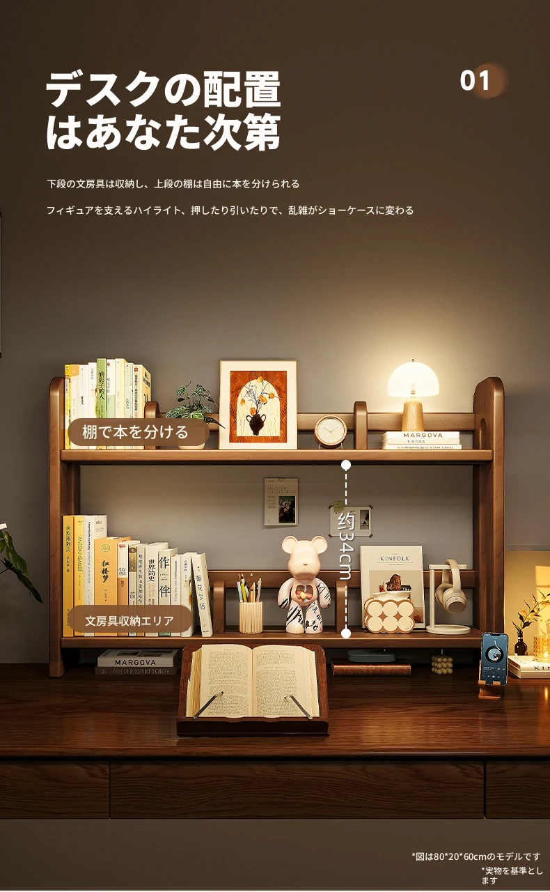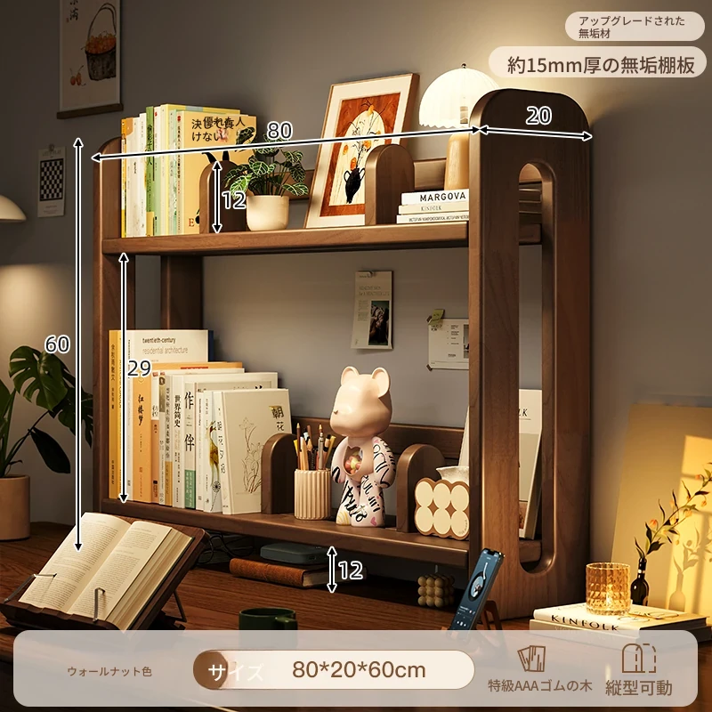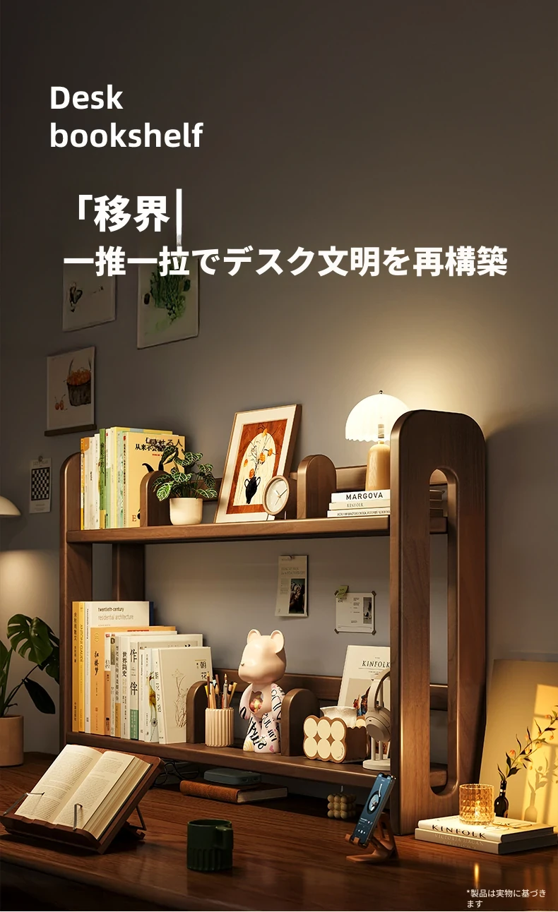 全実木製デスクトップ書棚 スタンド式 多段階 学生用 シンプルな収納ラック 子供向け 本を立てて収納できる便利な書架