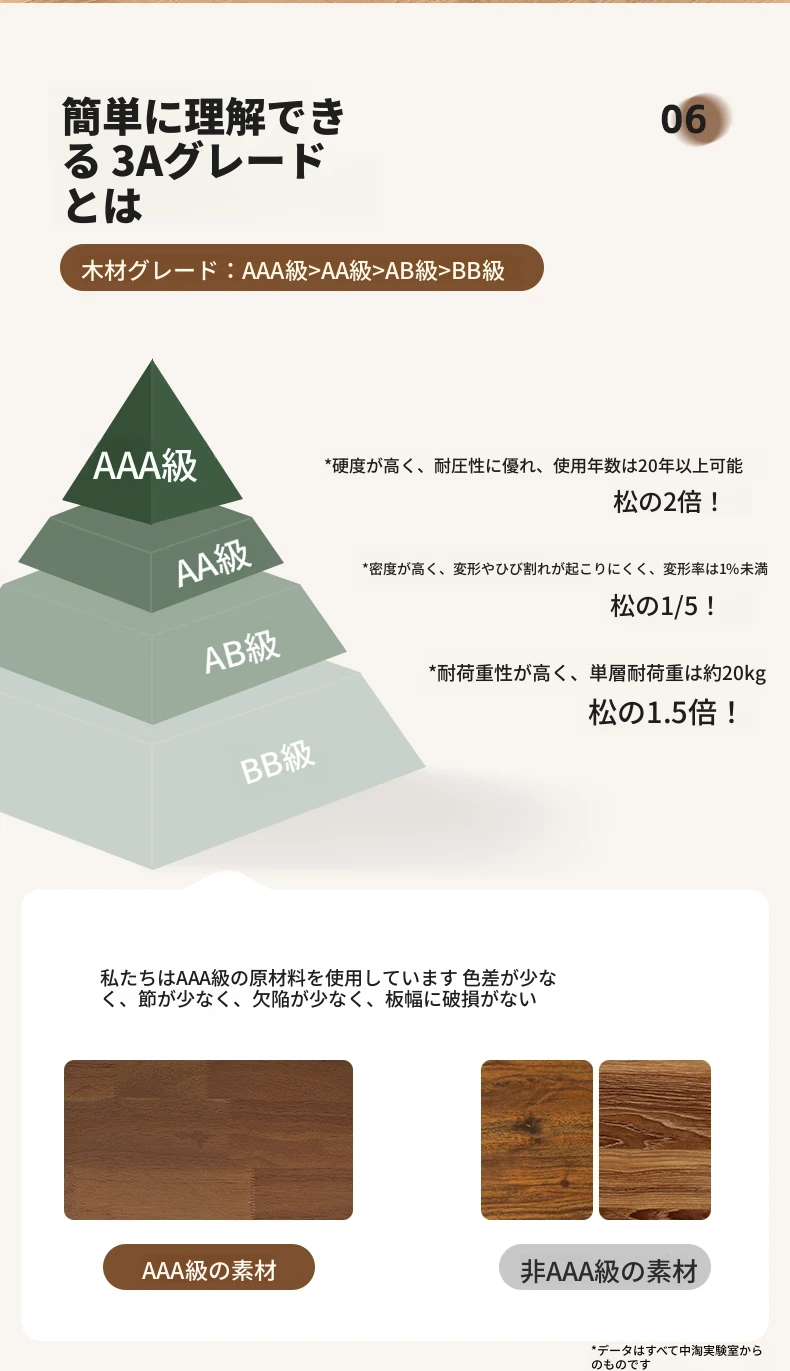 【全実木特級AAA輸入ゴムの木】3段チェリー色
