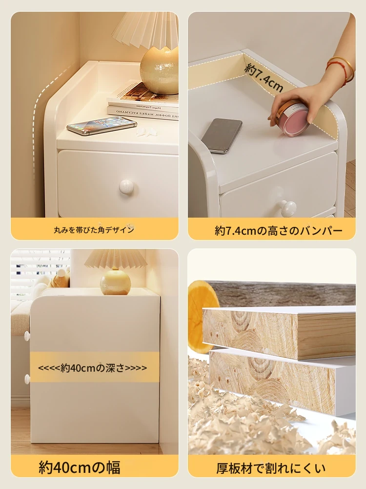 無垢エコボード | 暖白色 | ダブル引き出し 35cm