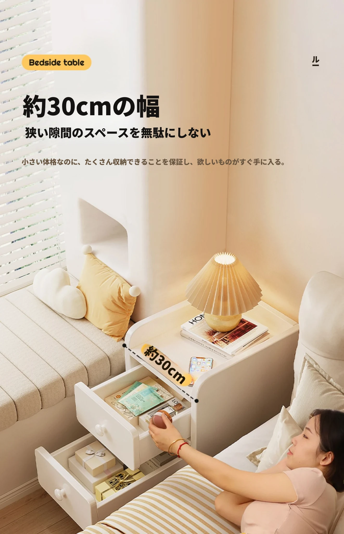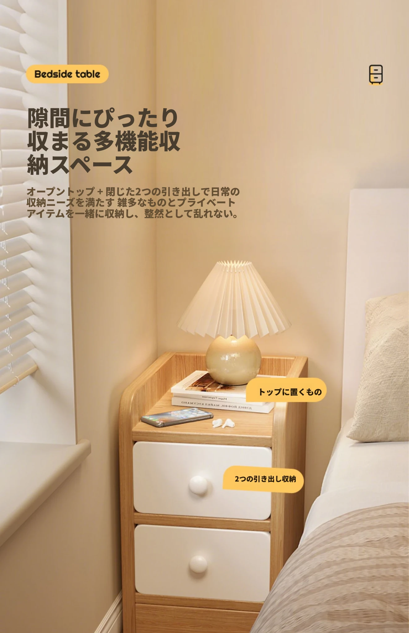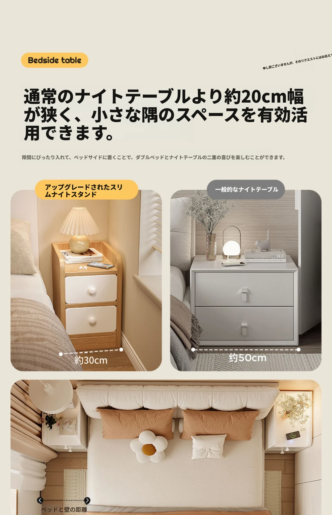 実木製のベッドサイドキャビネット - 幅30cmのコンパクト設計!20cmの狭いスペースにもフィットするスリムな収納ボックス。おしゃれで機能的、あなたの寝室にぴったりのアイテムです!