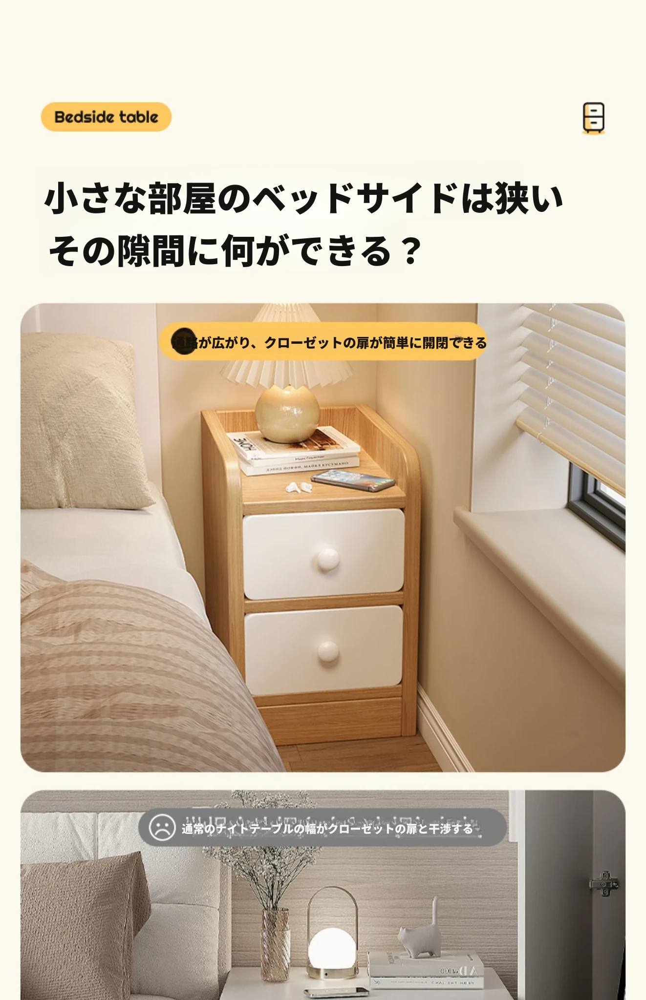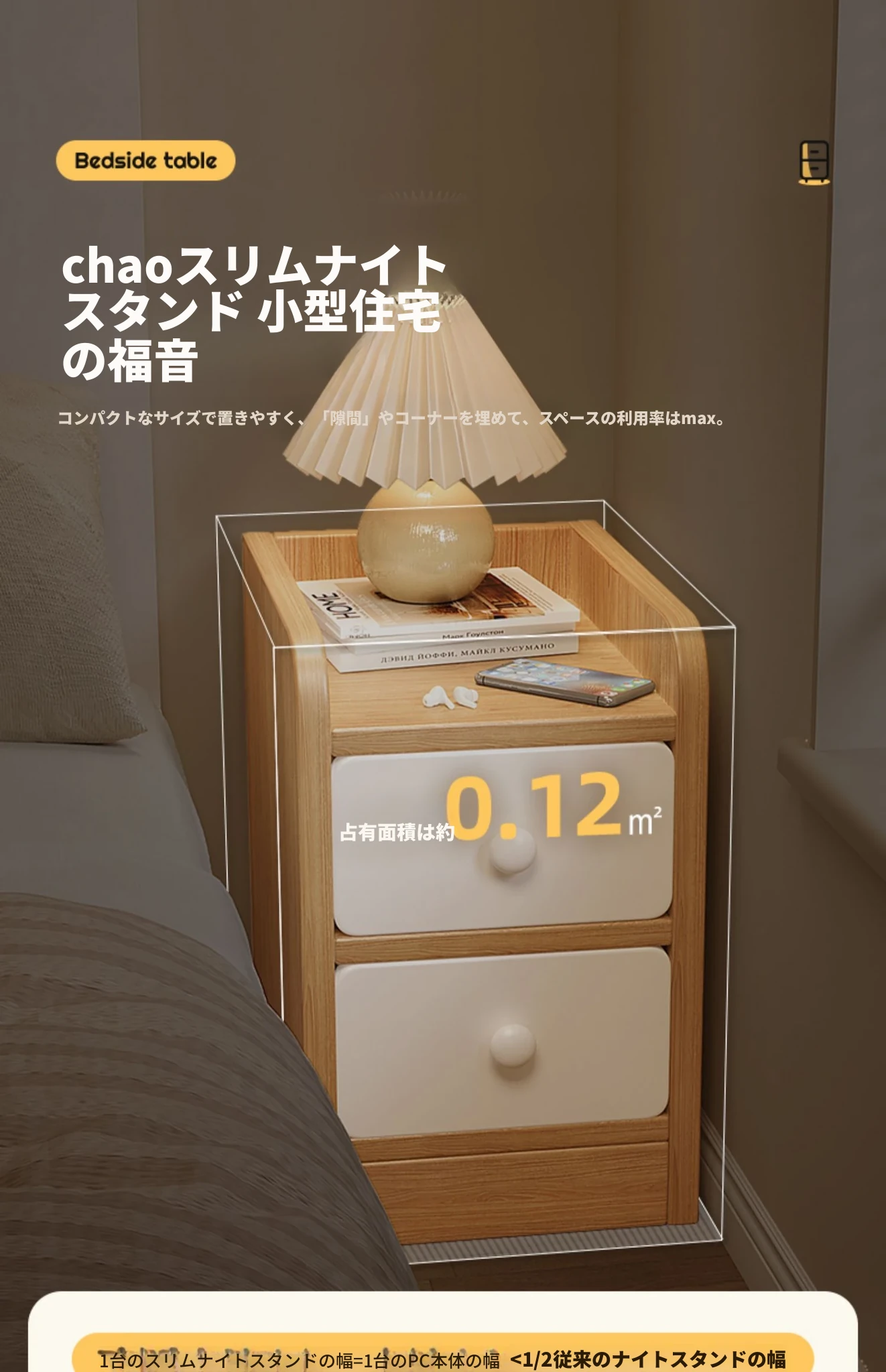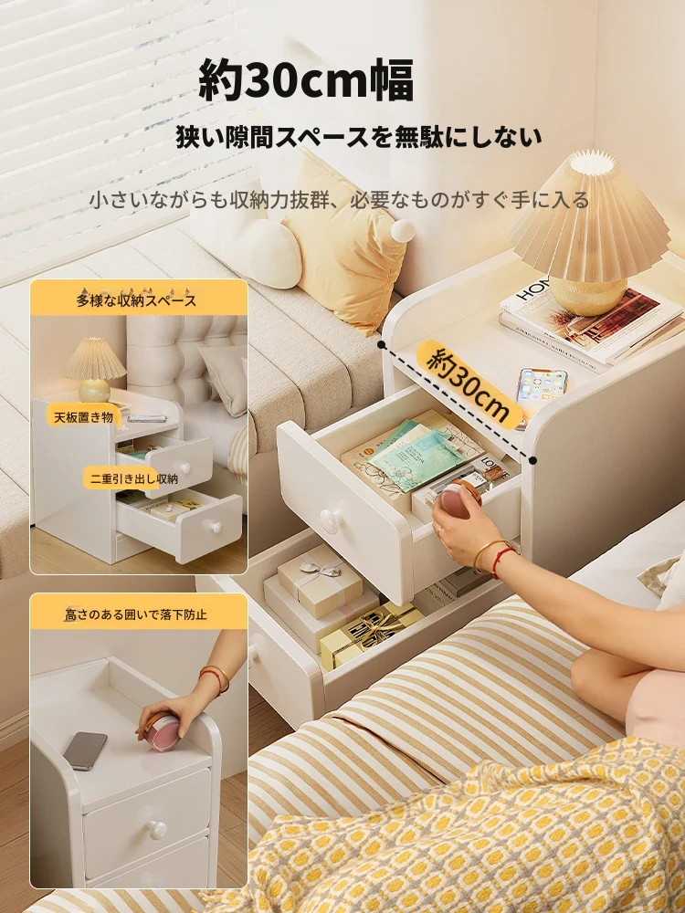 実木製のベッドサイドキャビネット - 幅30cmのコンパクト設計!20cmの狭いスペースにもフィットするスリムな収納ボックス。おしゃれで機能的、あなたの寝室にぴったりのアイテムです!