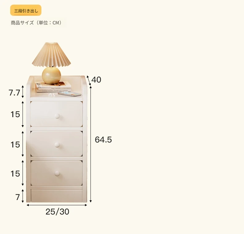 無垢エコボード | 暖白色 | トリプル引き出し 25cm