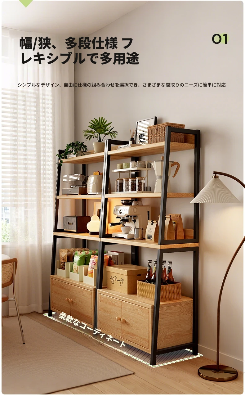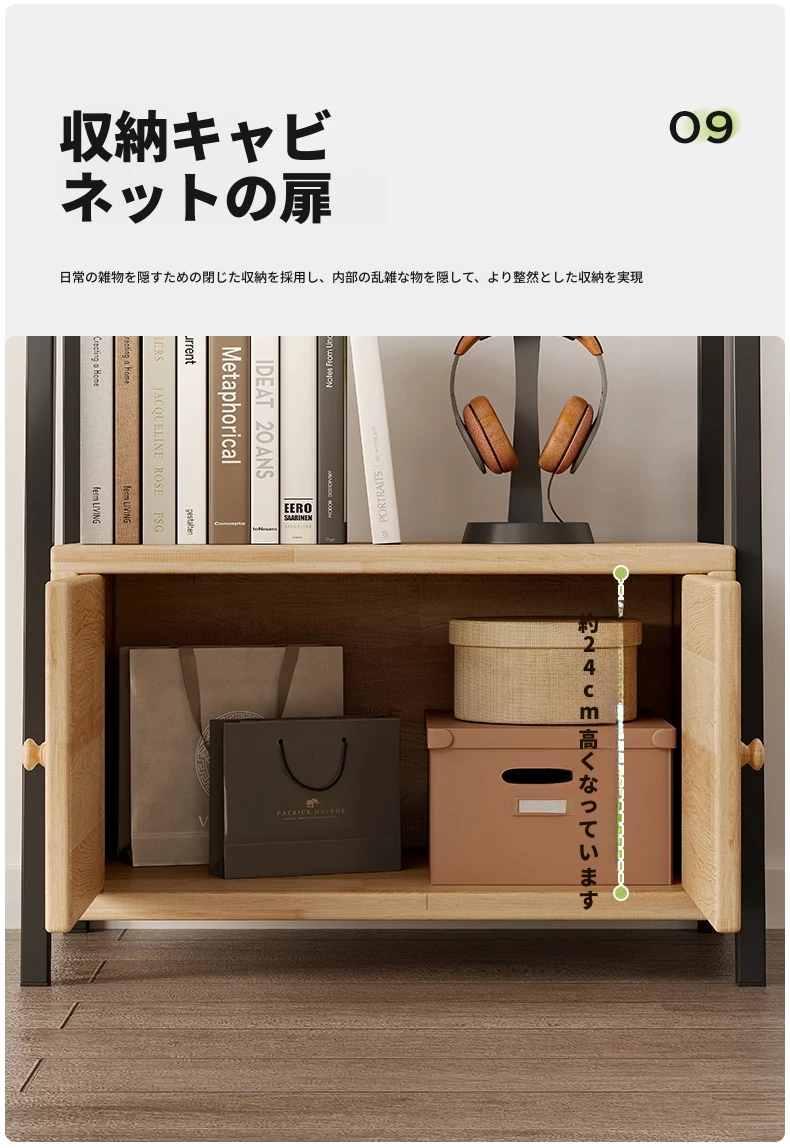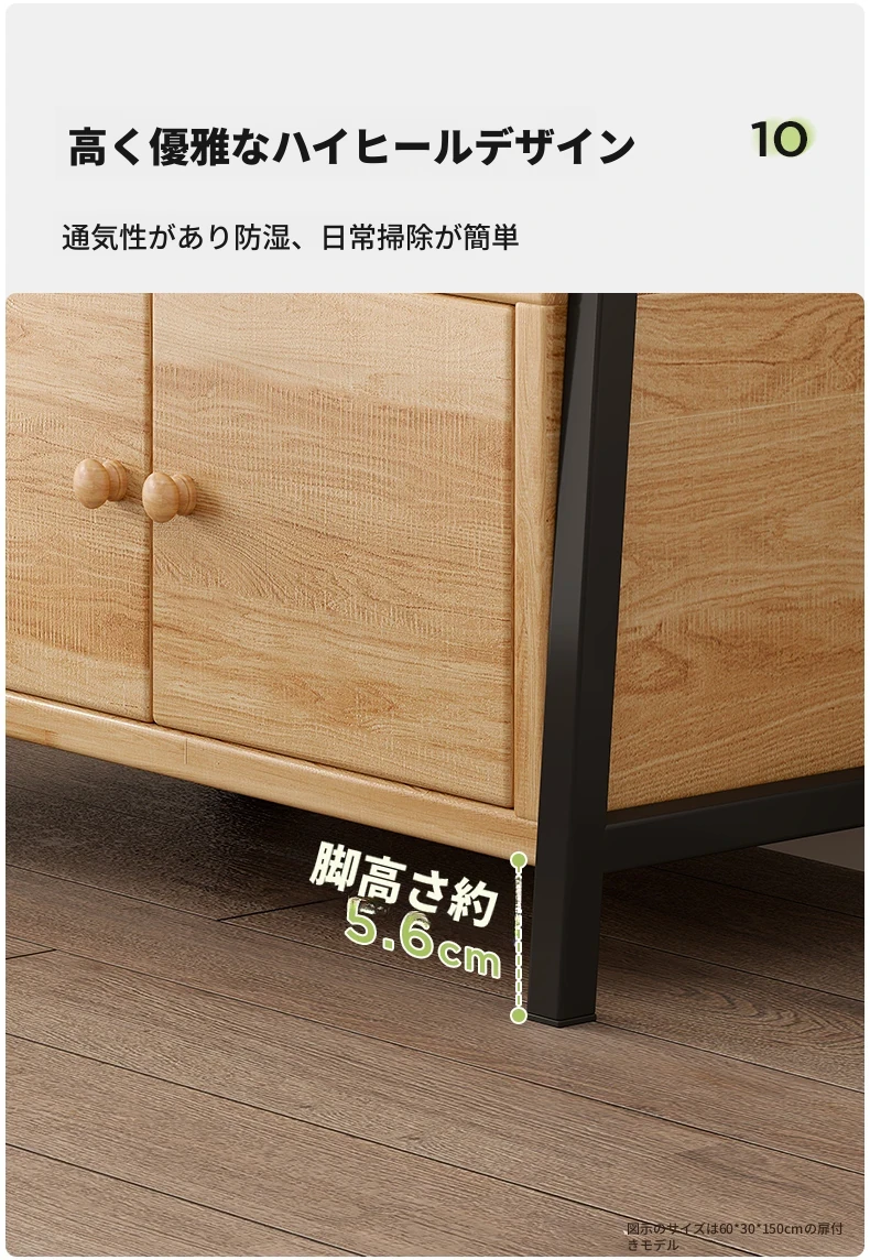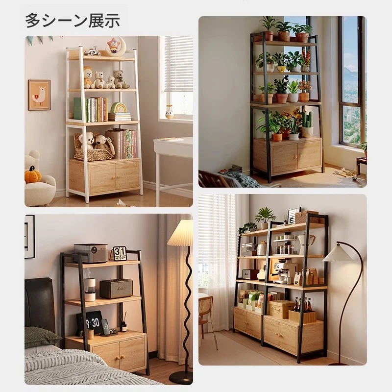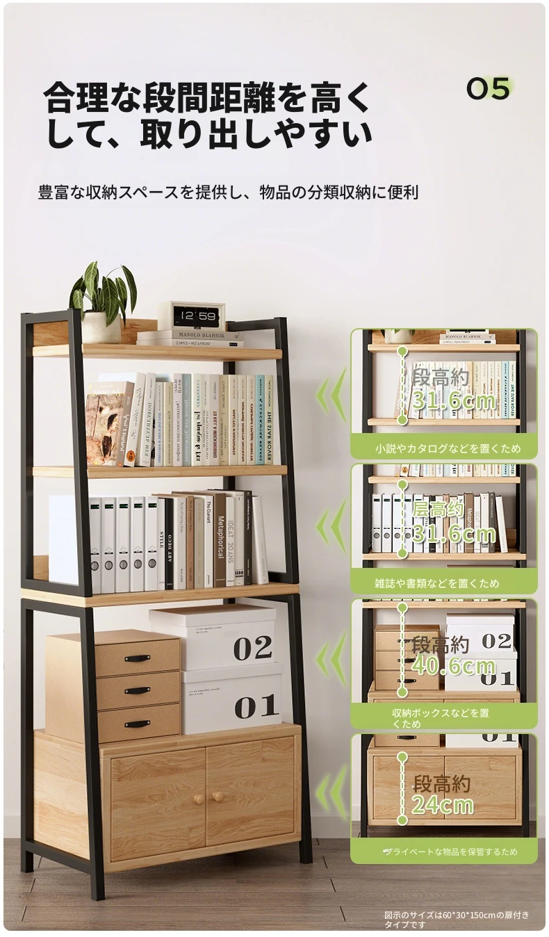 【アップグレード松材ボード】ハイ扉付きタイプ-5層-60*150cm-黒フレーム