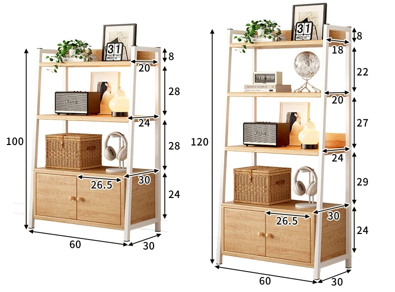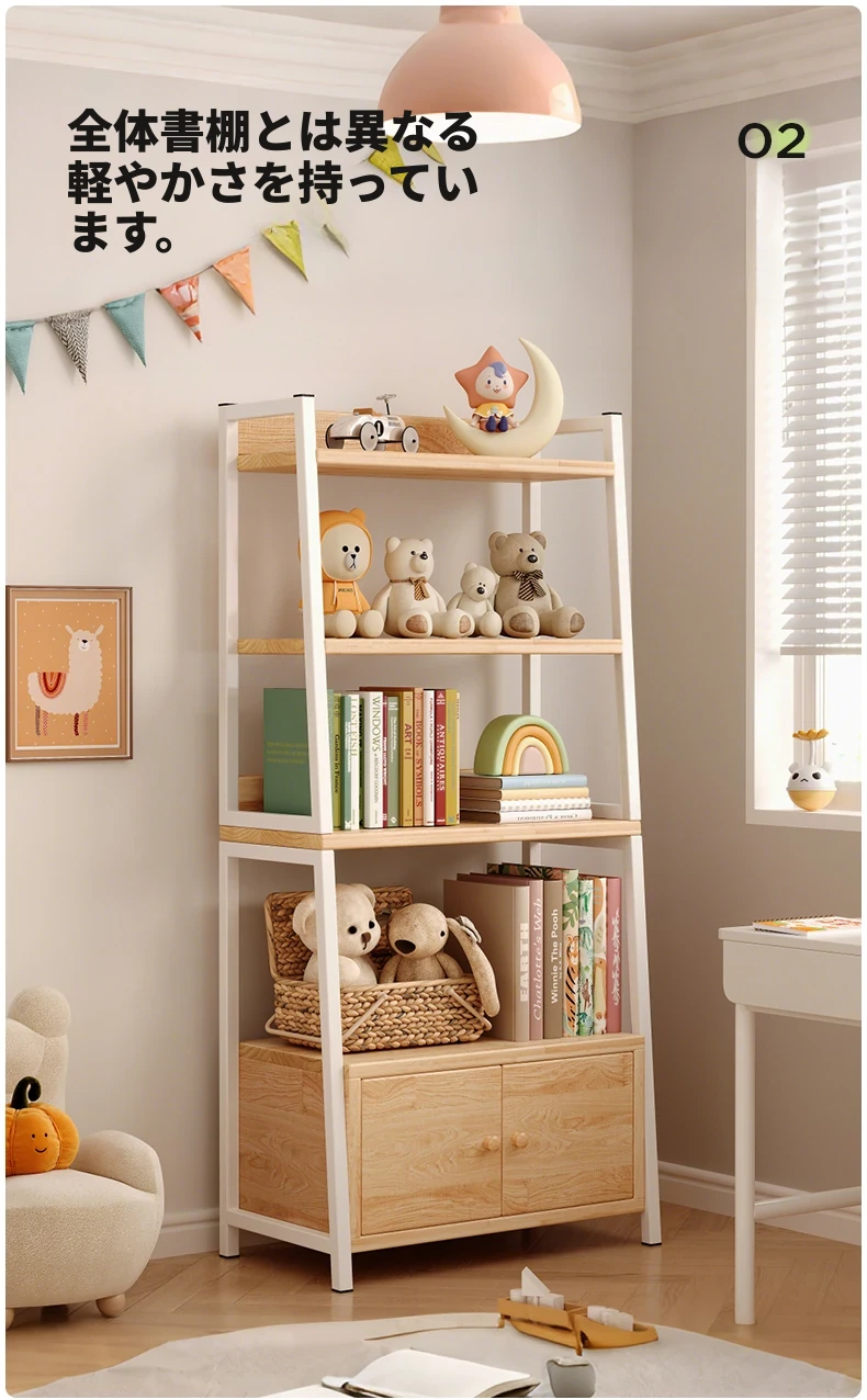 【アップグレード松材ボード】扉付きタイプ-5層-60*120cm-白フレーム
