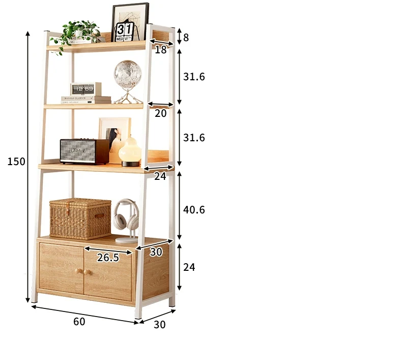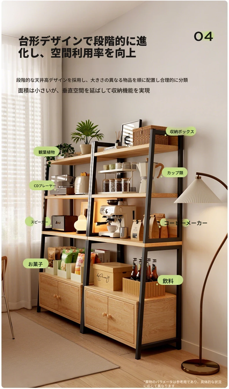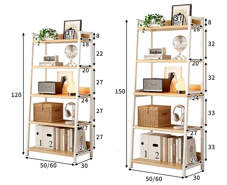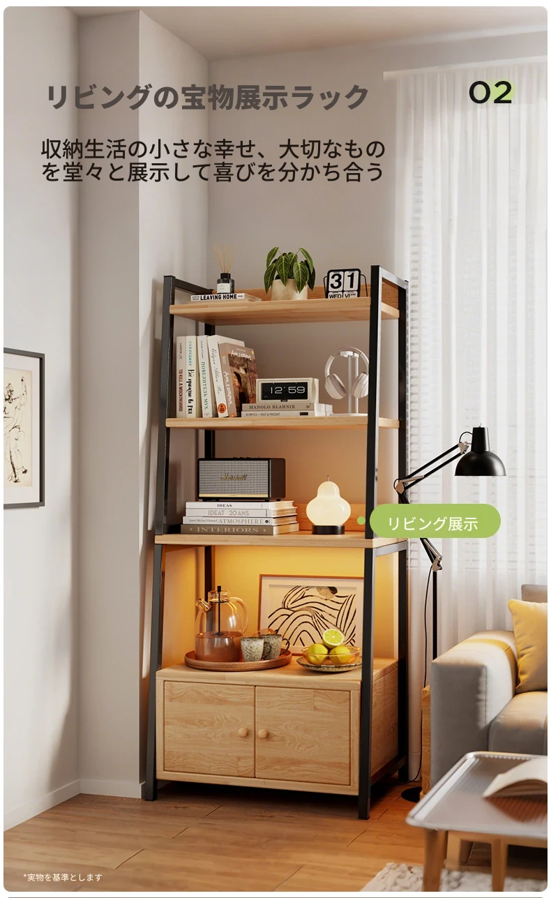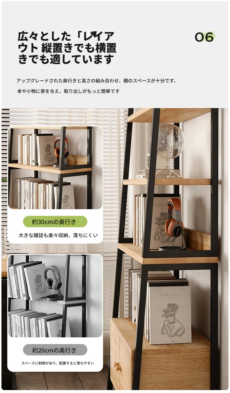 天然木材使用のトライアングルシェルフ!多機能なフロア収納棚で、壁に寄りかかるデザイン。多層キャビネットとして便利に使え、シンプルな書棚やディスプレイとしても最適です。あなたの生活空間をスタイリッシュに演出!