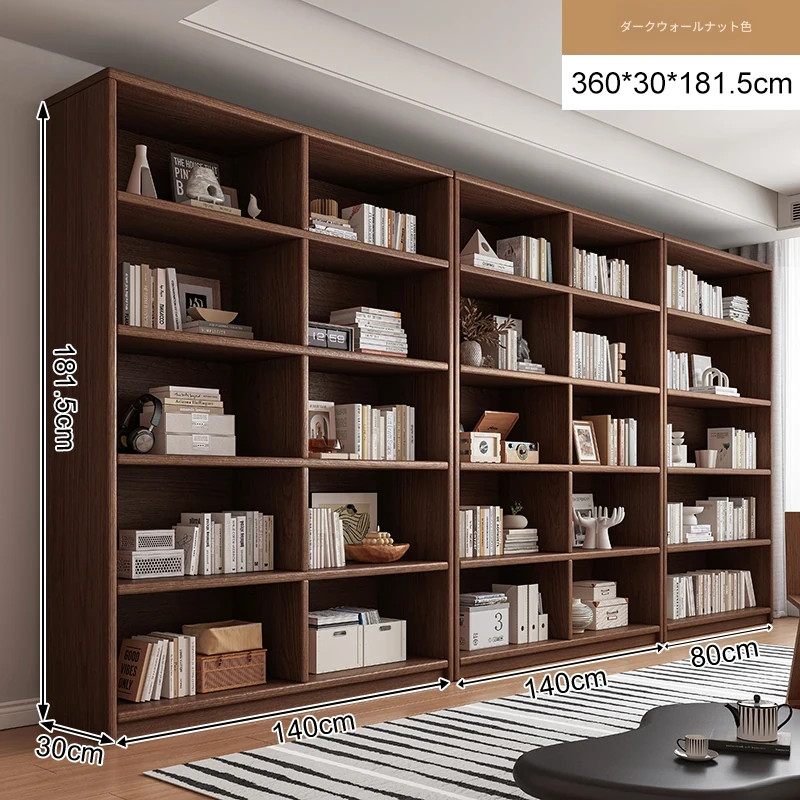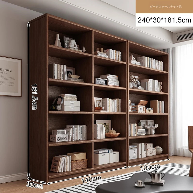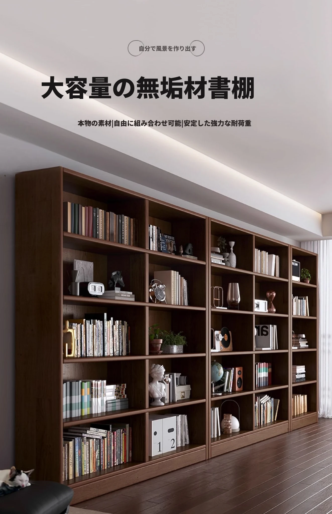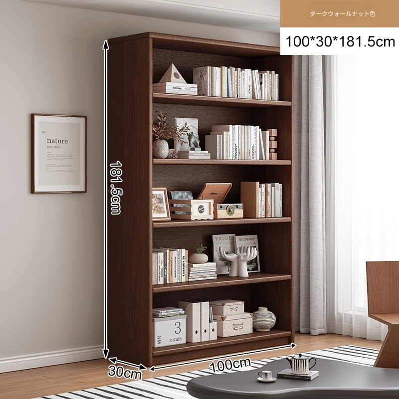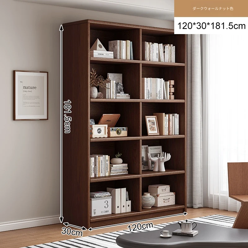 全木製壁面書架—リビングに最適!美しいウォールナット色でお部屋をスタイリッシュに演出。収納力抜群、家族の本や小物をスッキリ収納できる一体型デザイン。あなたの生活空間を格上げするアイテムです!