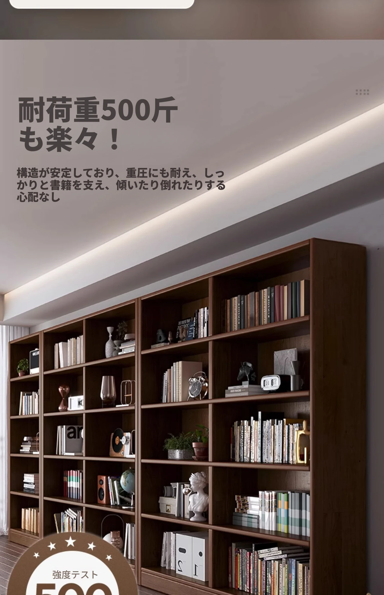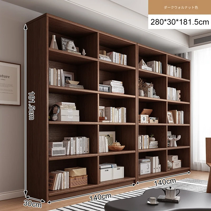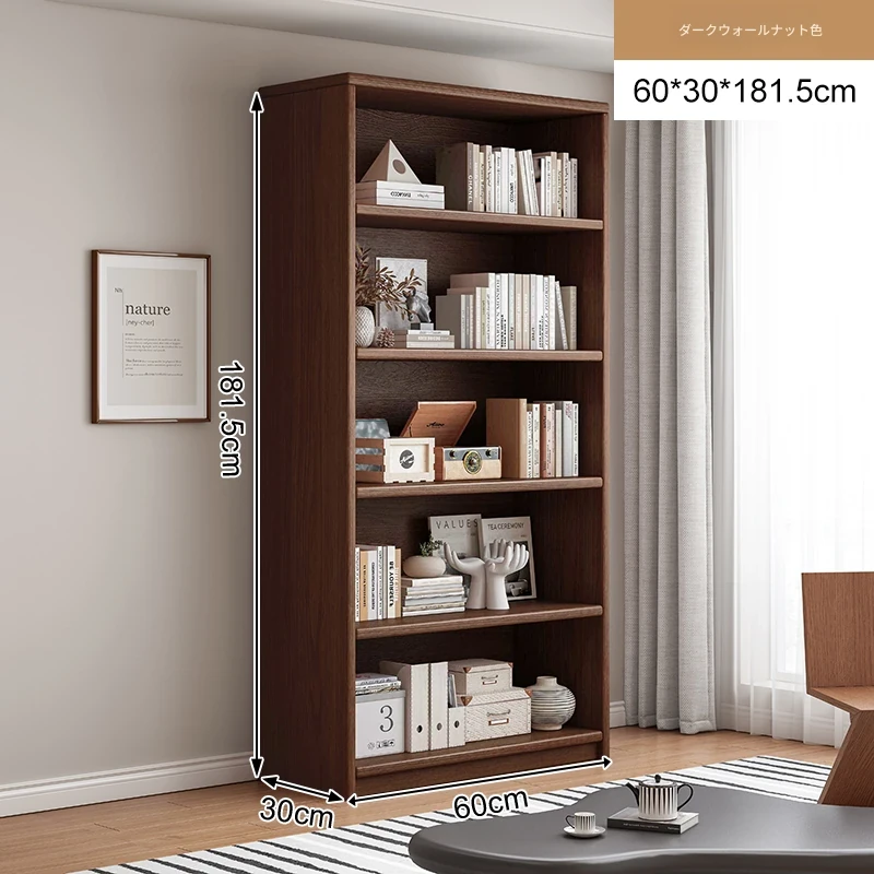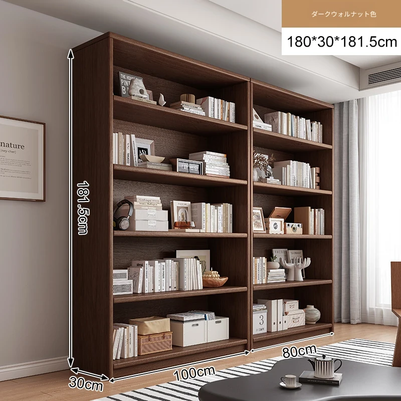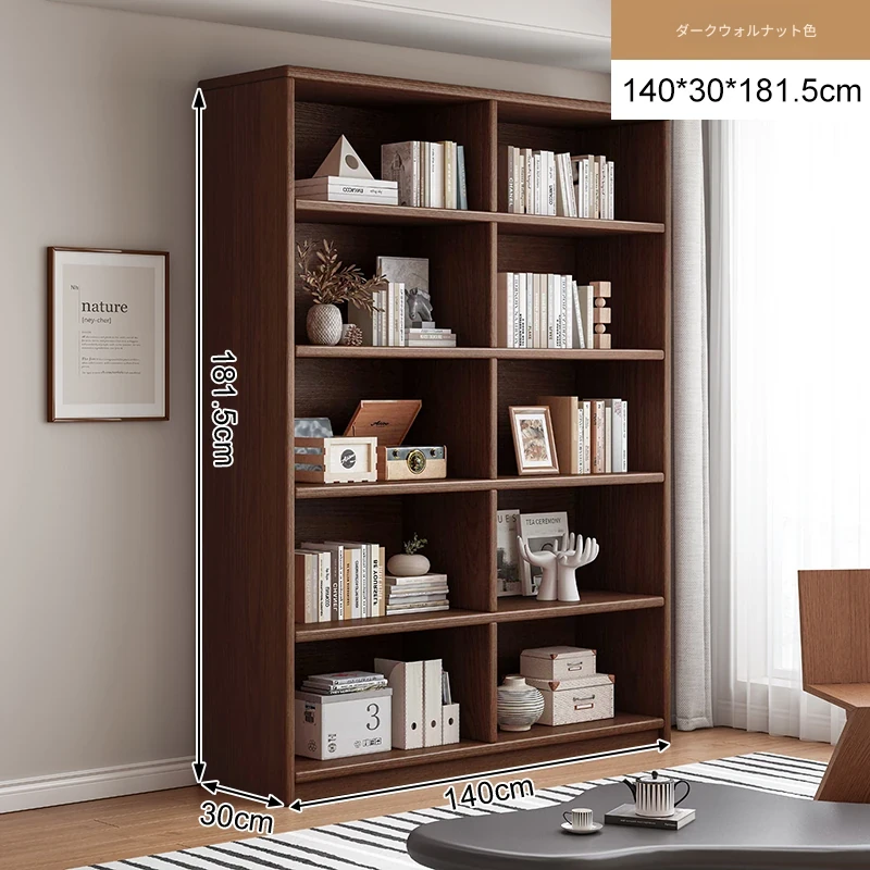全木製壁面書架—リビングに最適!美しいウォールナット色でお部屋をスタイリッシュに演出。収納力抜群、家族の本や小物をスッキリ収納できる一体型デザイン。あなたの生活空間を格上げするアイテムです!