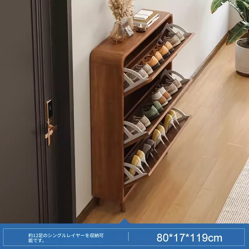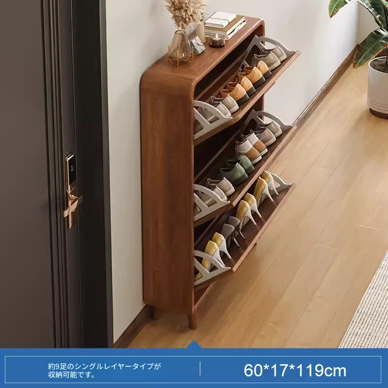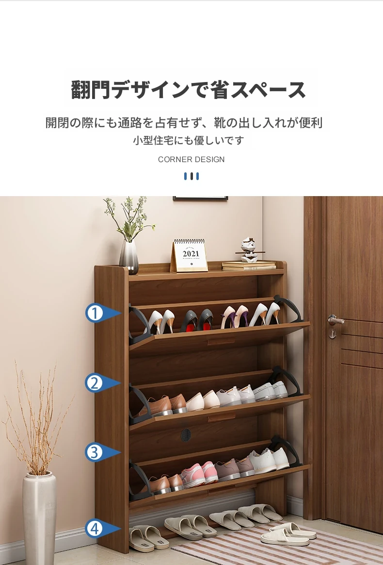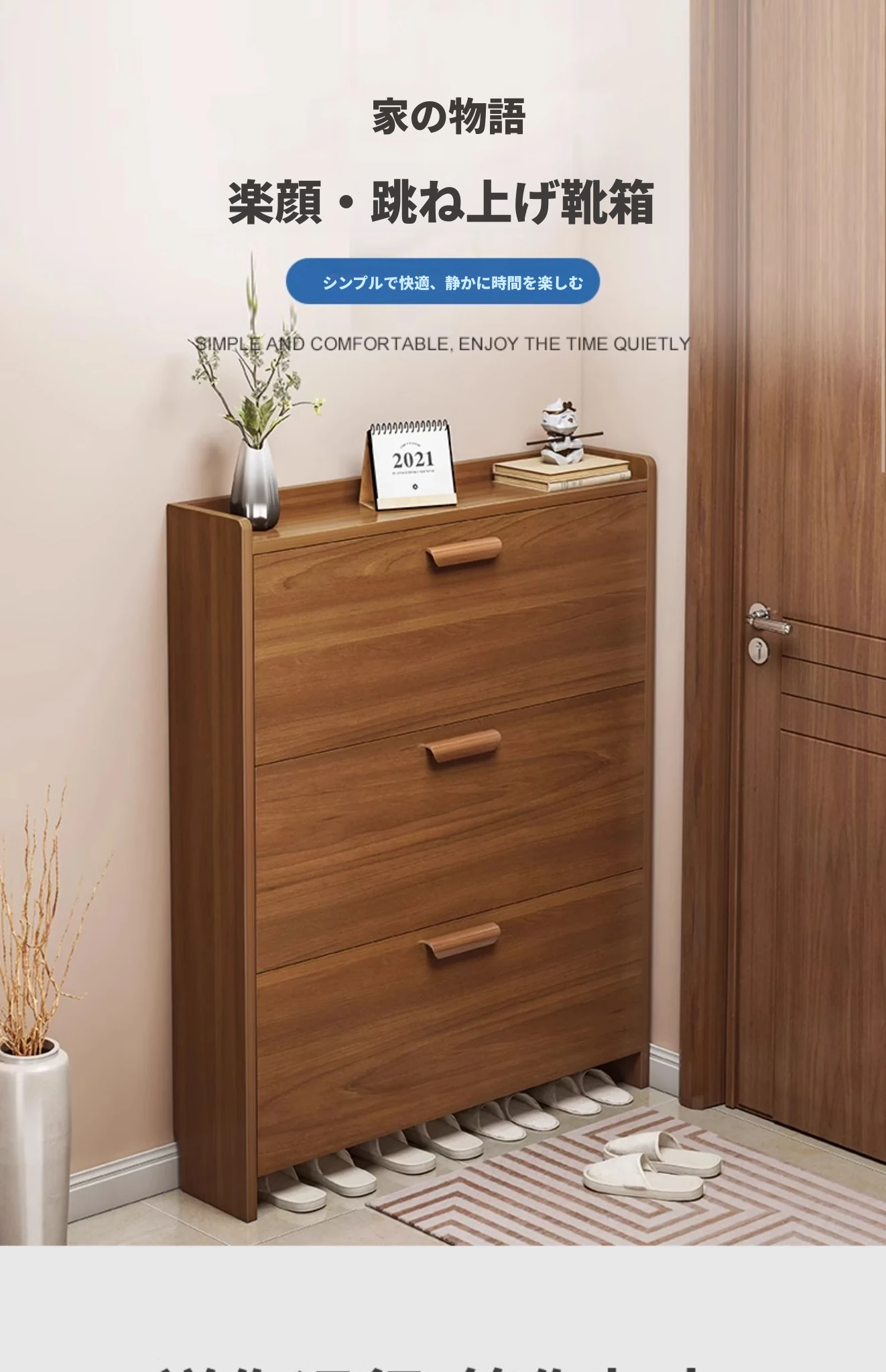 省スペース!新型スリムスニーカーラック - 玄関や寝室にぴったりな薄型収納キャビネット!おしゃれなデザインで、靴や小物がスッキリ整理できる!