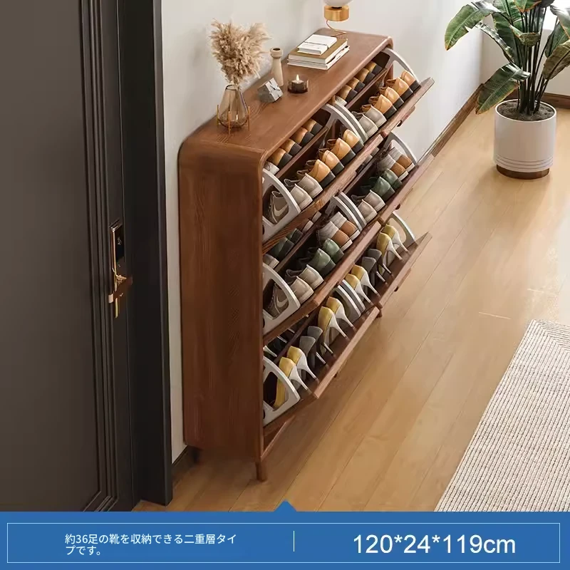 【約36足収納可能-ダブルタイプ】120-24-119ユーキンダン木色