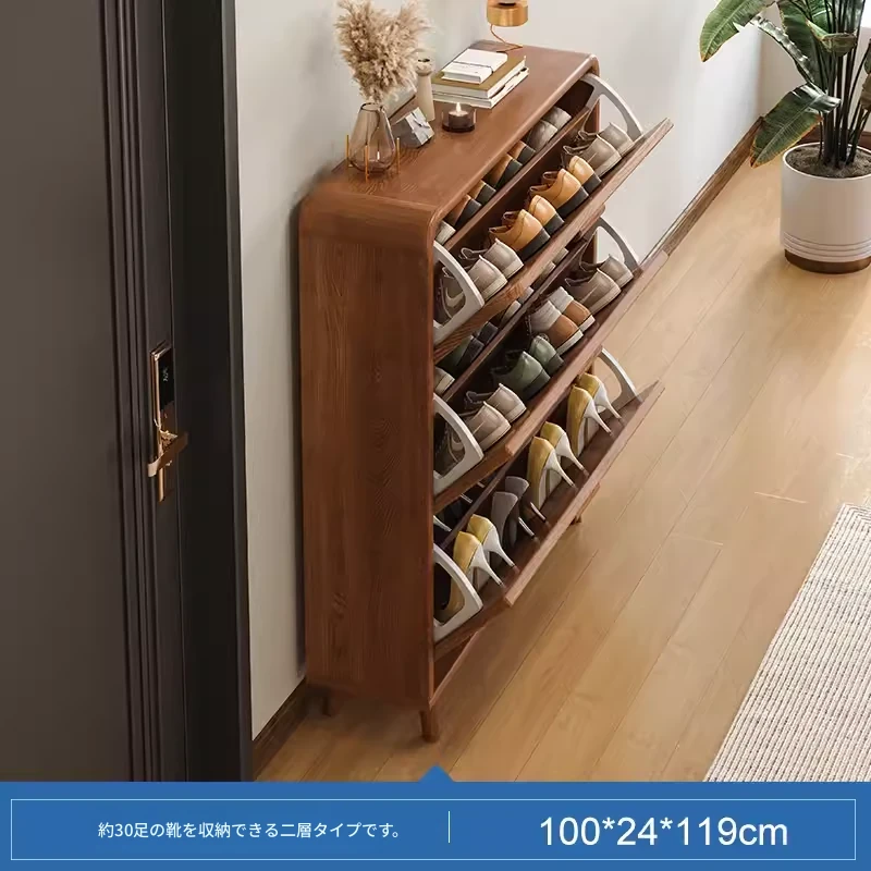 【約30足収納可能-ダブルタイプ】100-24-119ユーキンダン木色