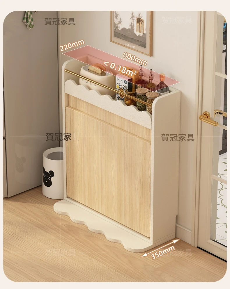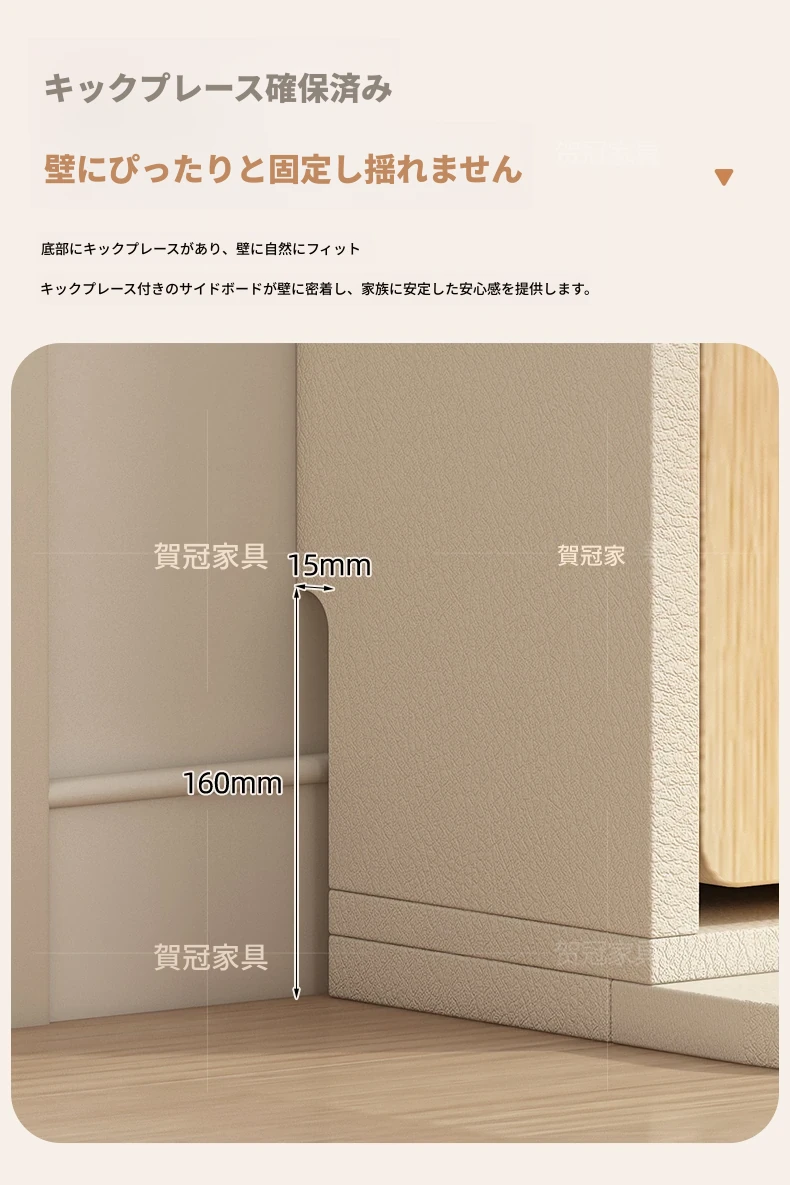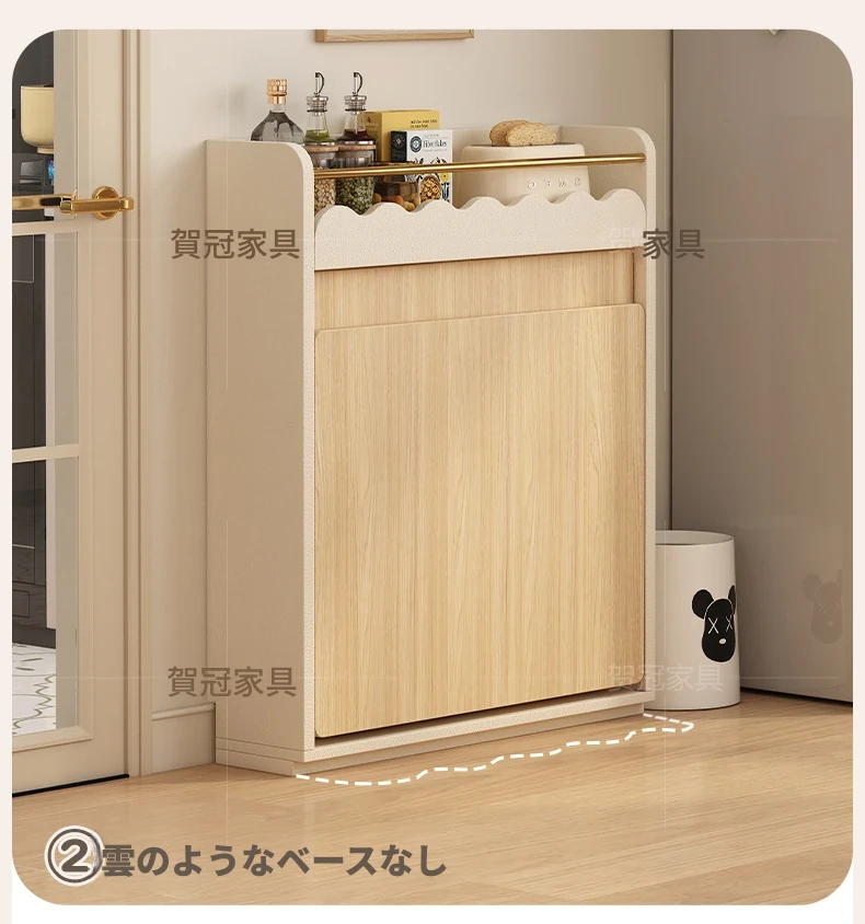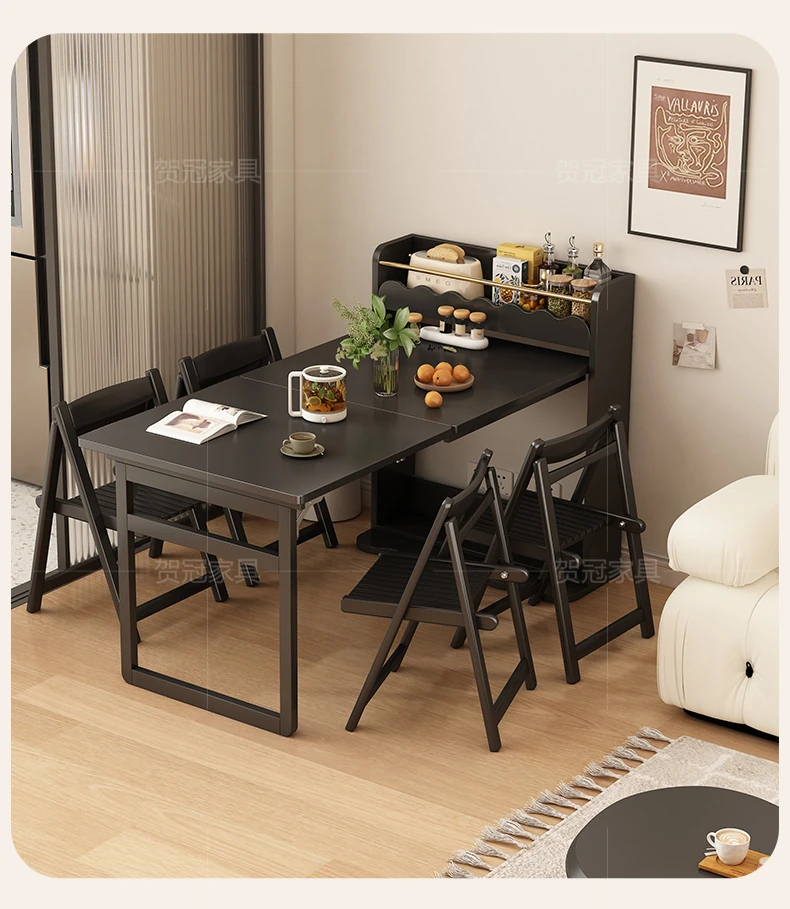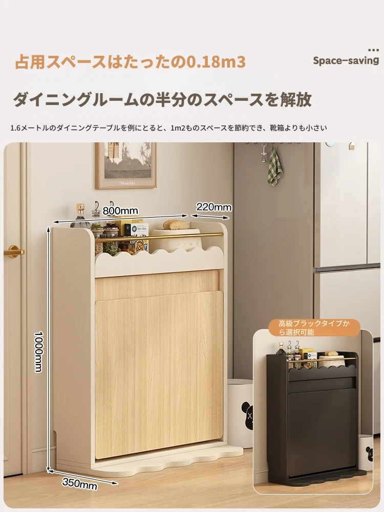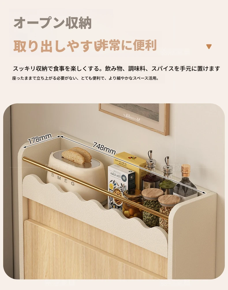 ナチュラルウッドクリームスタイルの伸縮式ダイニングテーブル&スリムサイドキャビネット一体型、コンパクトなお部屋にぴったり!省スペース実現の一押し、壁付け折りたたみ式無垢材テーブル