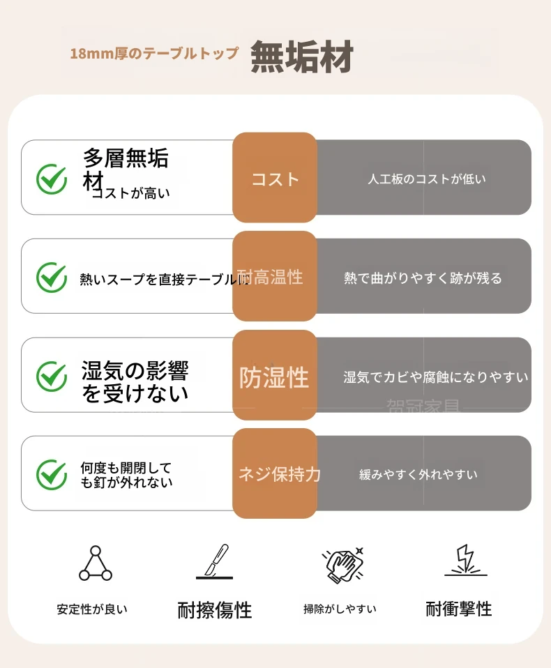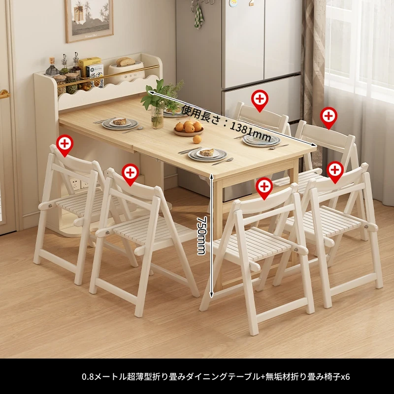 超薄折りたたみテーブル【五重防御抗菌皮調ホワイト】+木製折りたたみ椅子x6