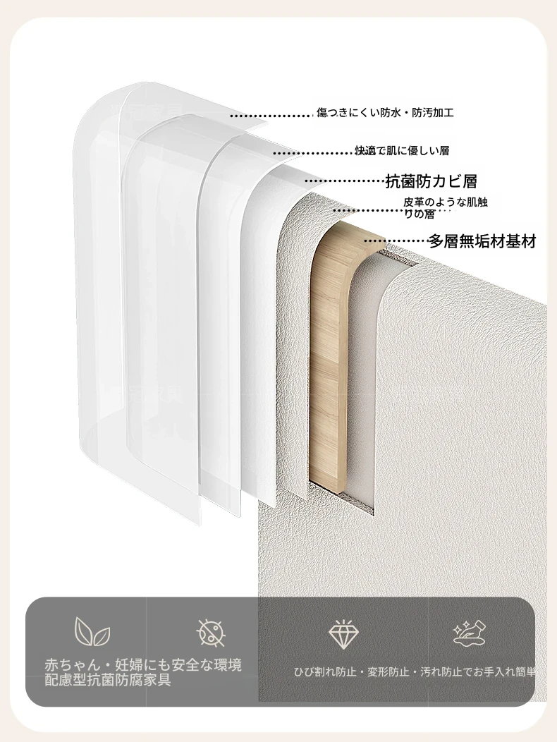 超薄折りたたみテーブル【五重防御抗菌皮調ホワイト】