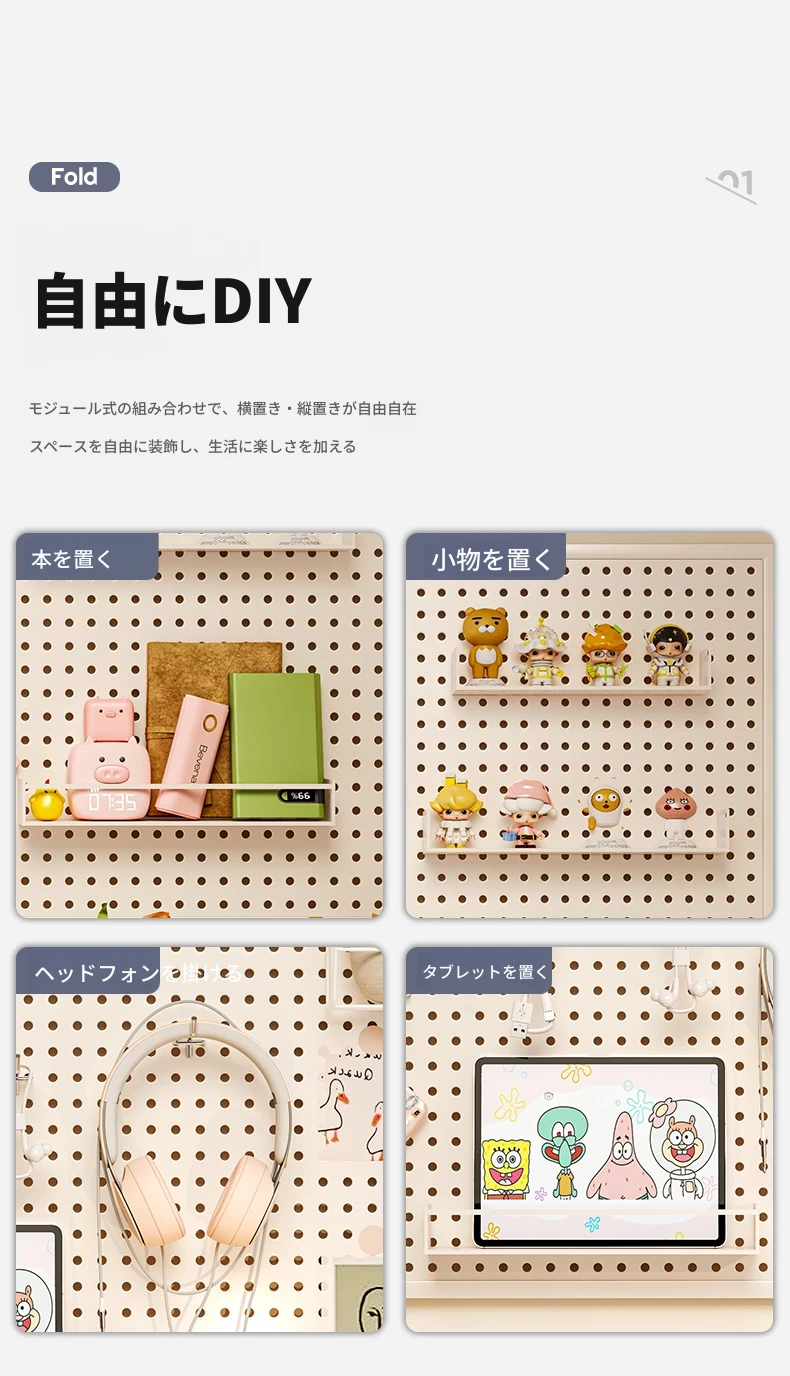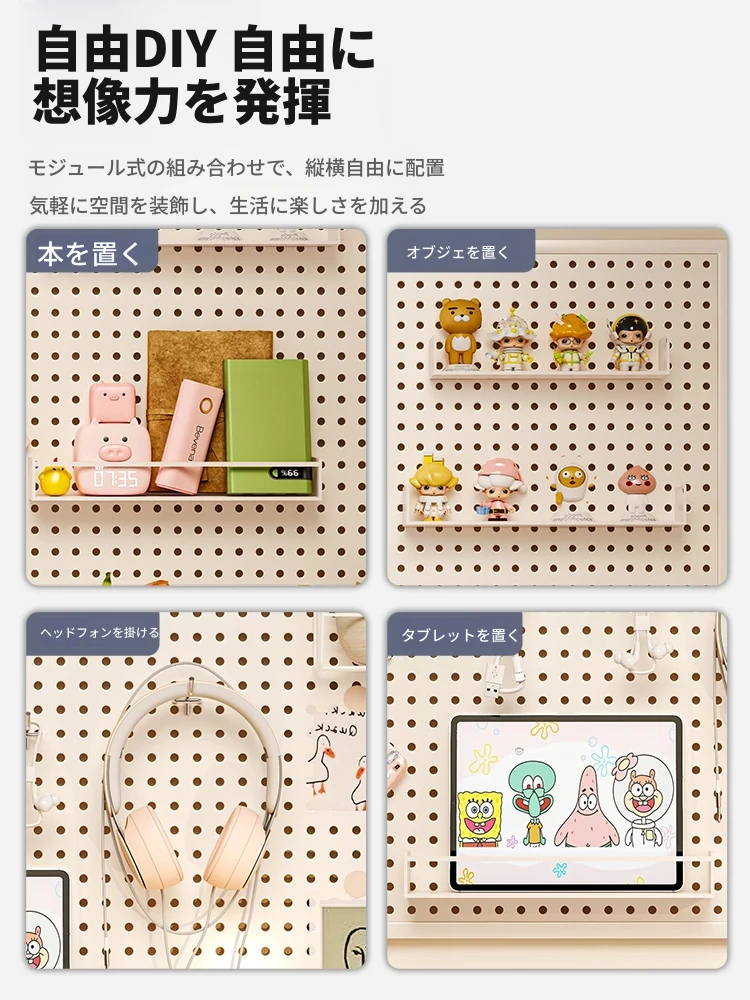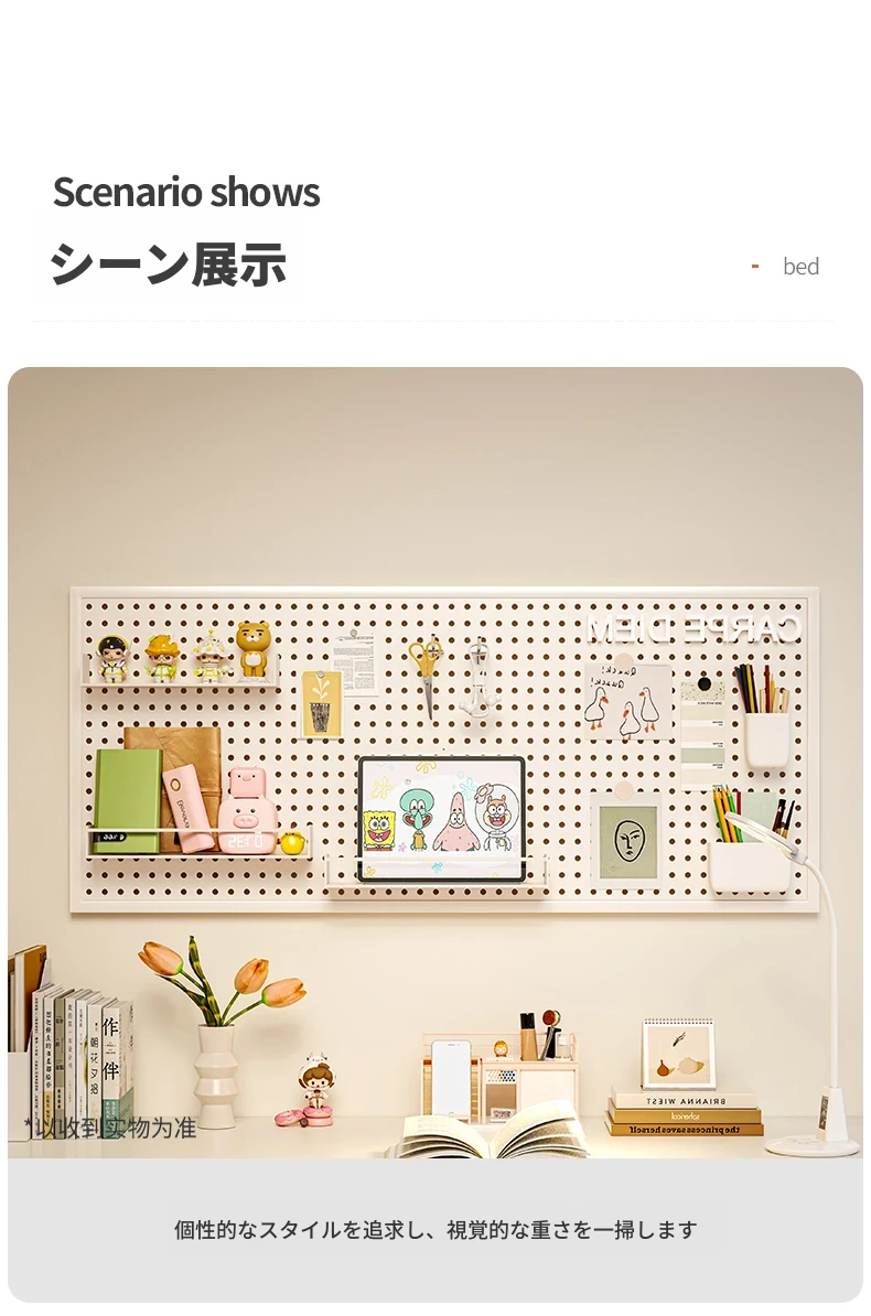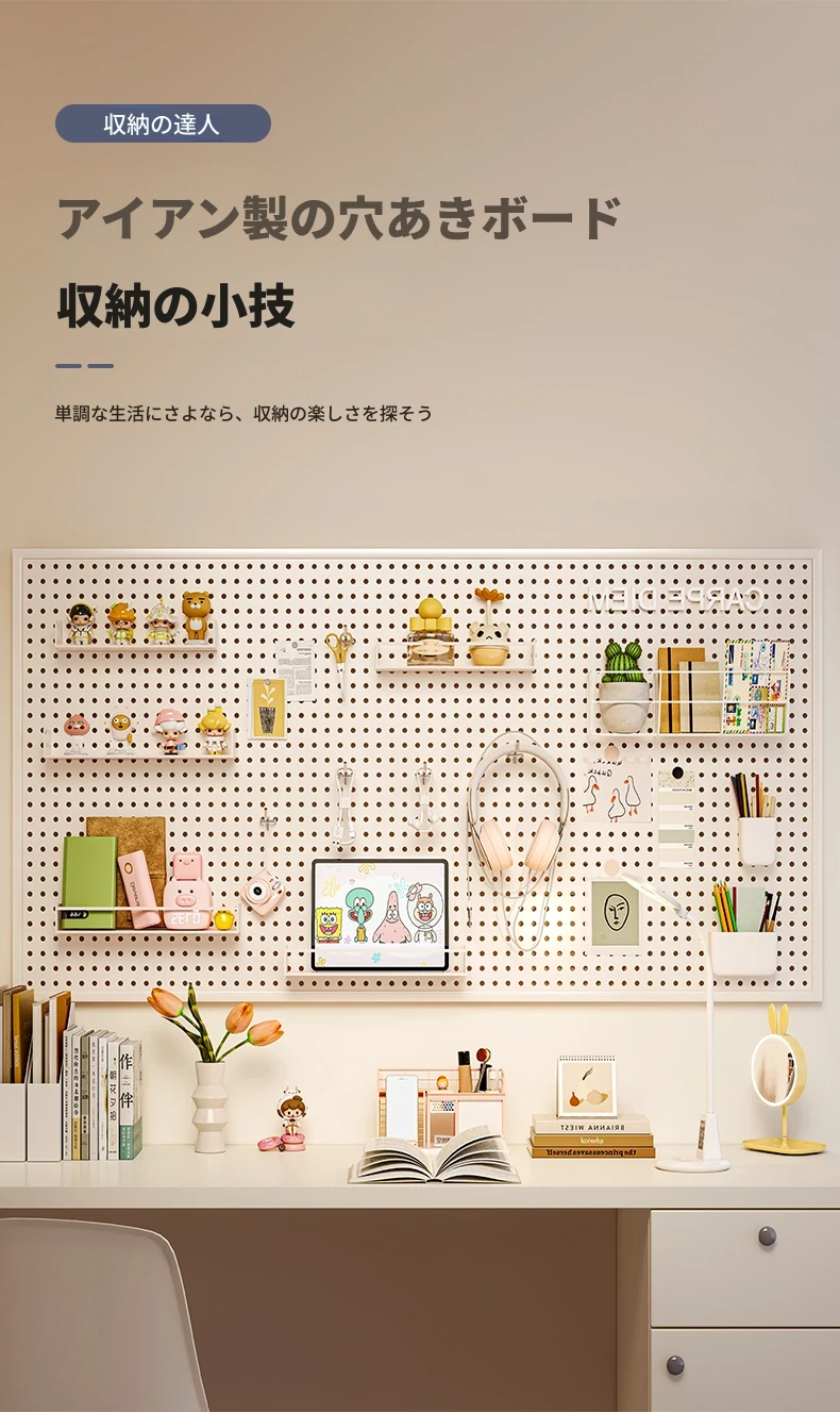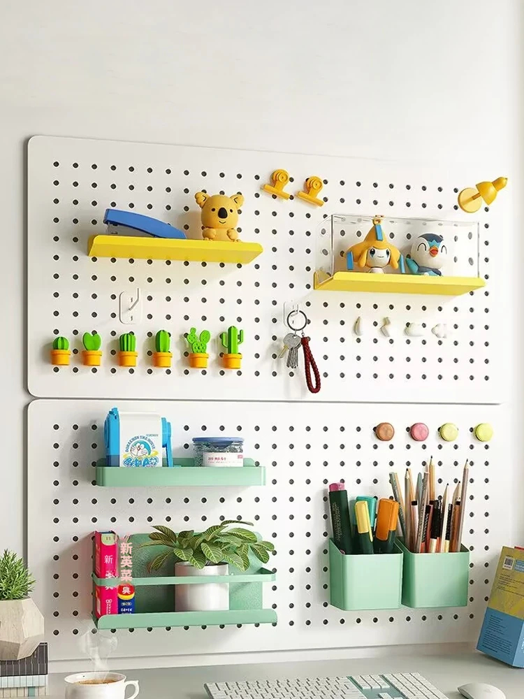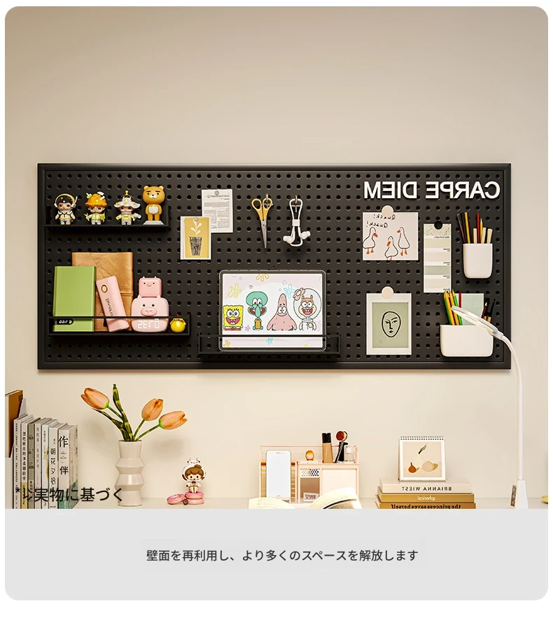 デスク用穴あきボード収納ラック - ステンレス製、書斎や学習デスクに最適!部屋をスッキリ整理し、学生寮にもぴったりな便利なアクセサリー展示!