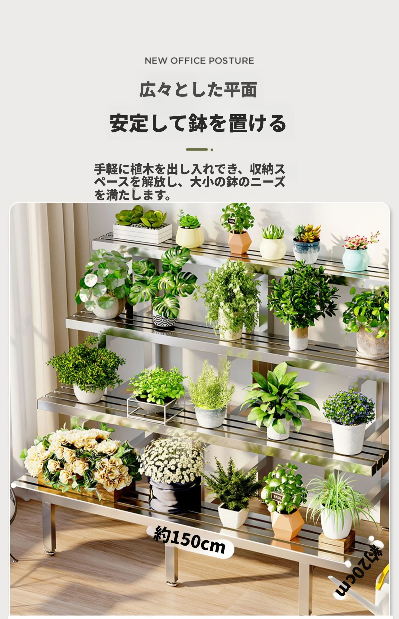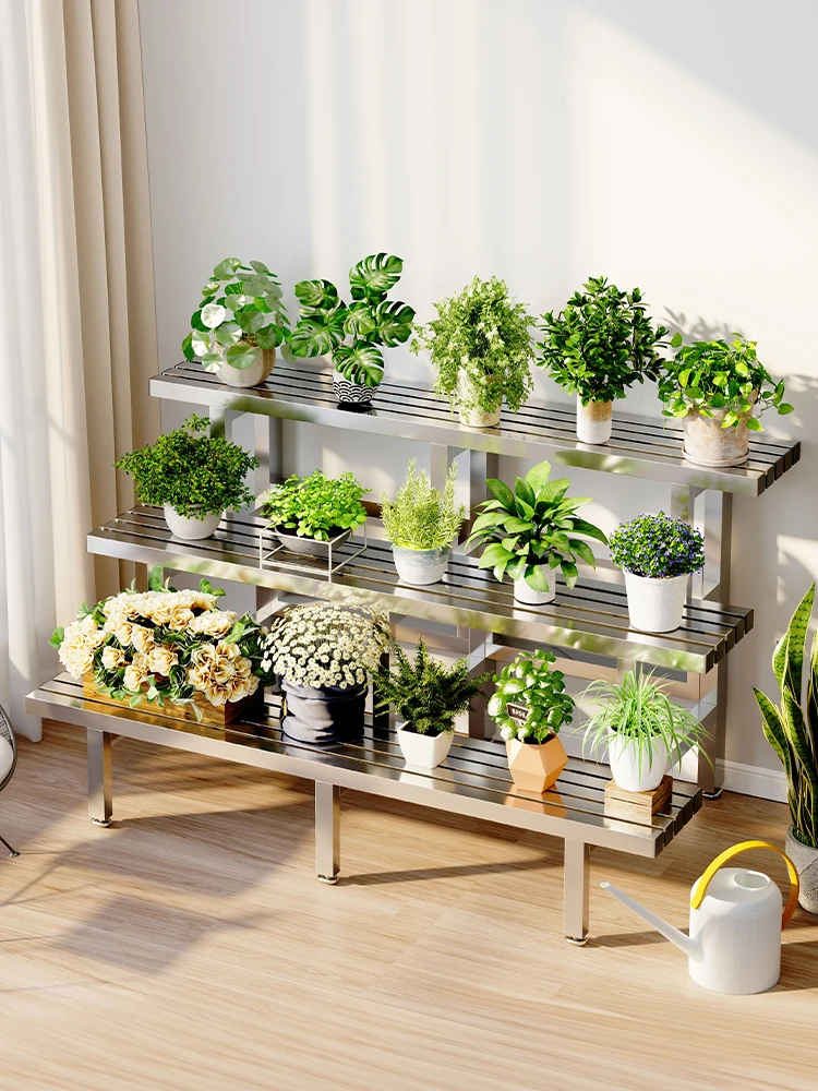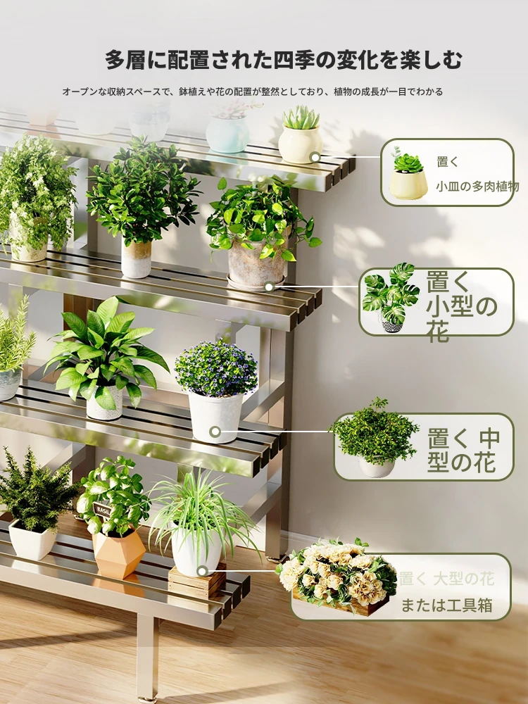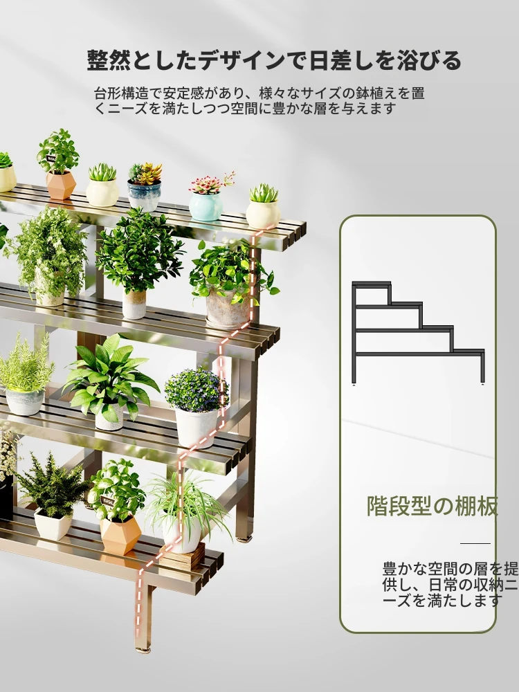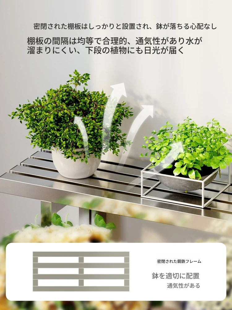 2024年新作!ステンレス製の多肉植物用フラワースタンド - バルコニーや庭にぴったりの収納力抜群のプランタートレイ!おしゃれで耐久性もあり、あなたのアウトドアスペースを美しく演出します。