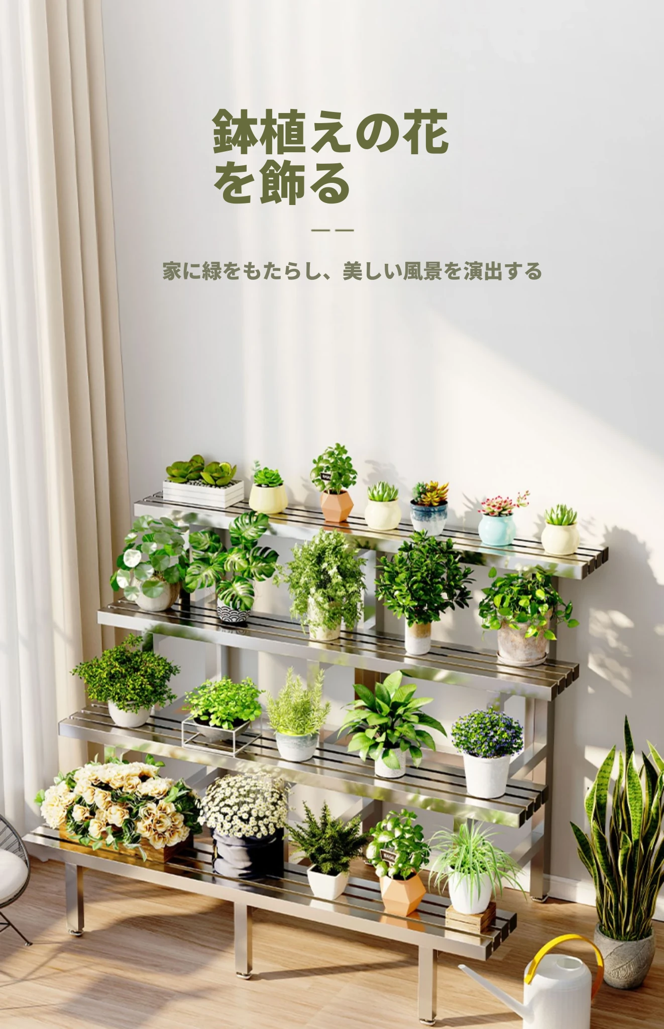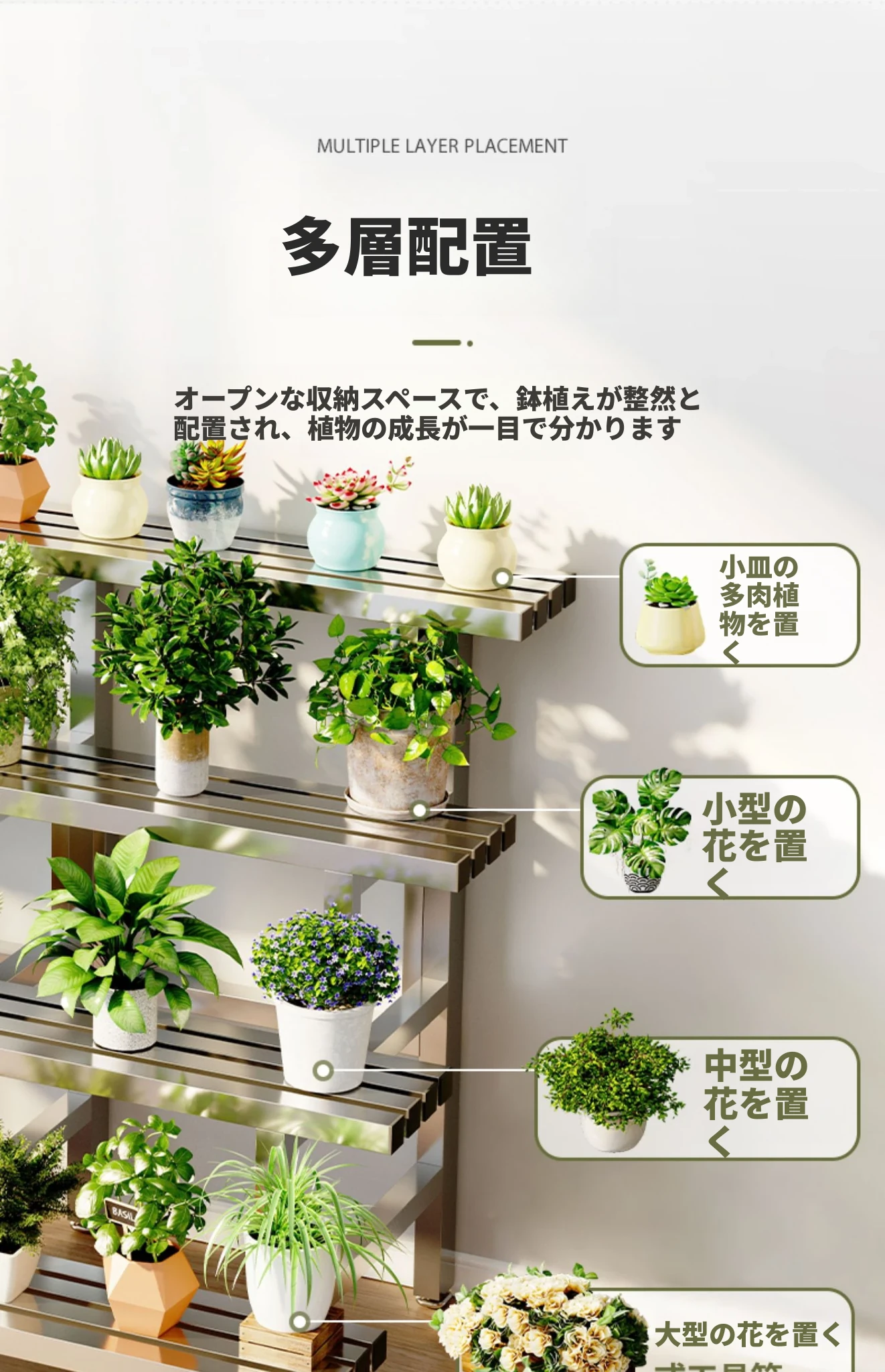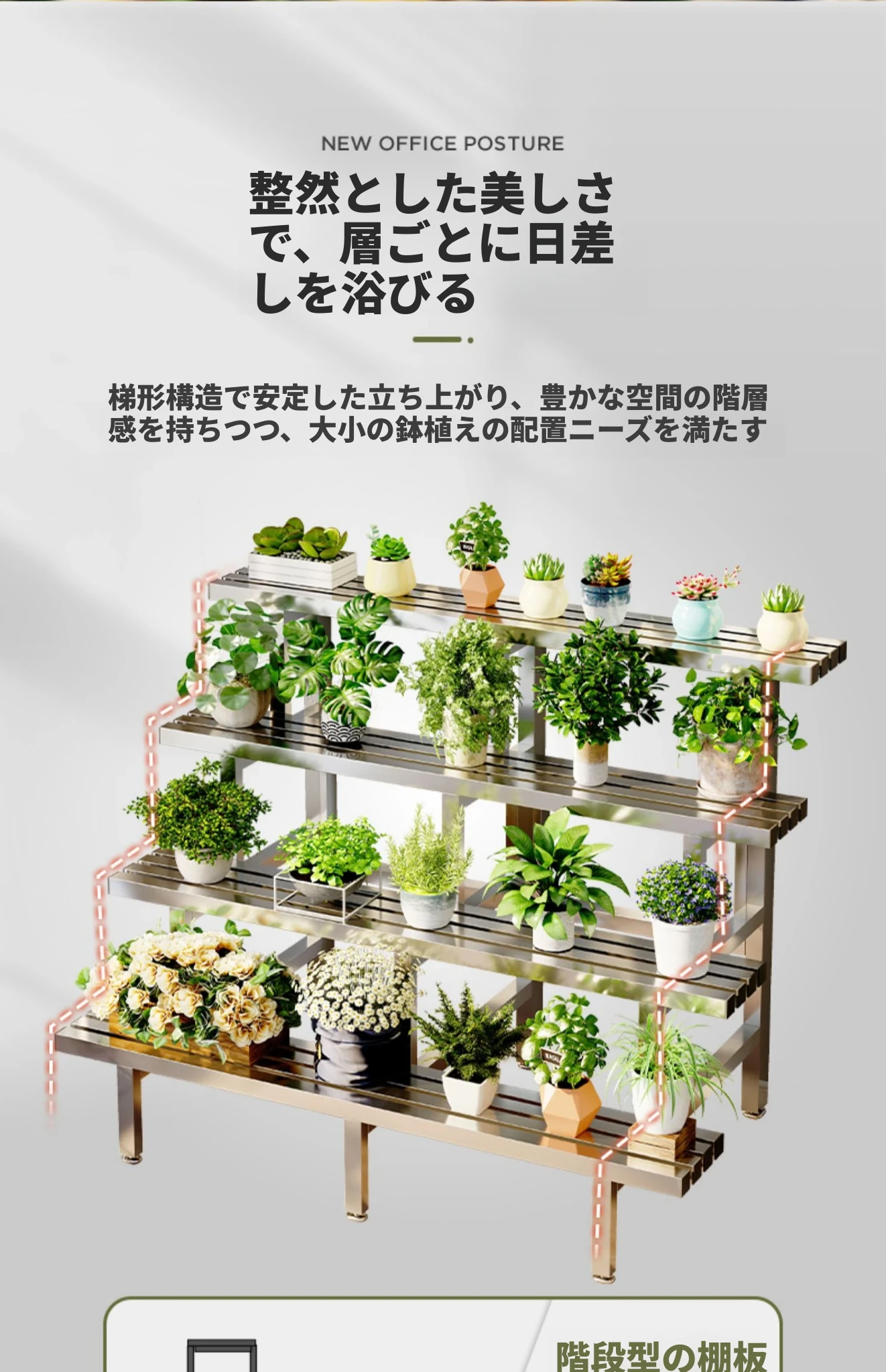 2024年新作!ステンレス製の多肉植物用フラワースタンド - バルコニーや庭にぴったりの収納力抜群のプランタートレイ!おしゃれで耐久性もあり、あなたのアウトドアスペースを美しく演出します。