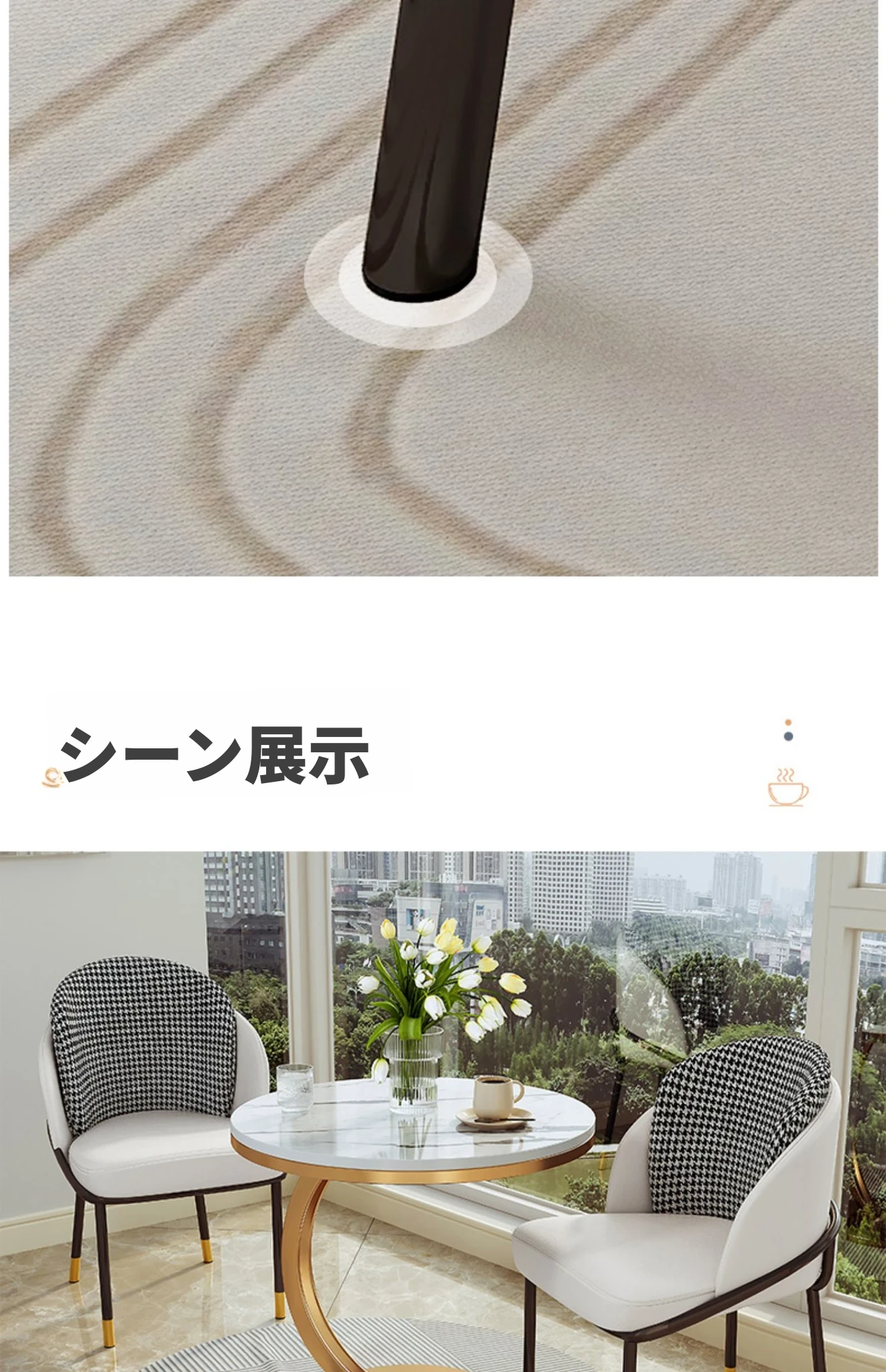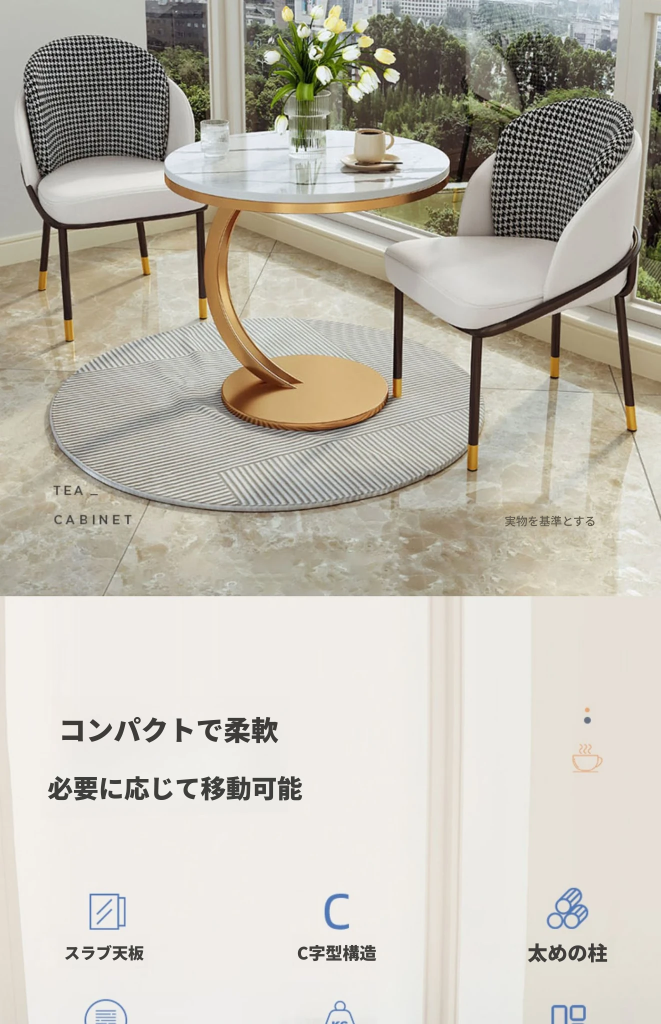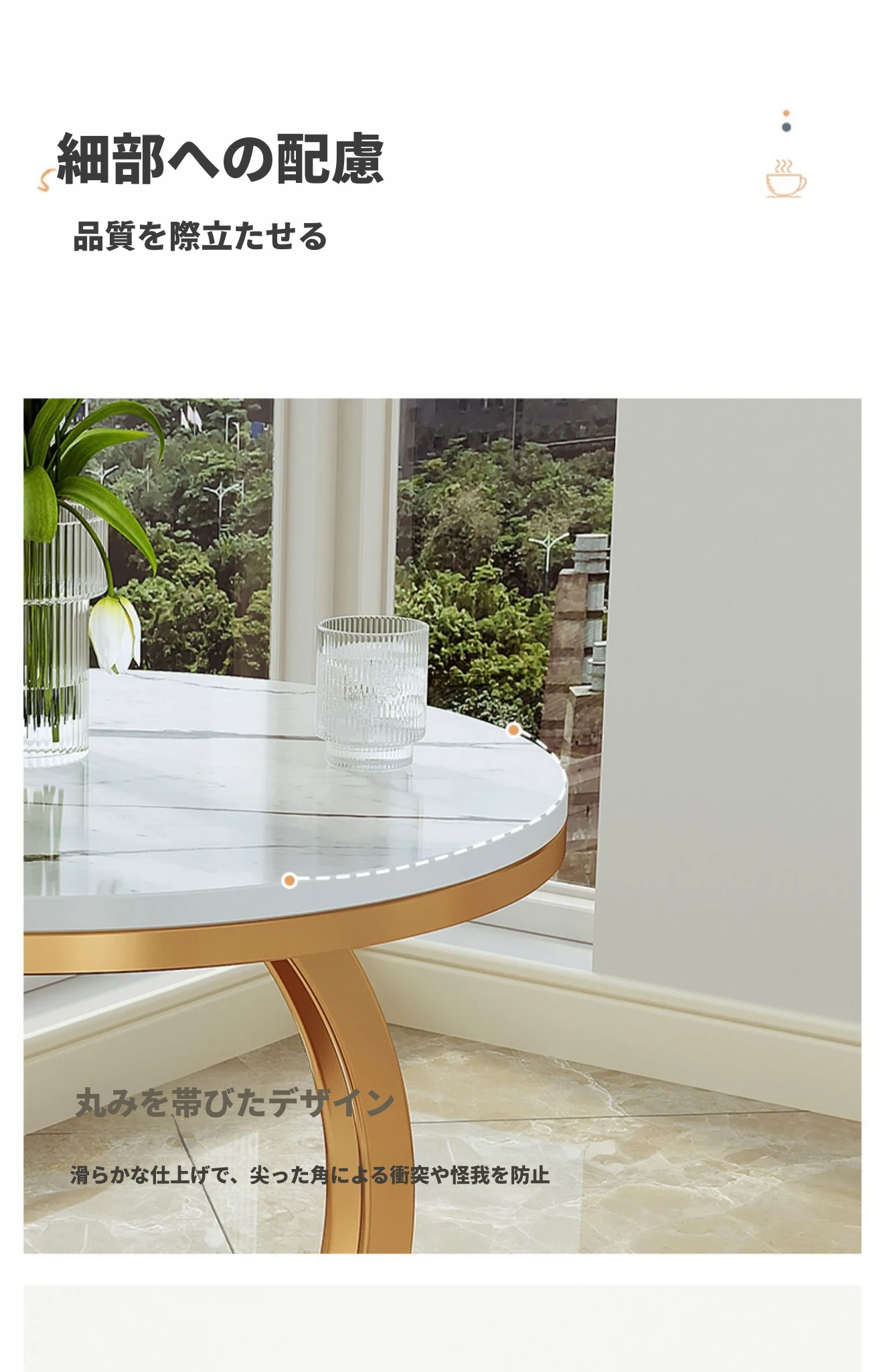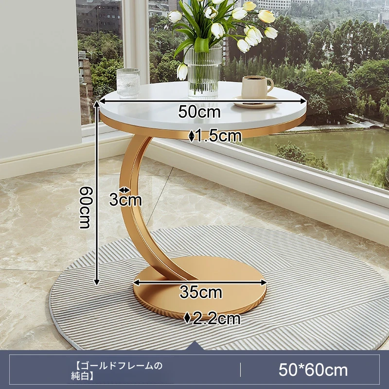 【単卓⭐50直径】光沢純白岩板+金フレーム【厚み9MM岩板 安定して揺れない】