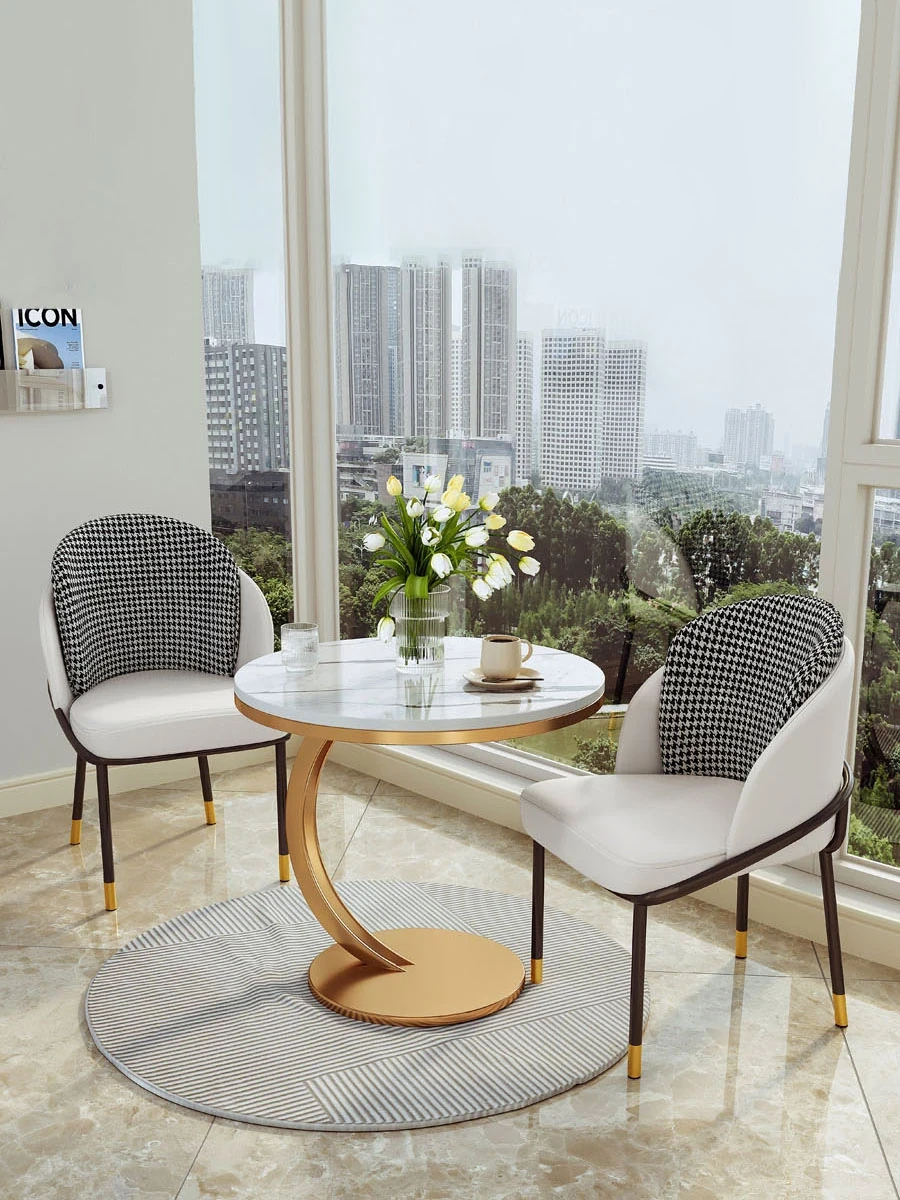 バルコニー用の小さな茶卓、上質な家用スレート製デザイン。シンプルでモダンなリラックス空間を演出するテーブル&チェアセット、一卓二椅子で友人とお茶を楽しむのに最適です!