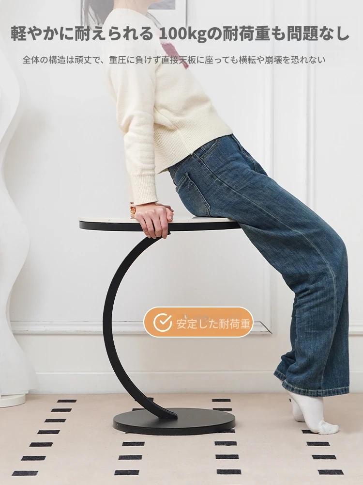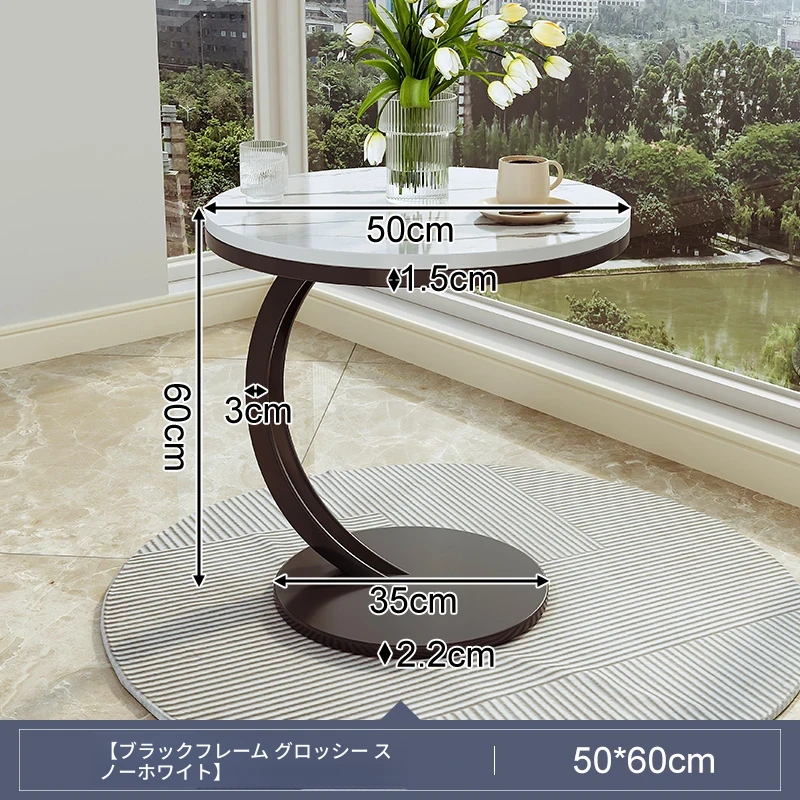 【単卓⭐50直径】光沢純白岩板+黒フレーム【厚み9MM岩板 安定して揺れない】