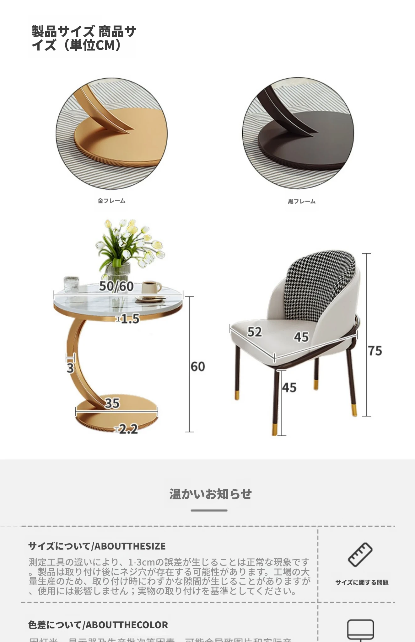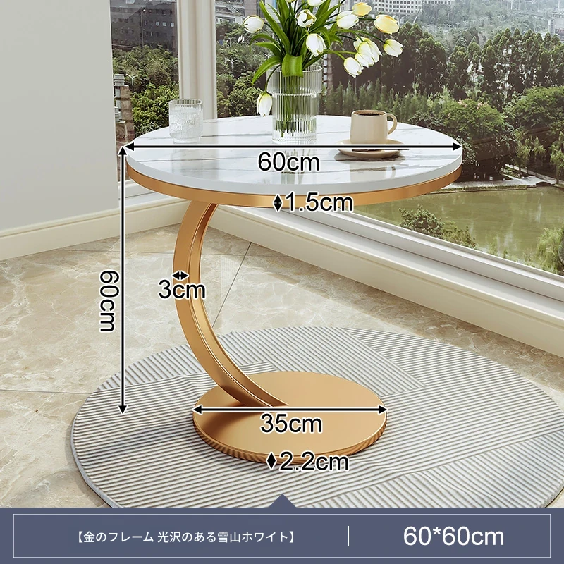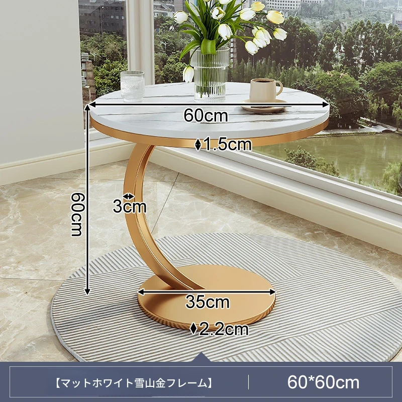 【単卓⭐60直径】マット雪山石岩板+金フレーム【高品質岩板 環境に優しく無臭】