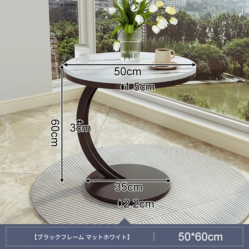 【単卓⭐50直径】マット雪山石岩板+黒フレーム【厚み9MM岩板 安定して揺れない】