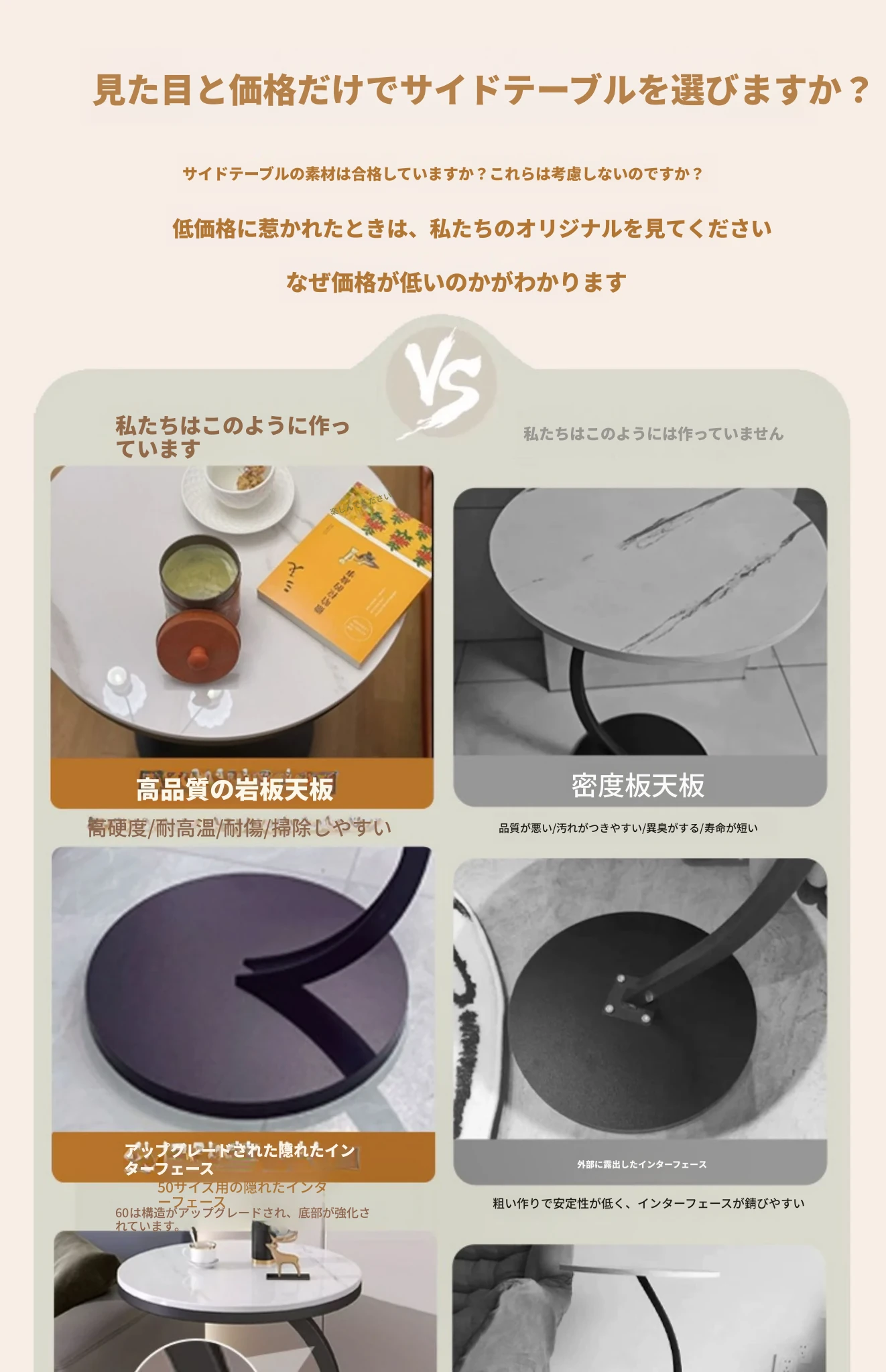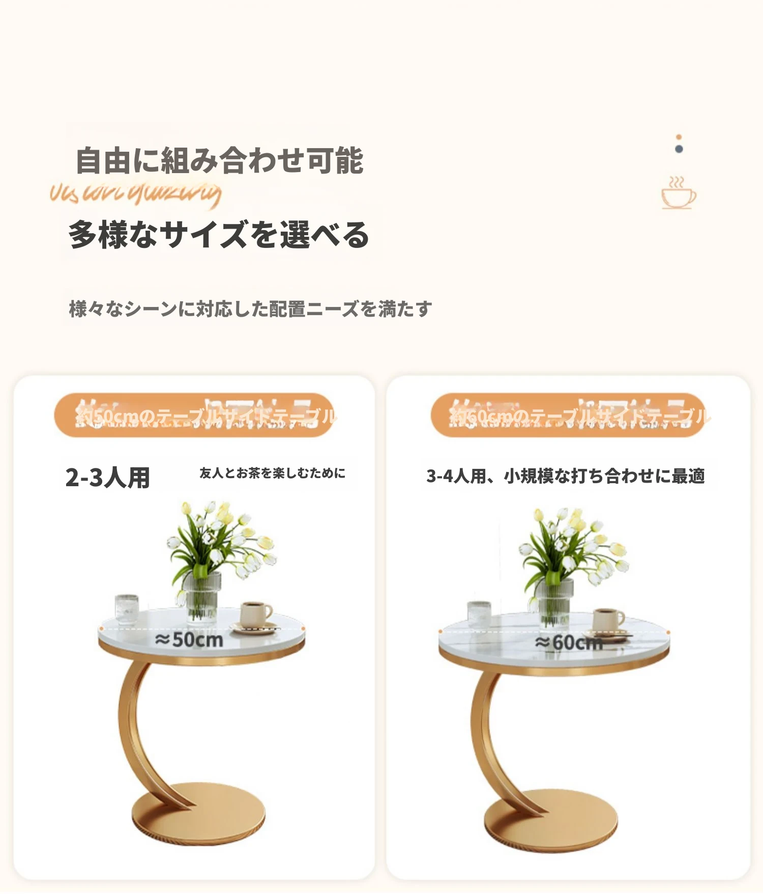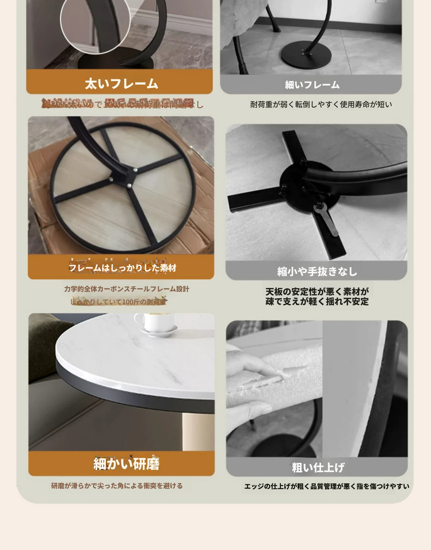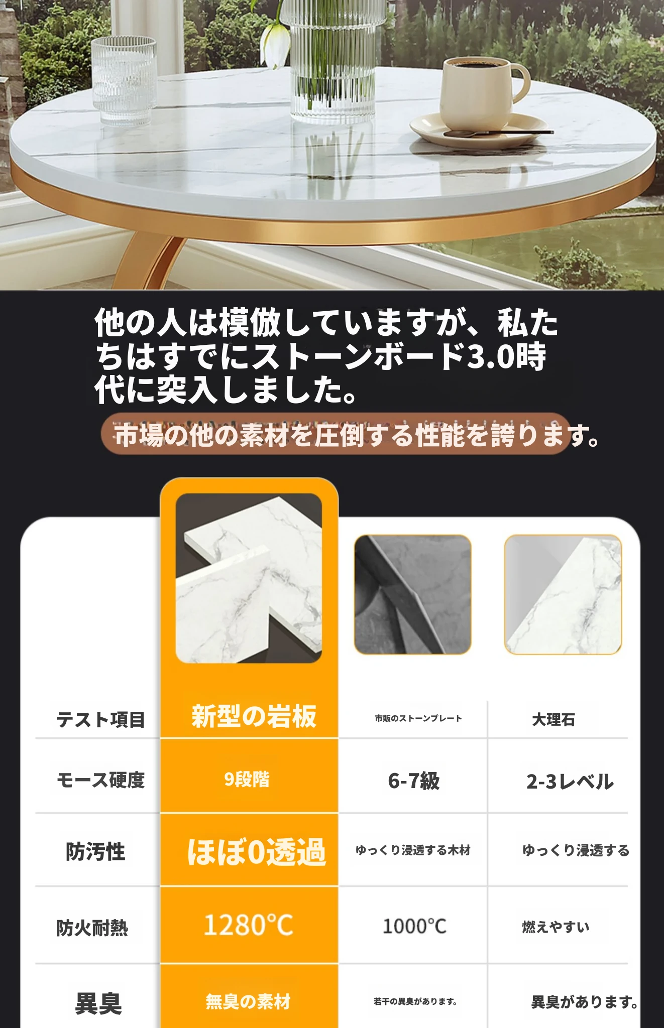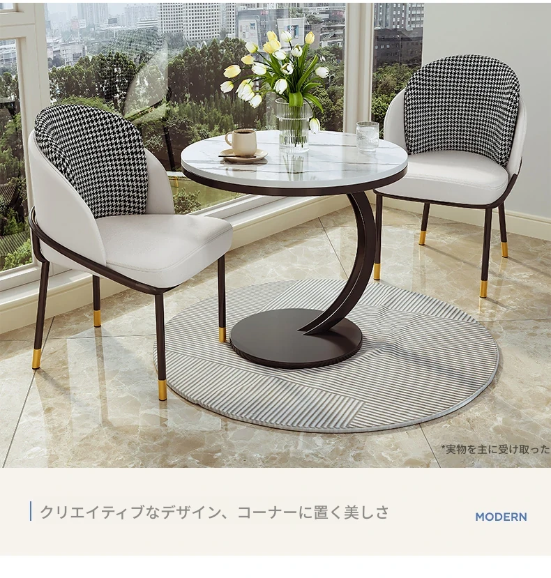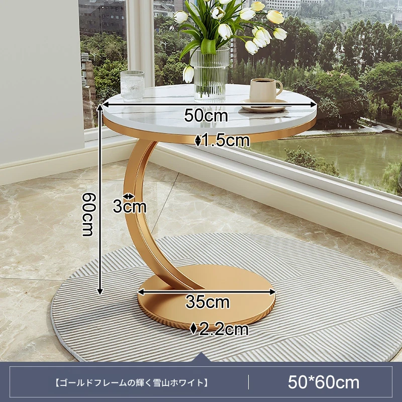 【単卓⭐50直径】マット雪山石岩板+金フレーム【厚み9MM岩板 安定して揺れない】