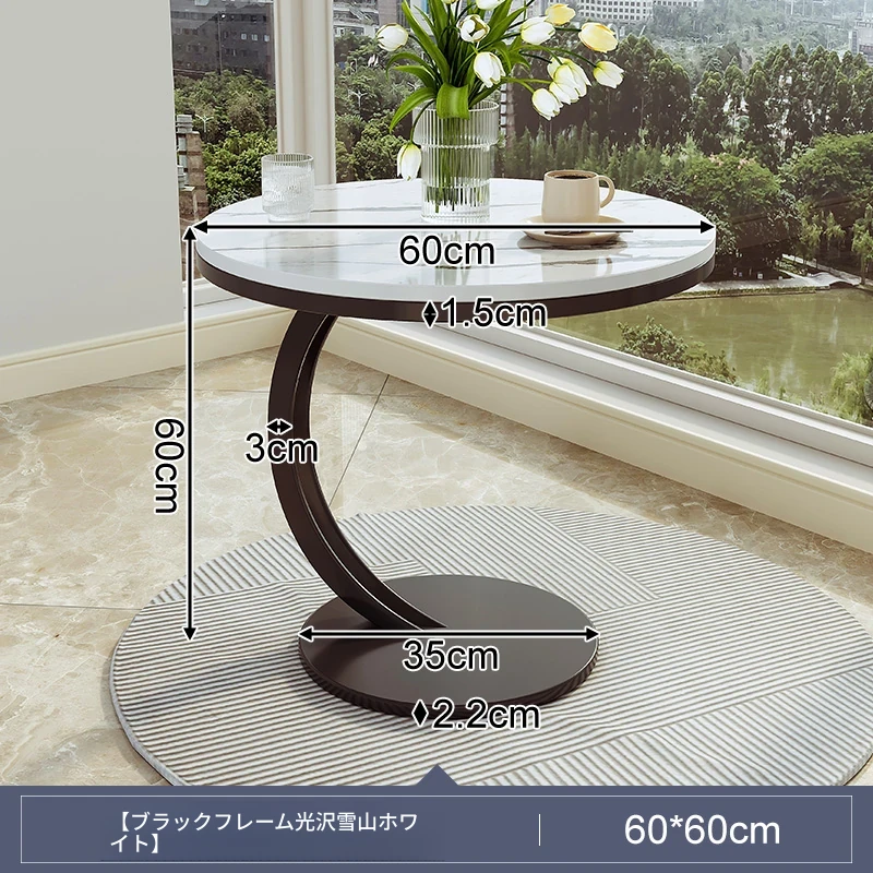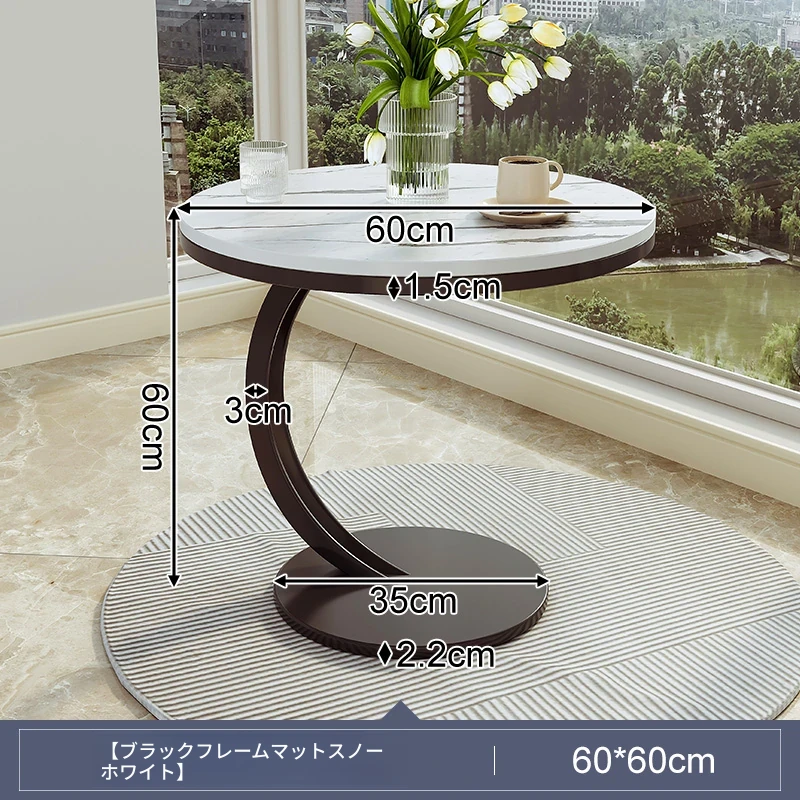【単卓⭐60直径】マット雪山石岩板+黒フレーム【大きな天板 耐荷重が安定】
