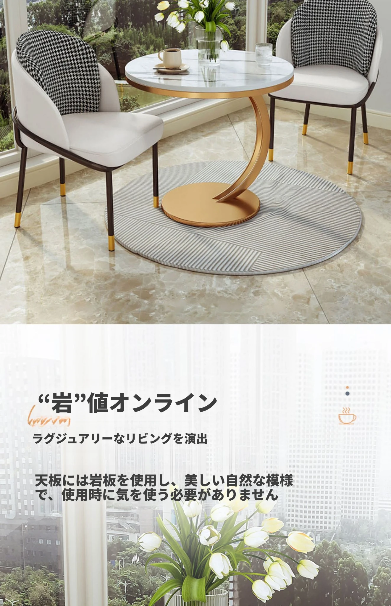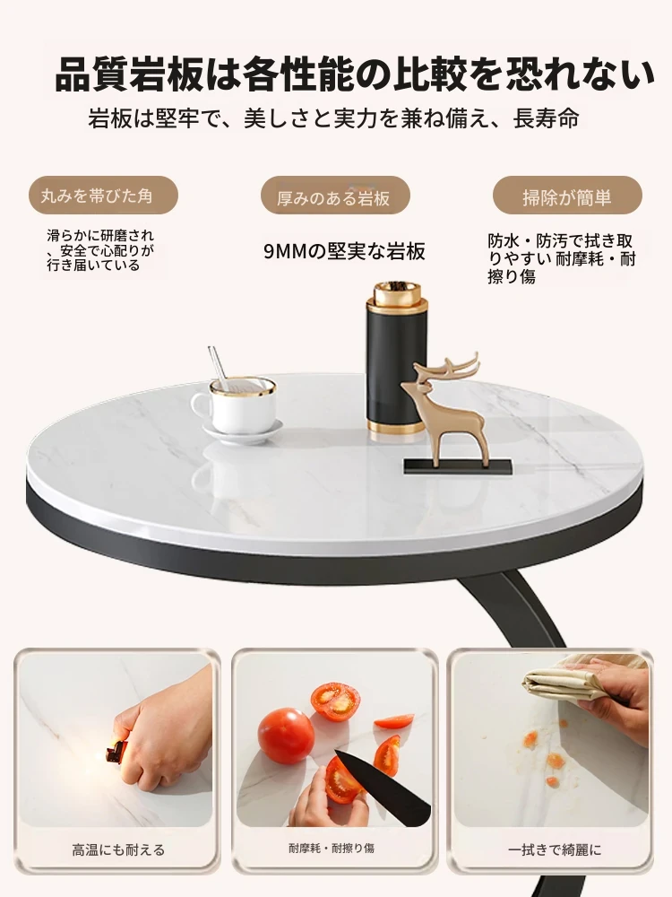 【単卓⭐50直径】光沢雪山石岩板+金フレーム【厚み9MM岩板 安定して揺れない】