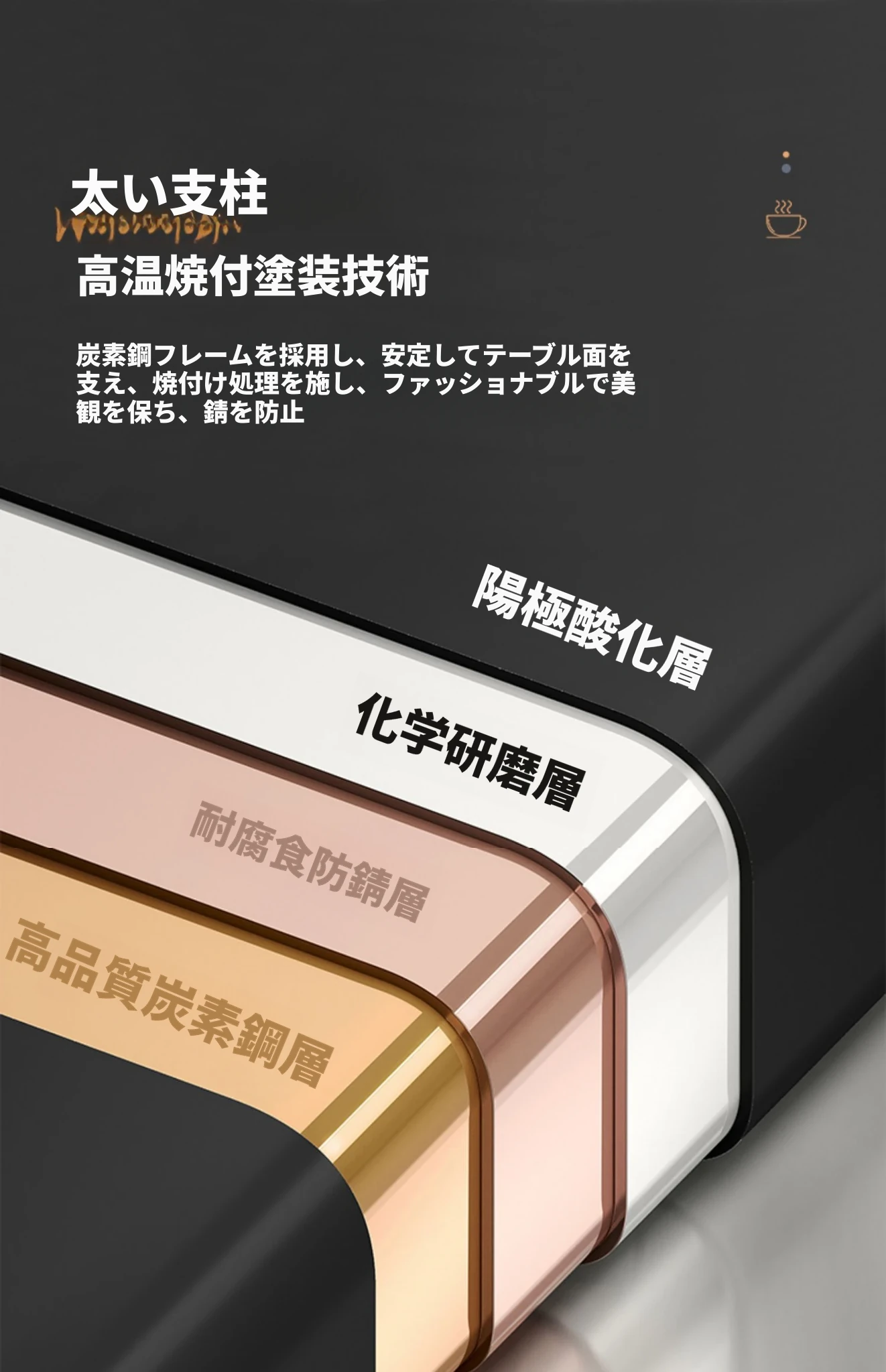【単卓⭐50直径】光沢雪山石岩板+黒フレーム【厚み9MM岩板 安定して揺れない】