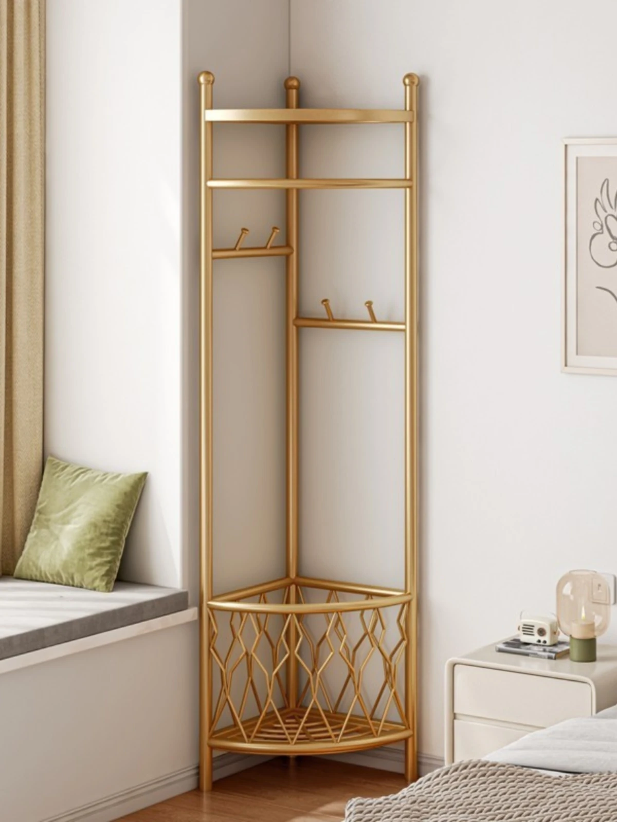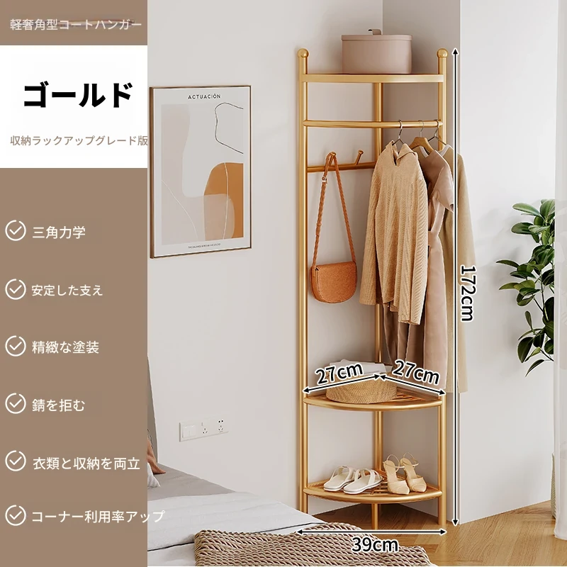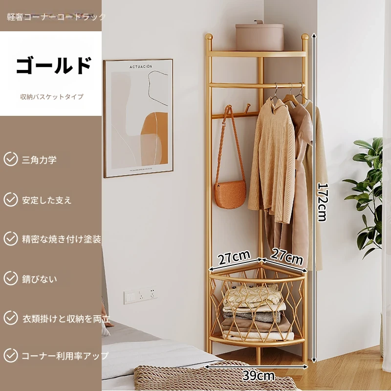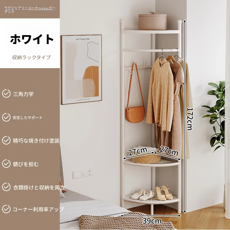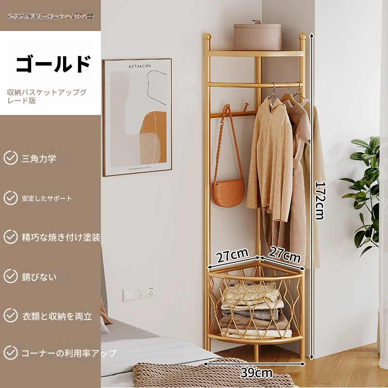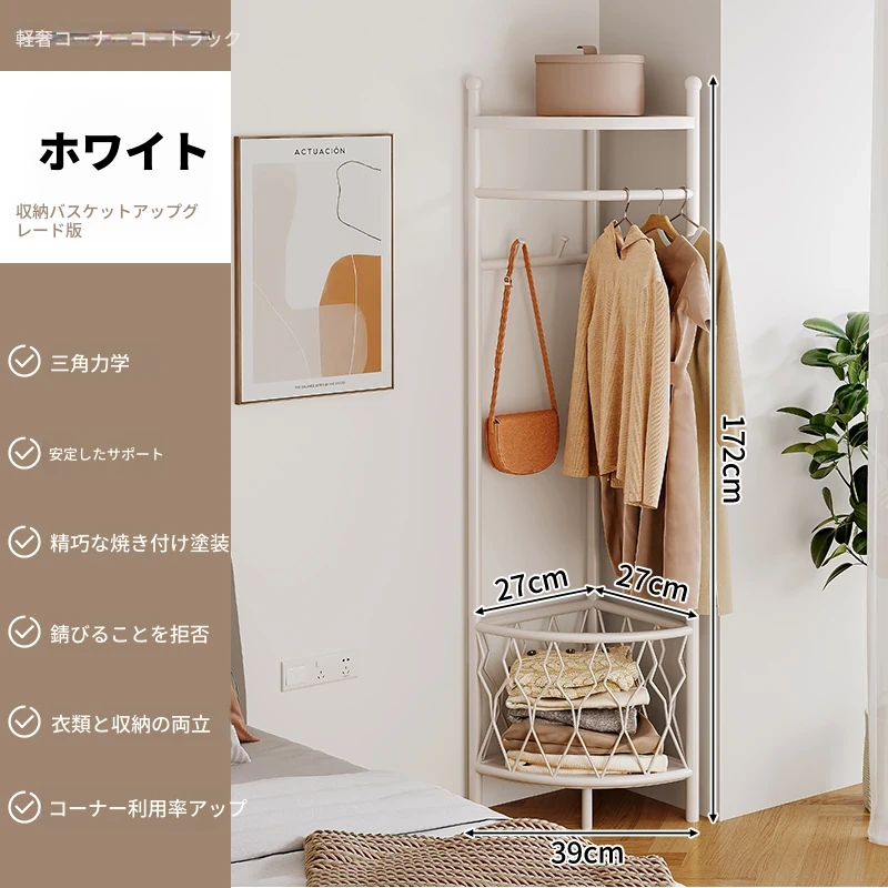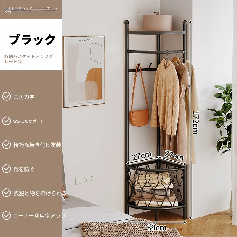 角型コートハンガー 家庭用 室内用 フロアスタンドベッドルーム 簡易コーナー おしゃれなハンガー 洗濯物干し 人気の掛け衣類収納 省スペースでスタイリッシュに!