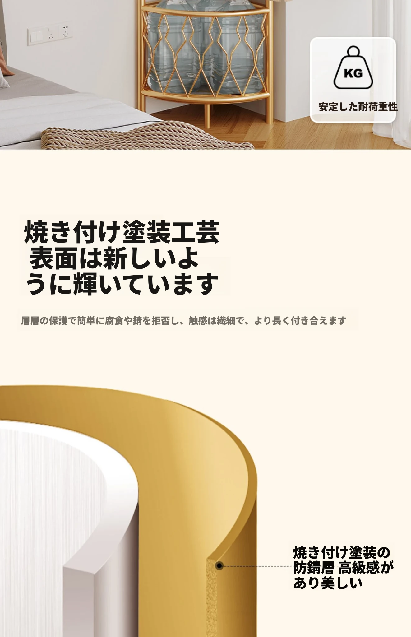 <スチールフレームアップグレード>ライトラグジュアリーゴールド【棚板タイプ】