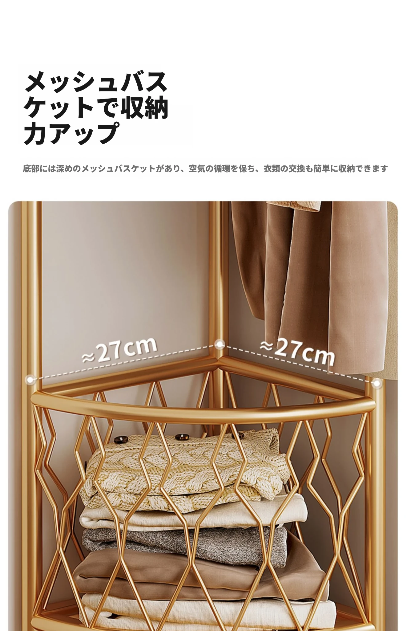 <スチールフレームアップグレード> ラグジュアリーゴールド【収納バスケットタイプ】