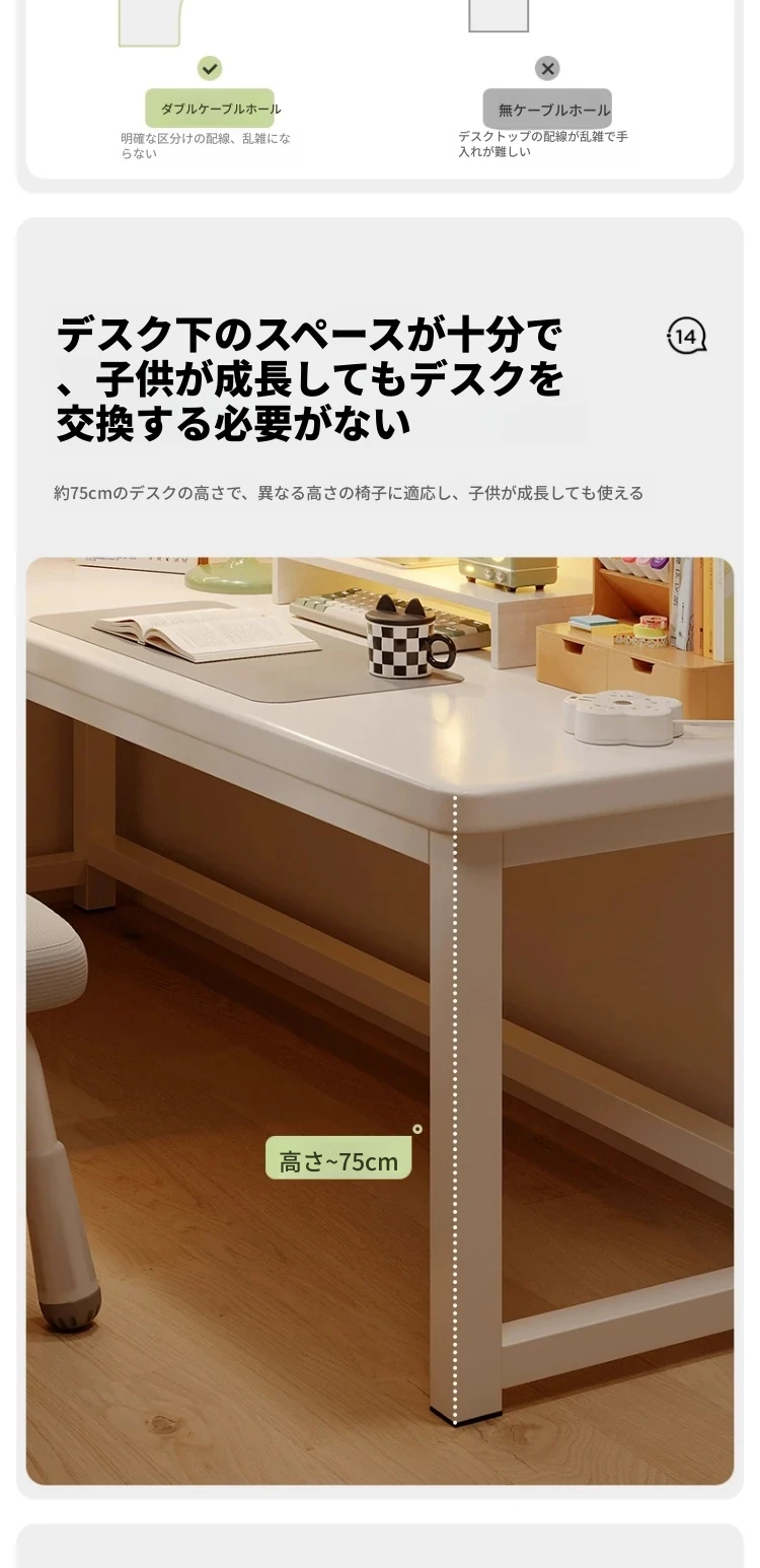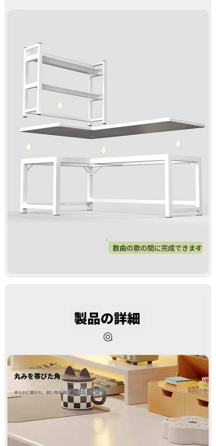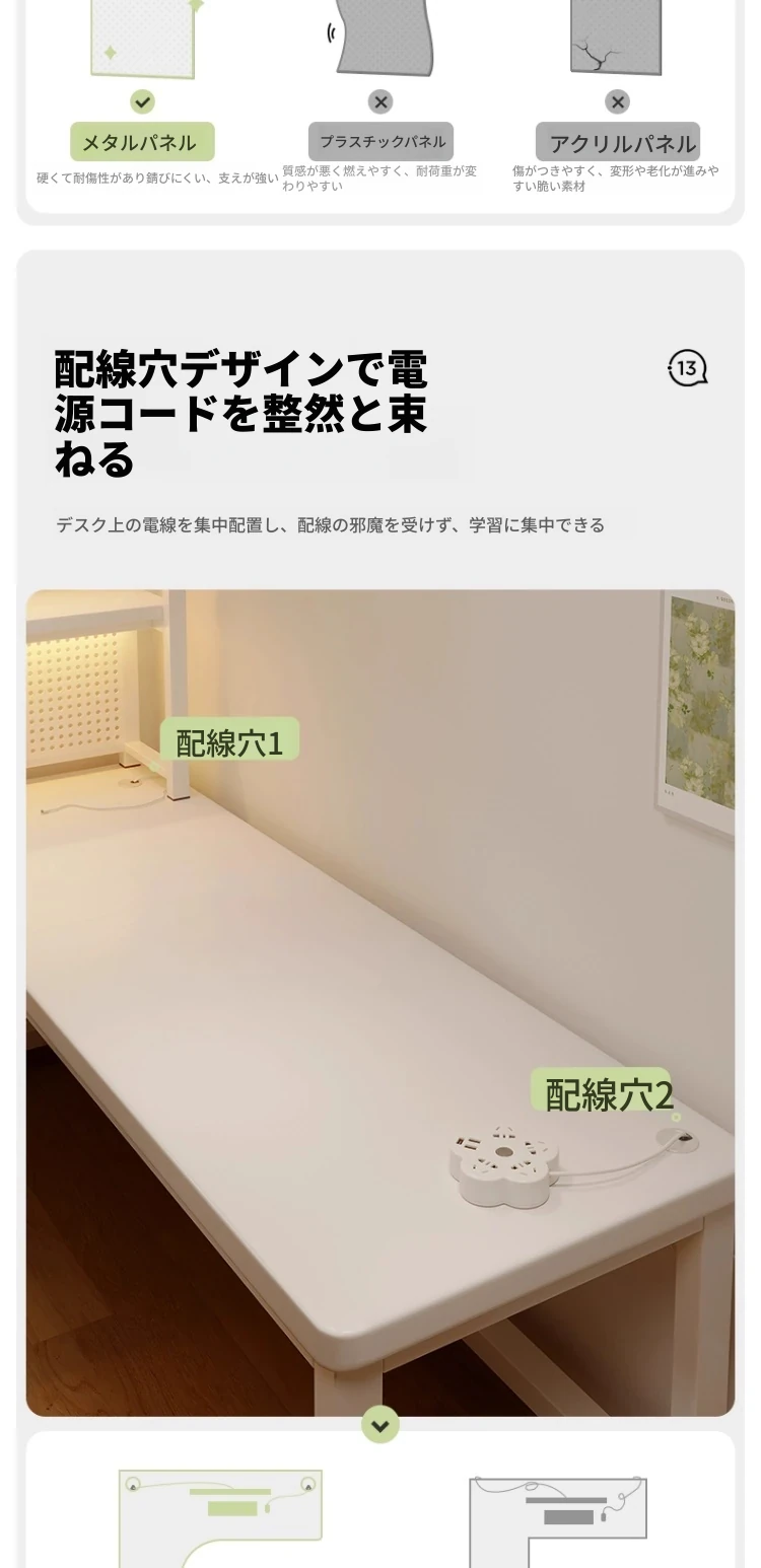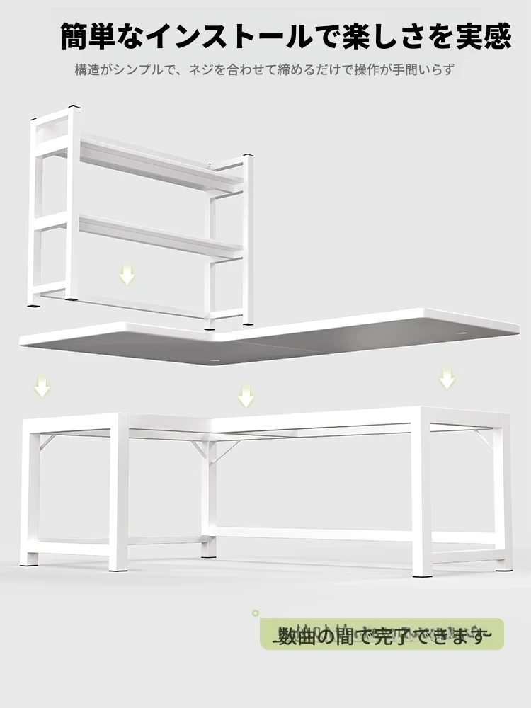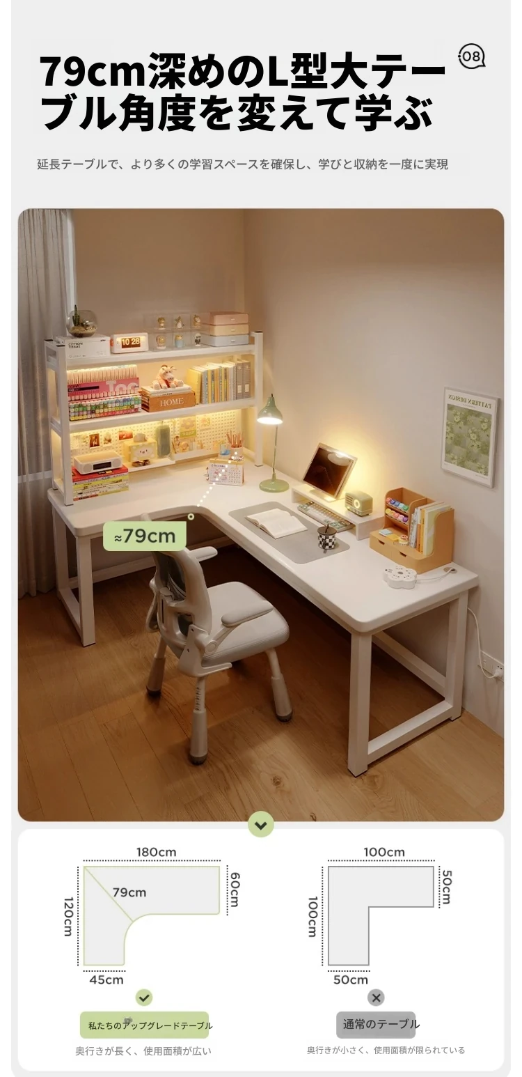【単卓+書棚+穴あきボード】暖白色右型-主機トレイ/磁石/フック付き