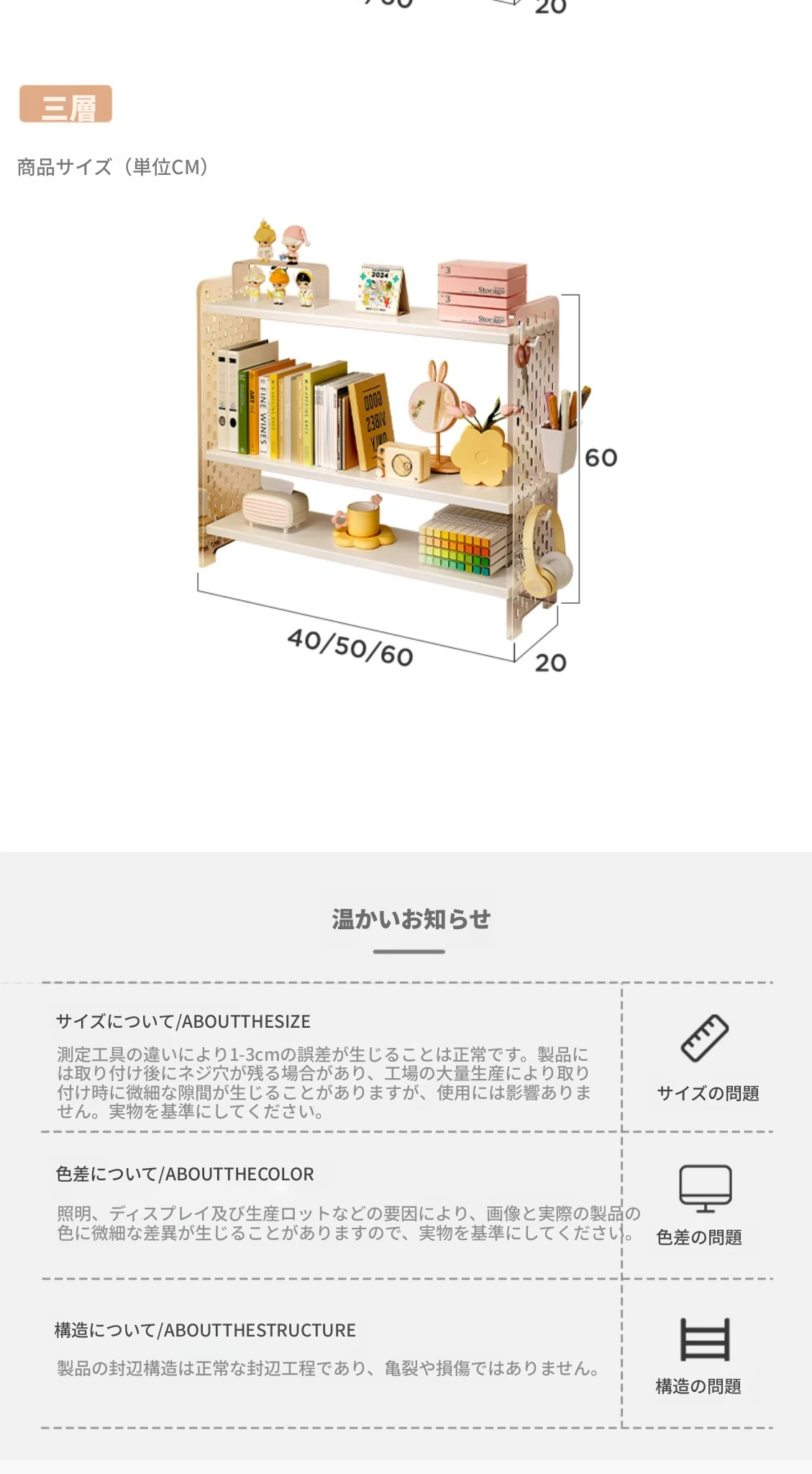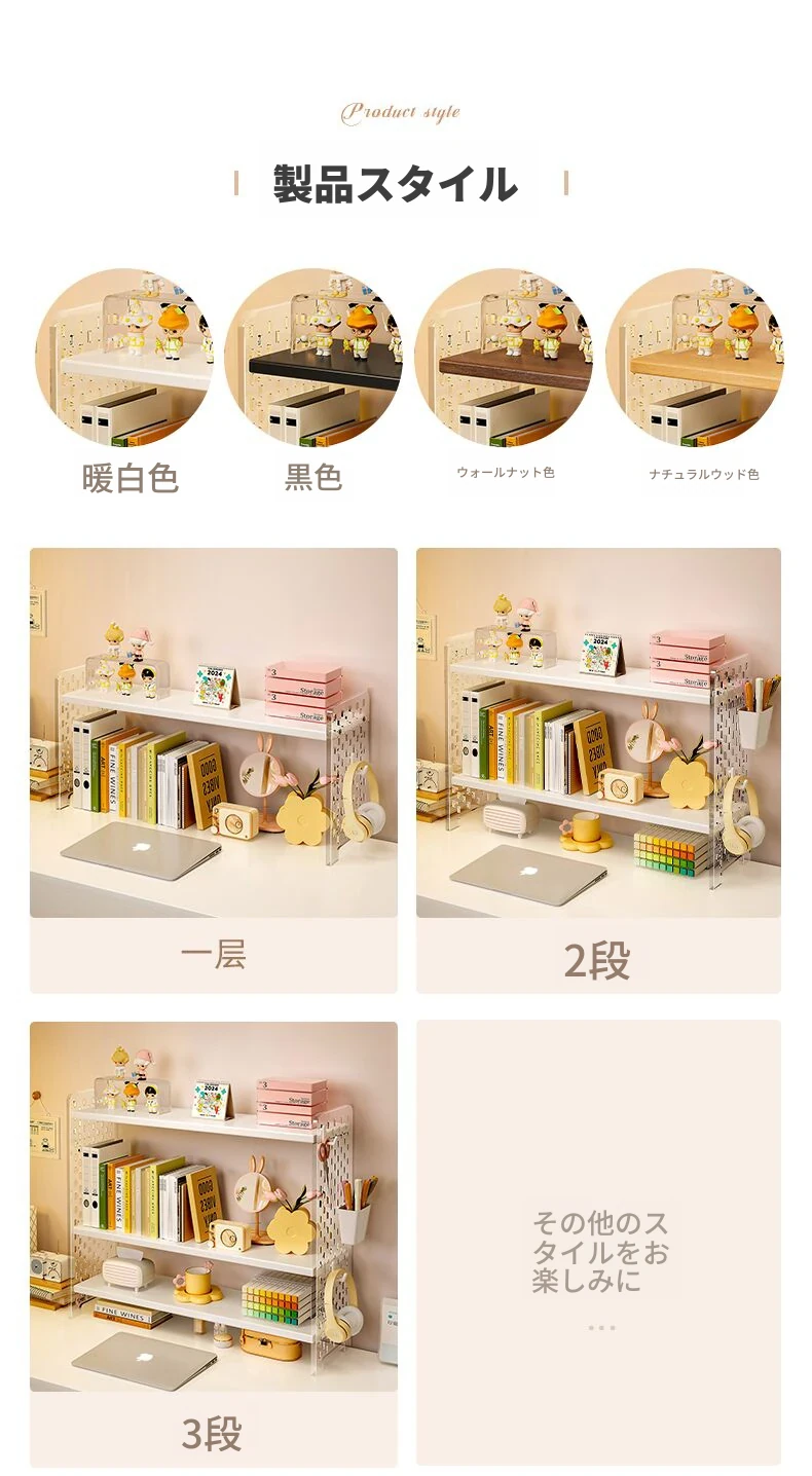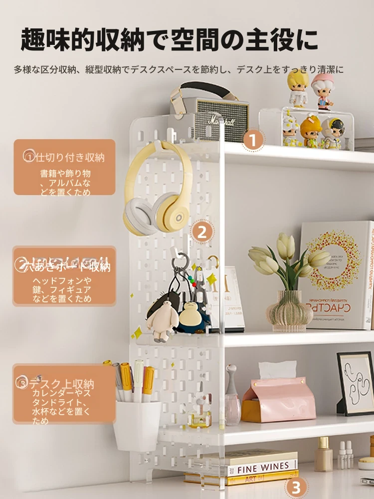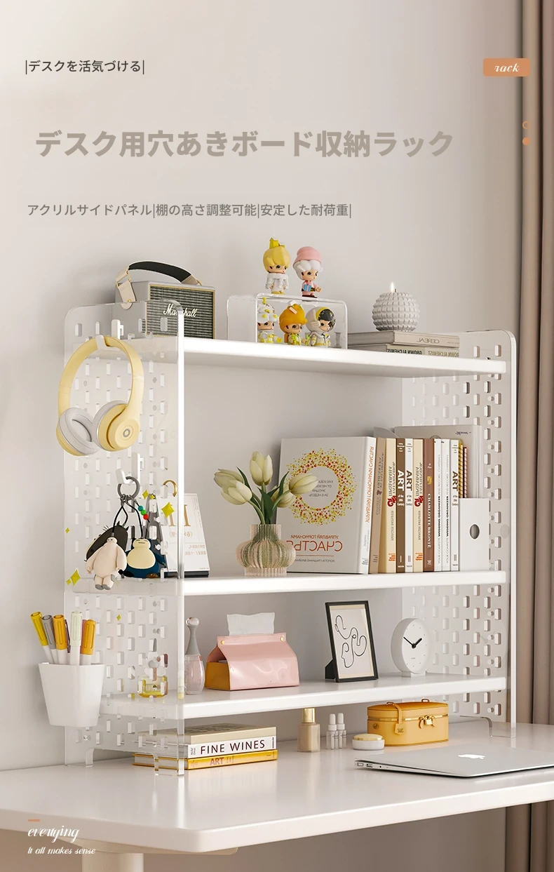 【3段】暖白色+アクリル穴あきボード40*20*60(フック+収納ボックス付き)