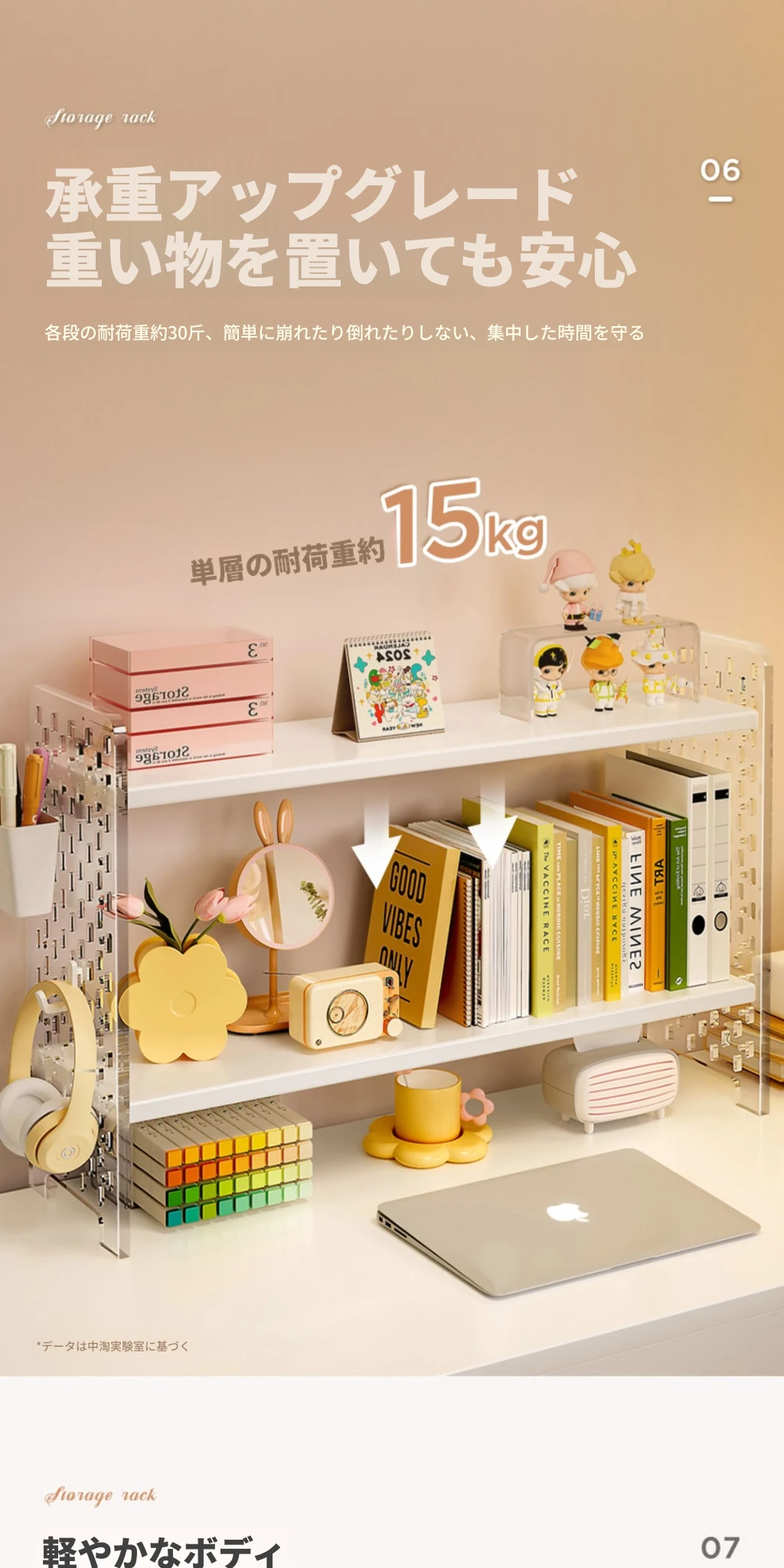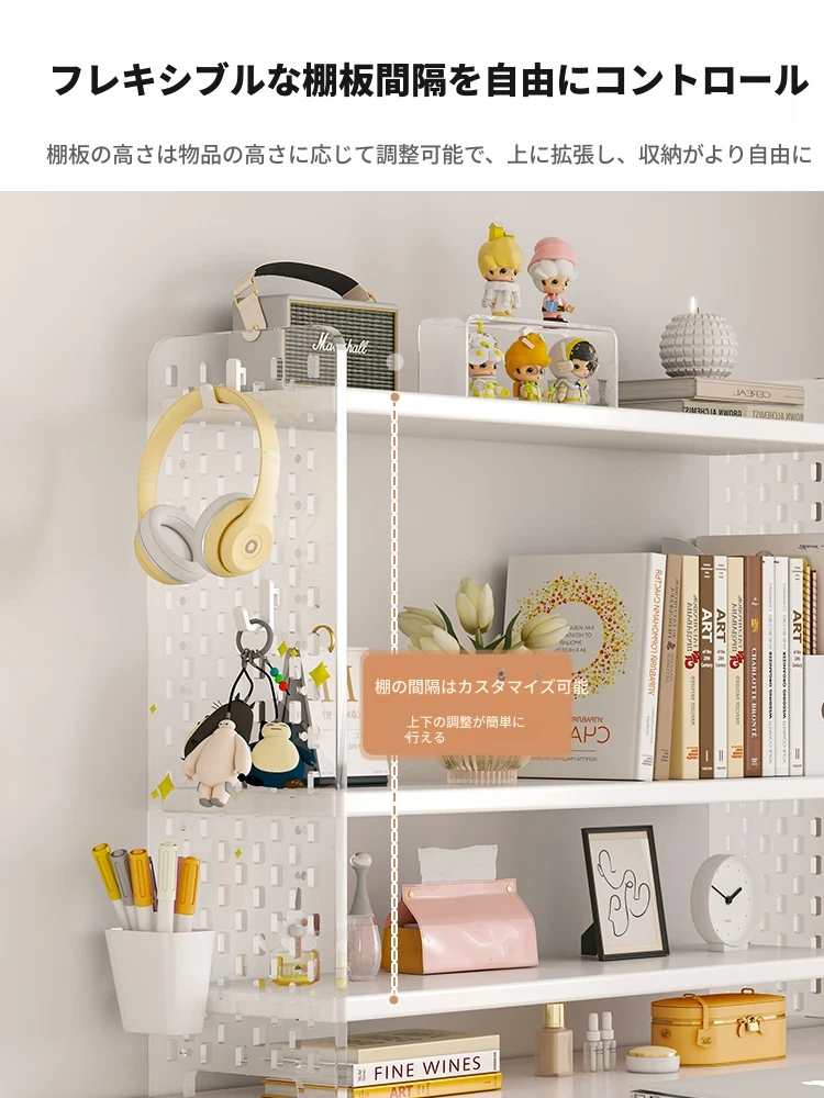 【2段】暖白色+アクリル穴あきボード50*20*36(フック+収納ボックス付き)