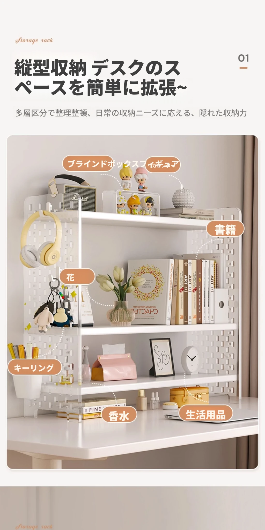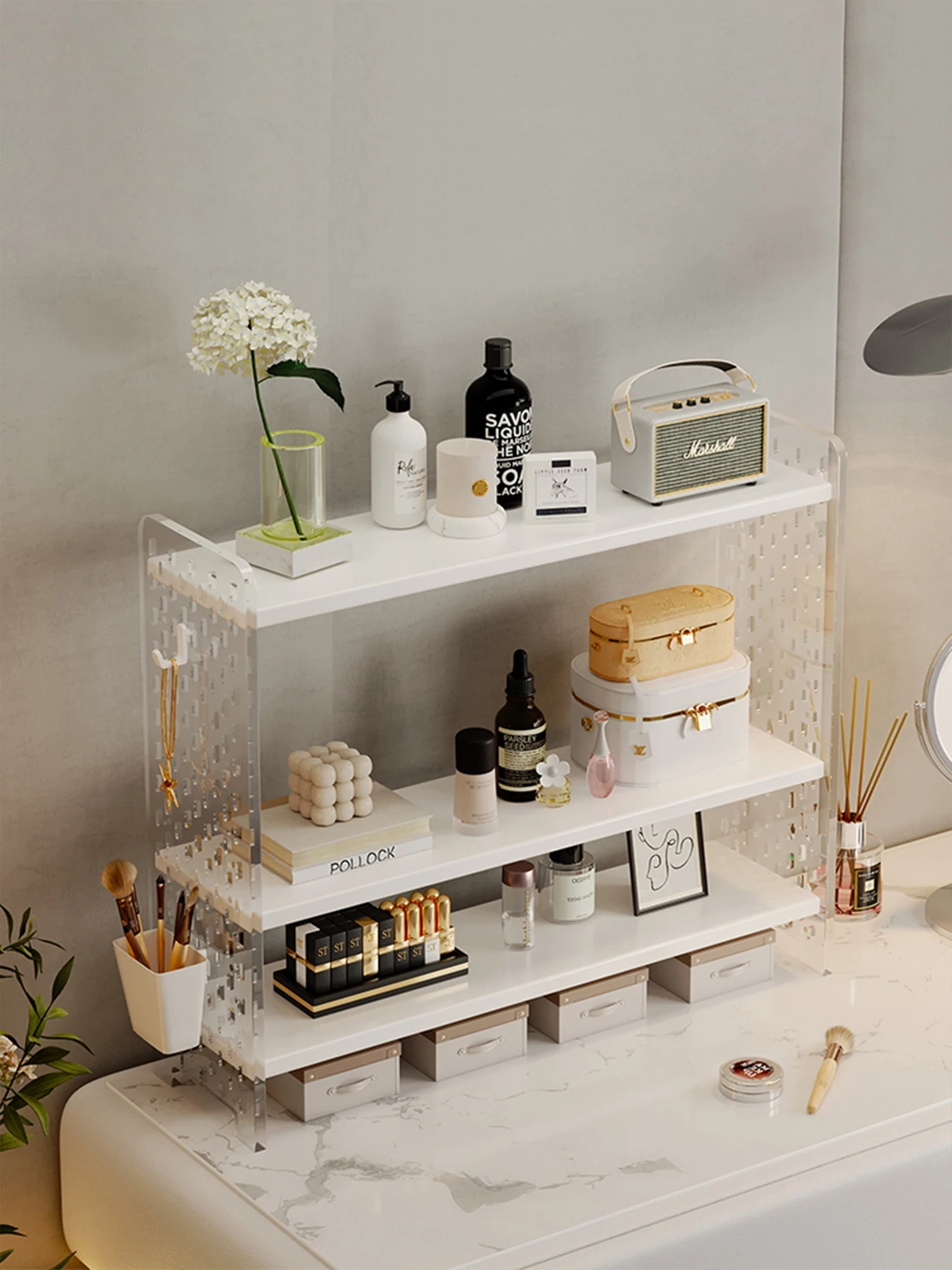 デスクトップ化粧品収納ラック - おしゃれな寝室のドレッサーにピッタリ!スキンケアや口紅、香水、ジュエリーをすっきり整理整頓できる便利なアイテムです。あなたのビューティースペースを華やかに演出します!