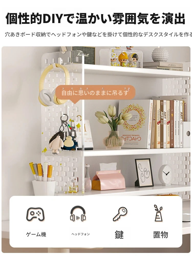 【2段】暖白色+アクリル穴あきボード60*20*36(フック+収納ボックス付き)