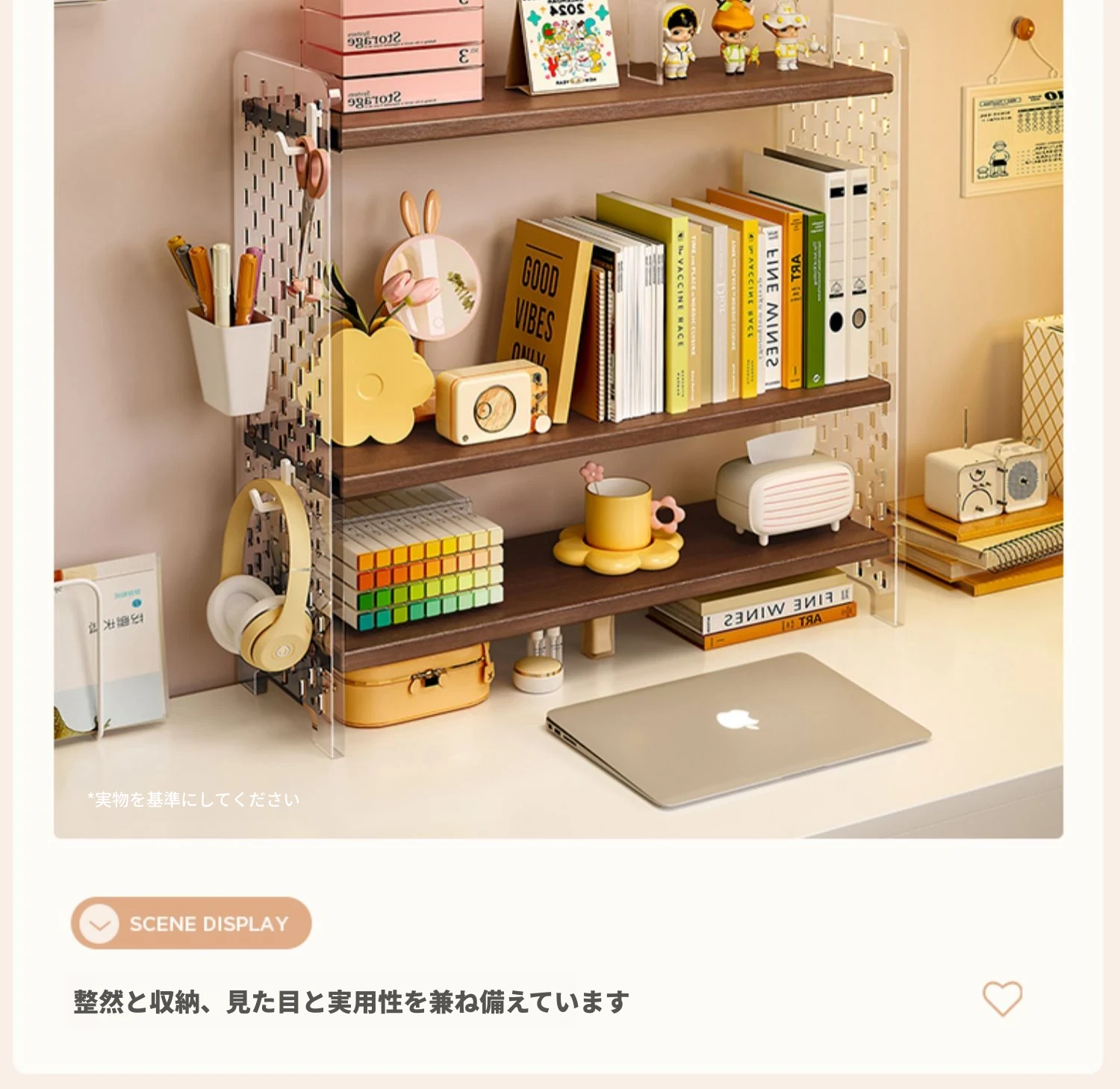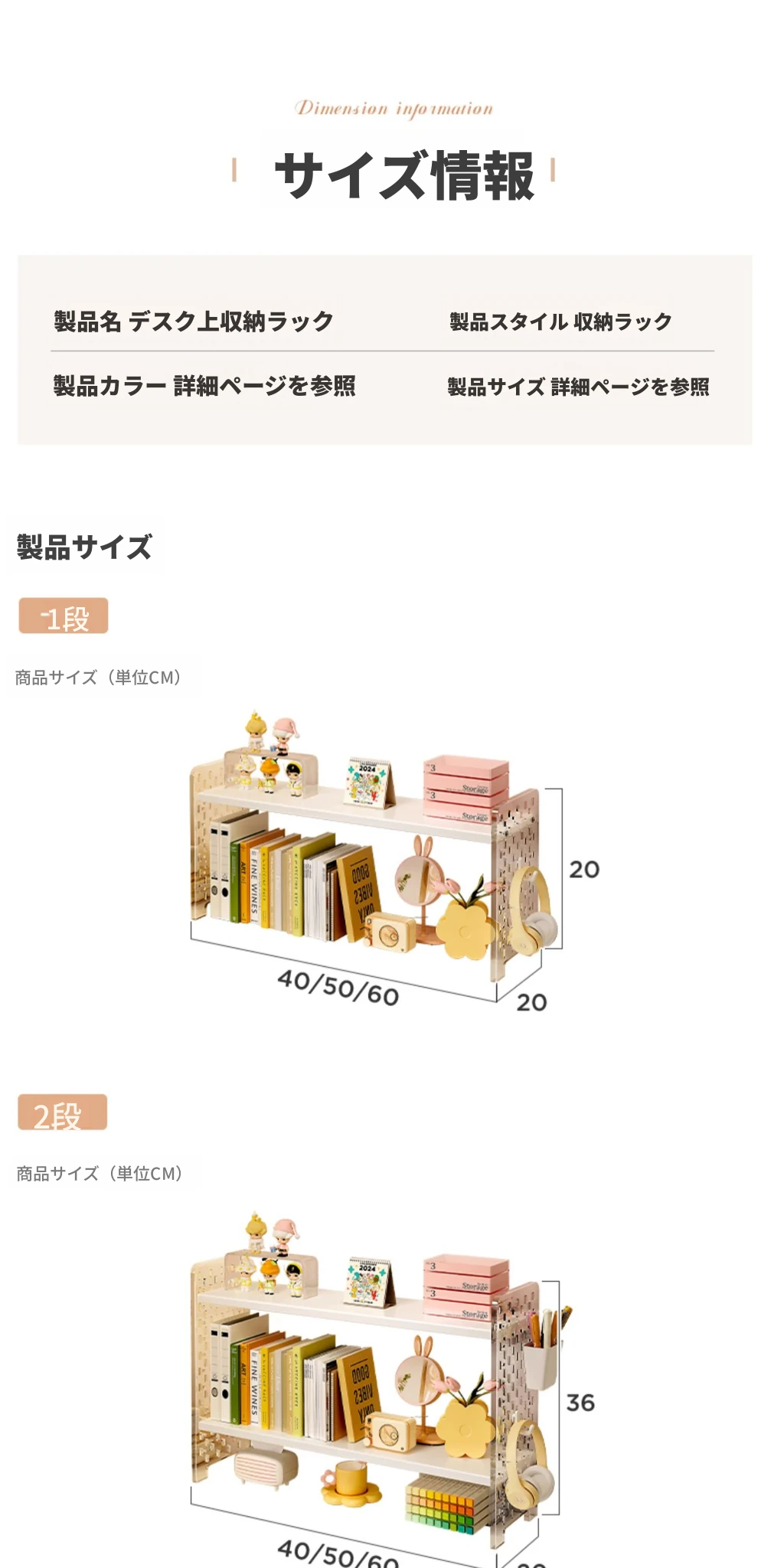 【2段】ナチュラルウッド+アクリル穴あきボード40*20*36(フック+収納ボックス付き)