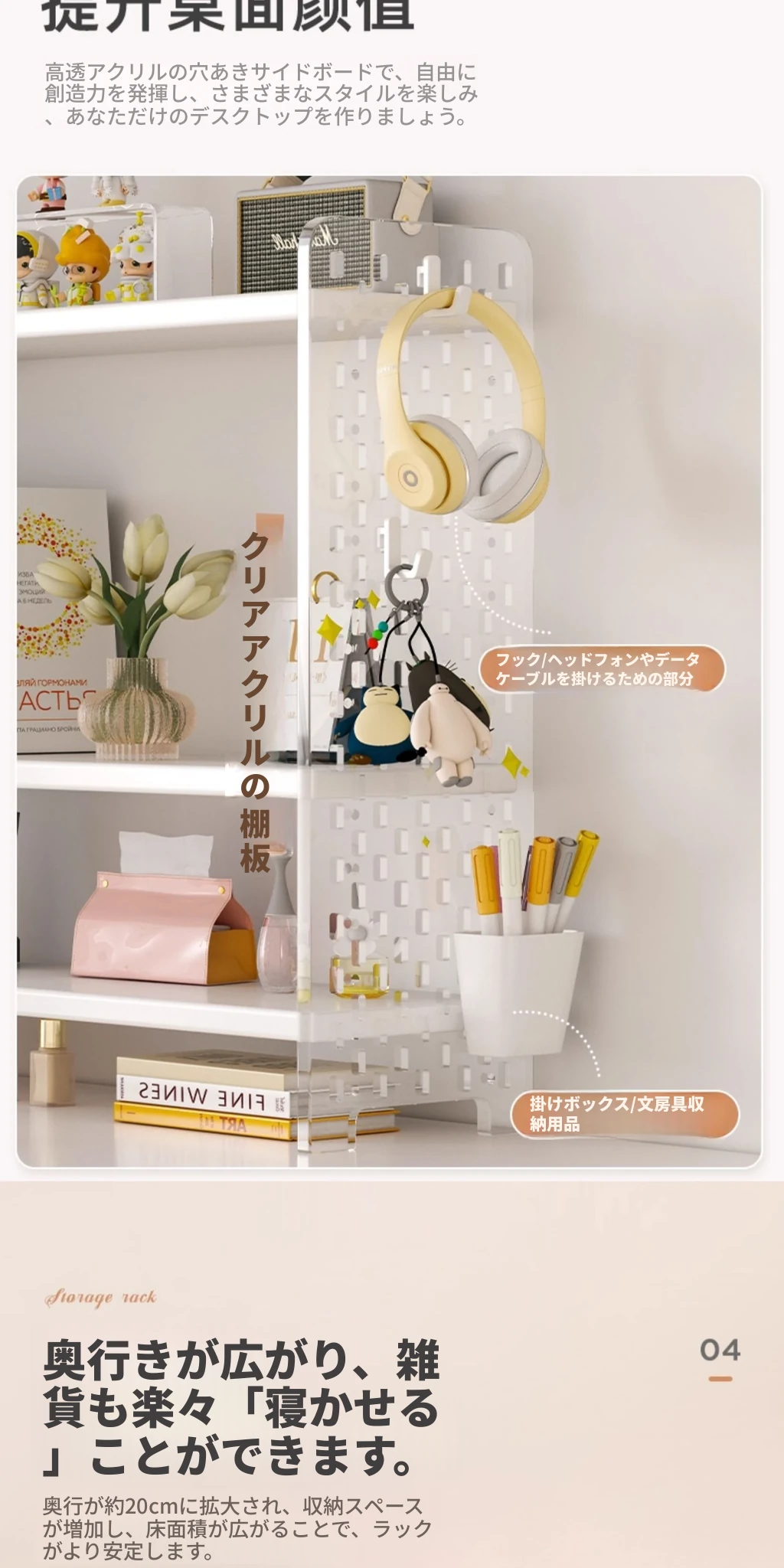 【3段】ナチュラルウッド+アクリル穴あきボード40*20*60(フック+収納ボックス付き)