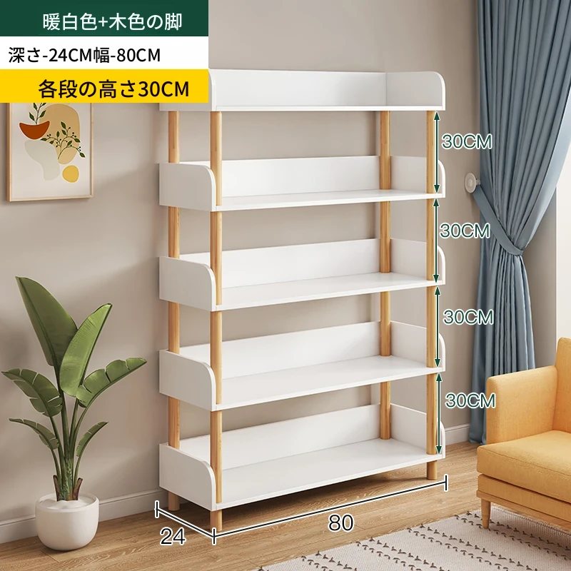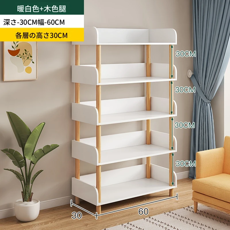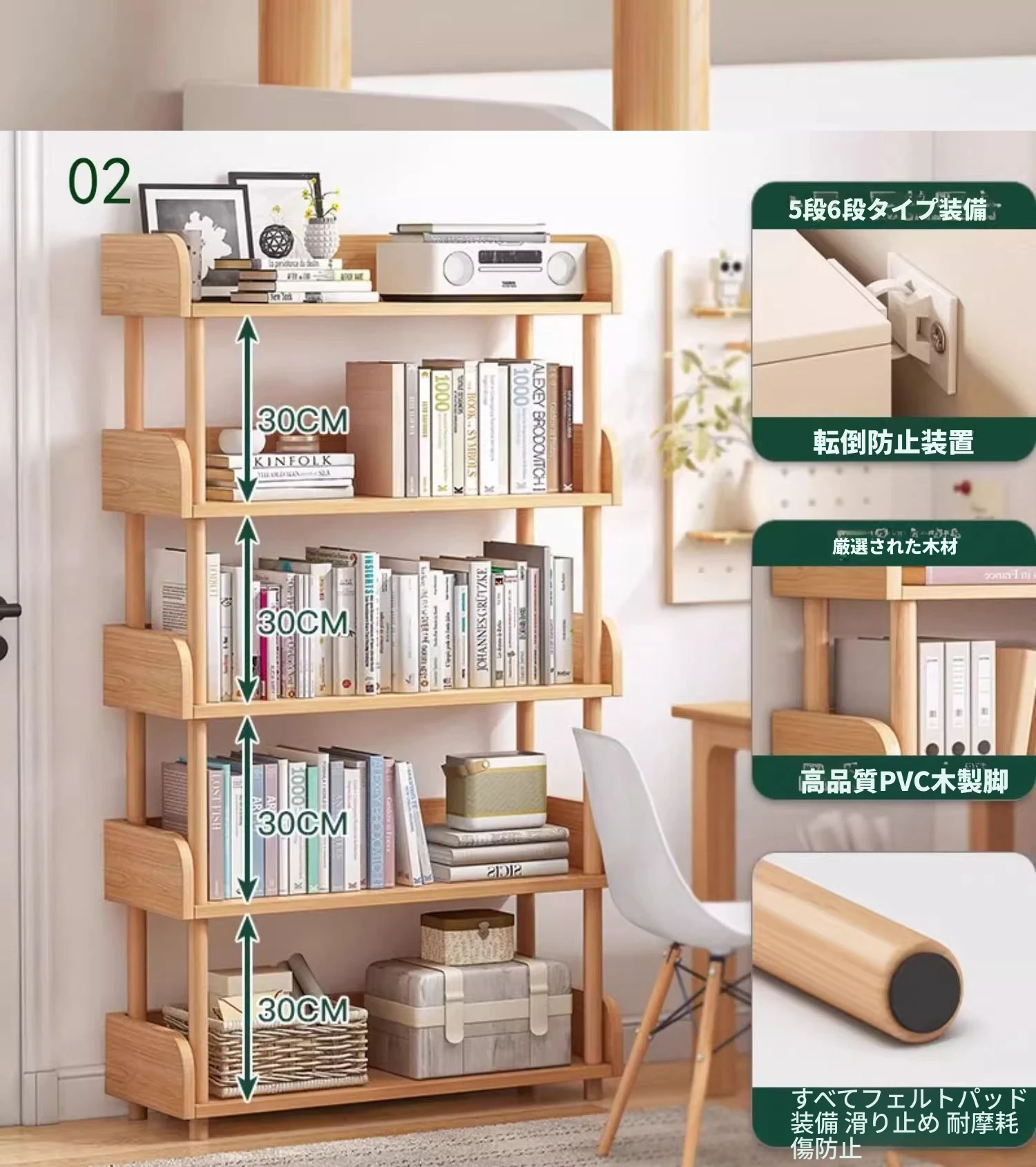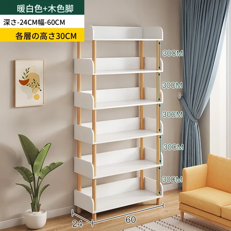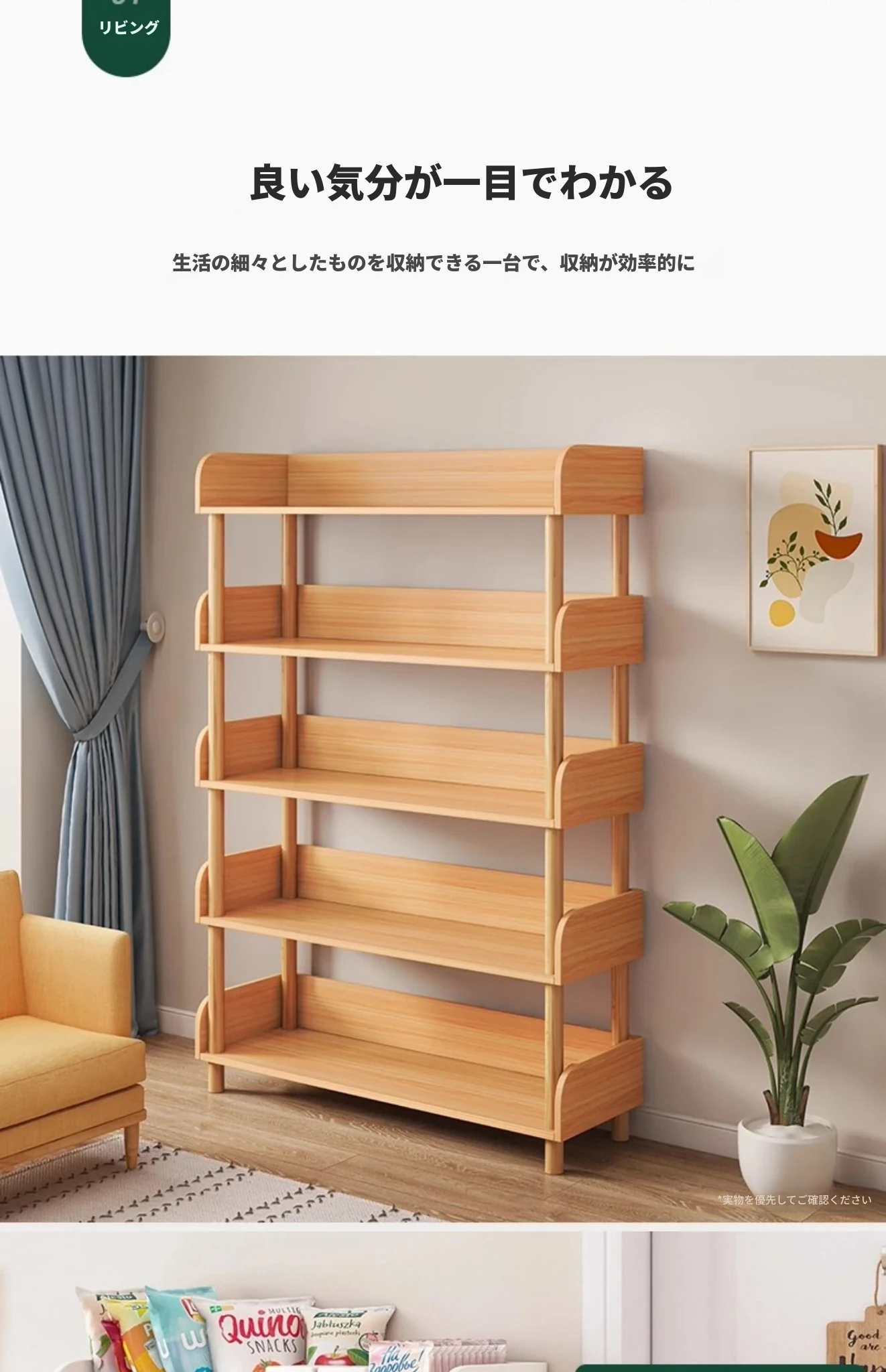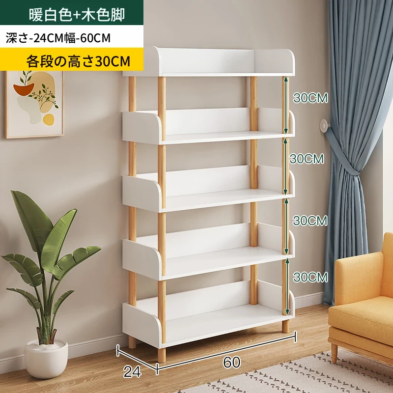リビングルーム用壁寄せ本棚・フロア収納ラック - 家庭向け多段木製収納棚、雑貨整理に最適!おしゃれで実用的な収納ソリューションをお届けします!