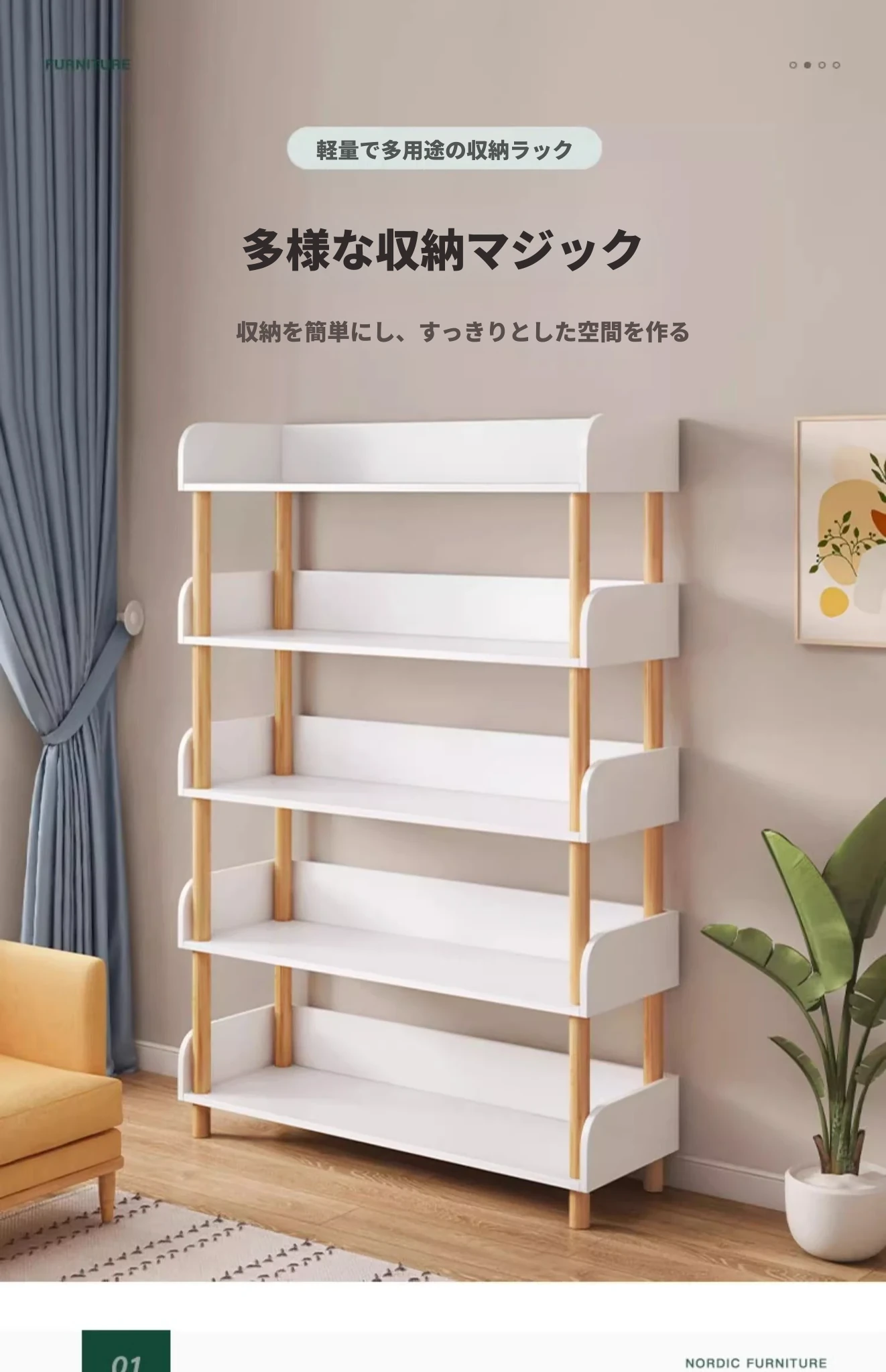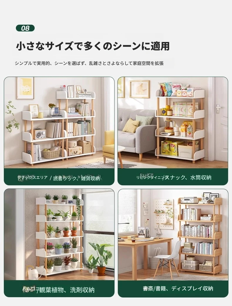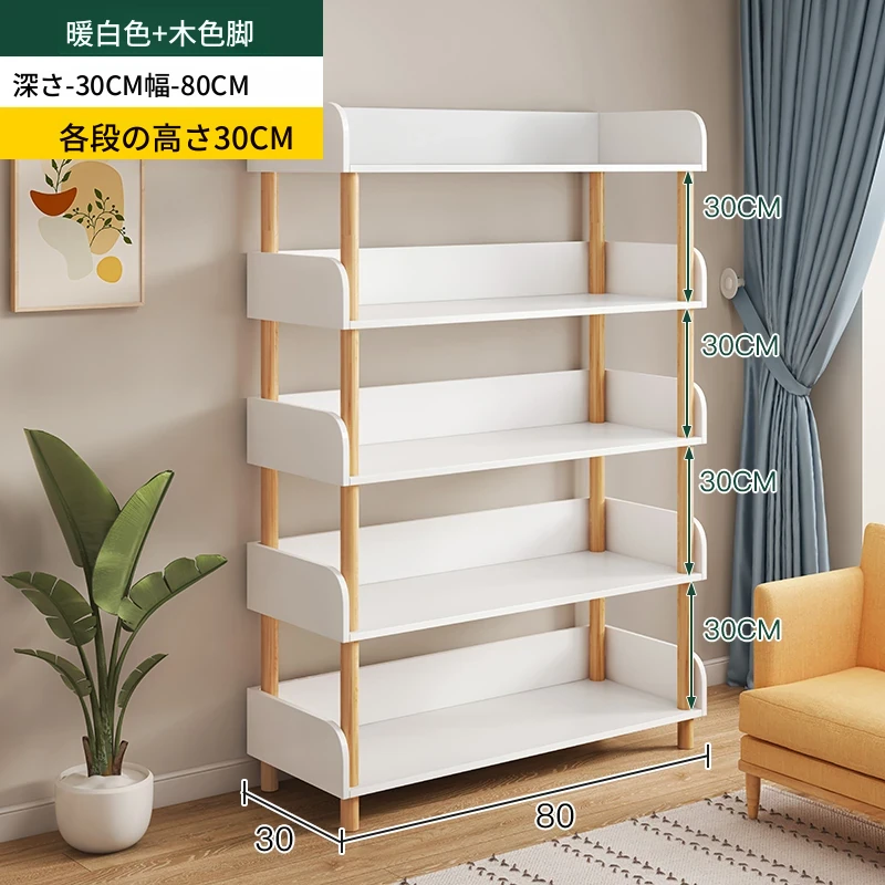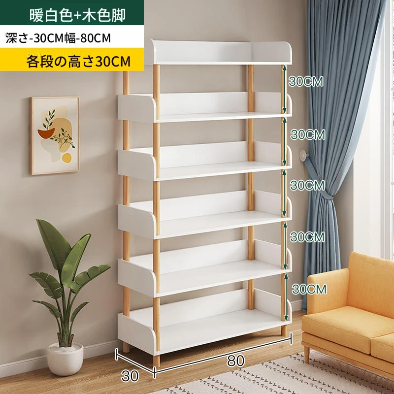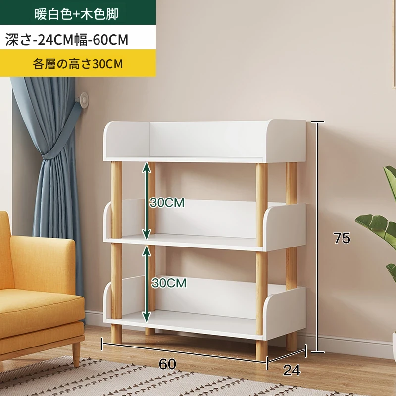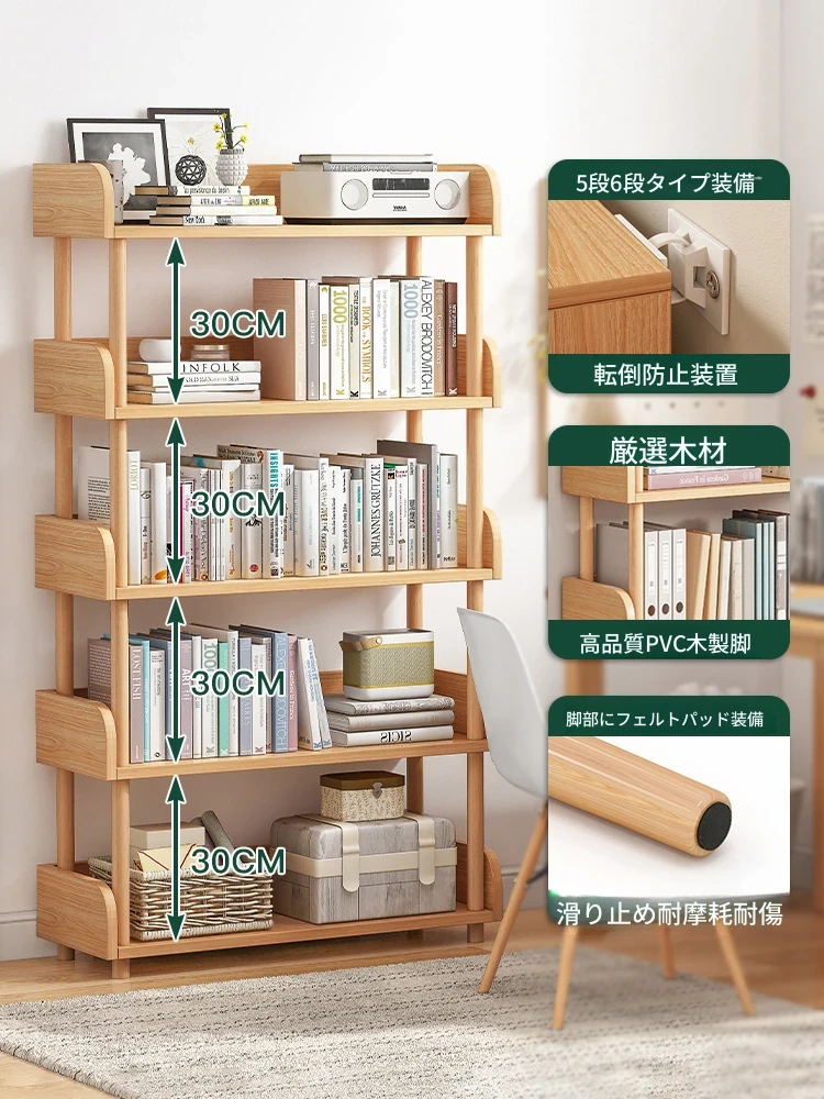 リビングルーム用壁寄せ本棚・フロア収納ラック - 家庭向け多段木製収納棚、雑貨整理に最適!おしゃれで実用的な収納ソリューションをお届けします!