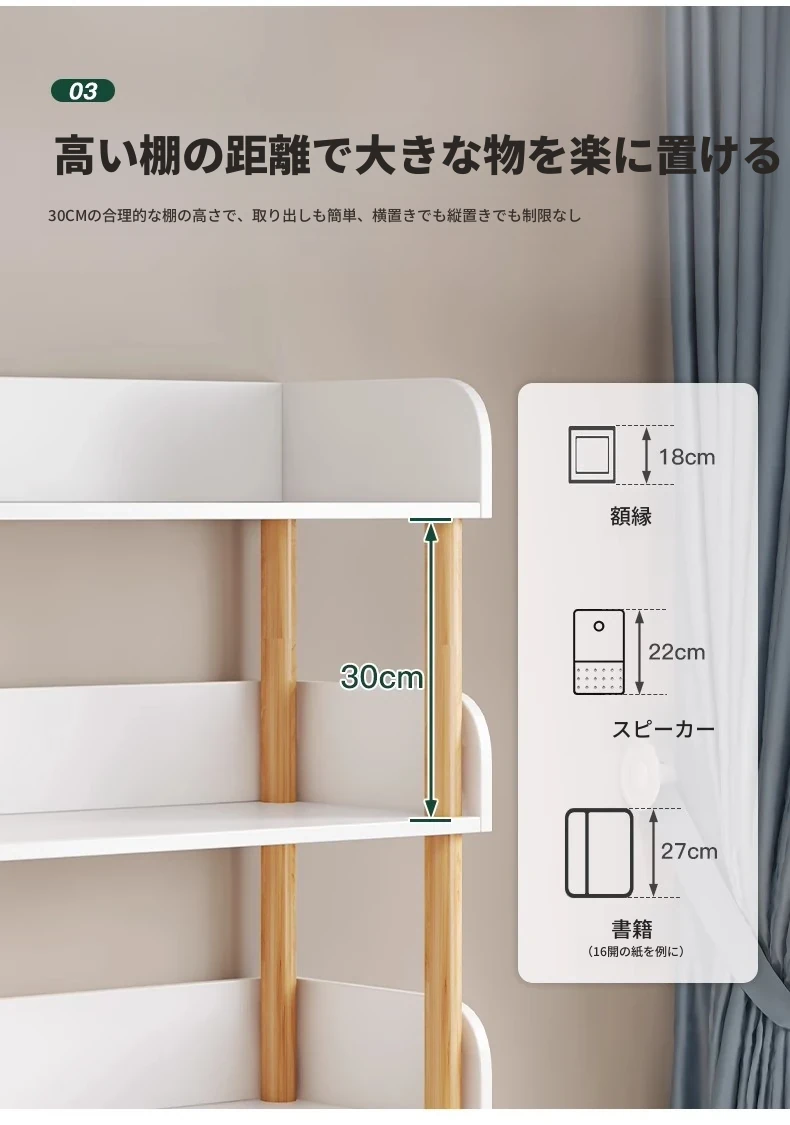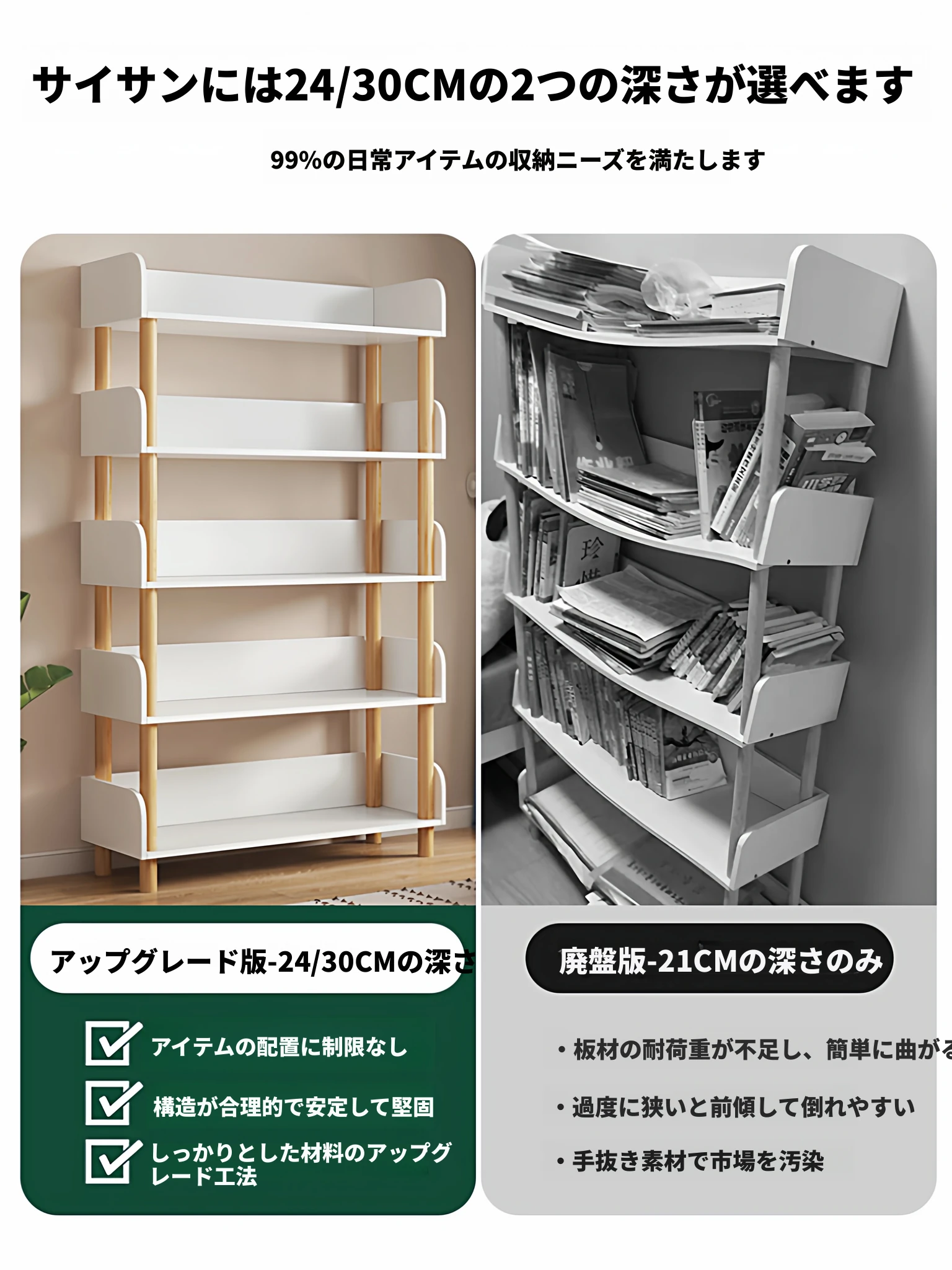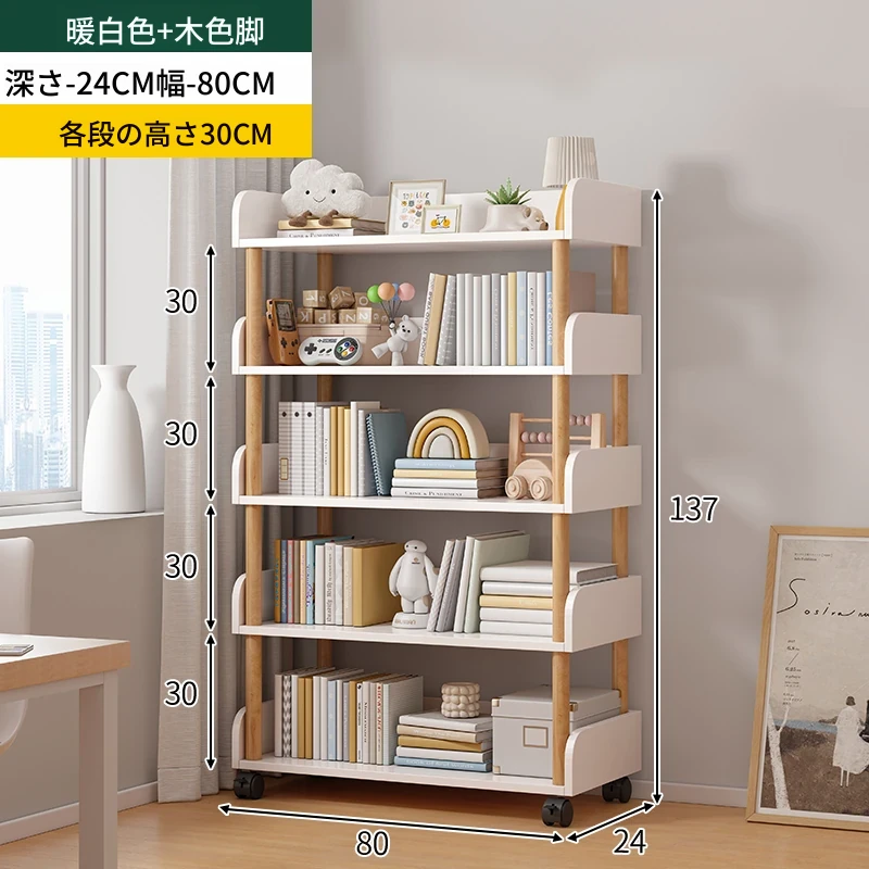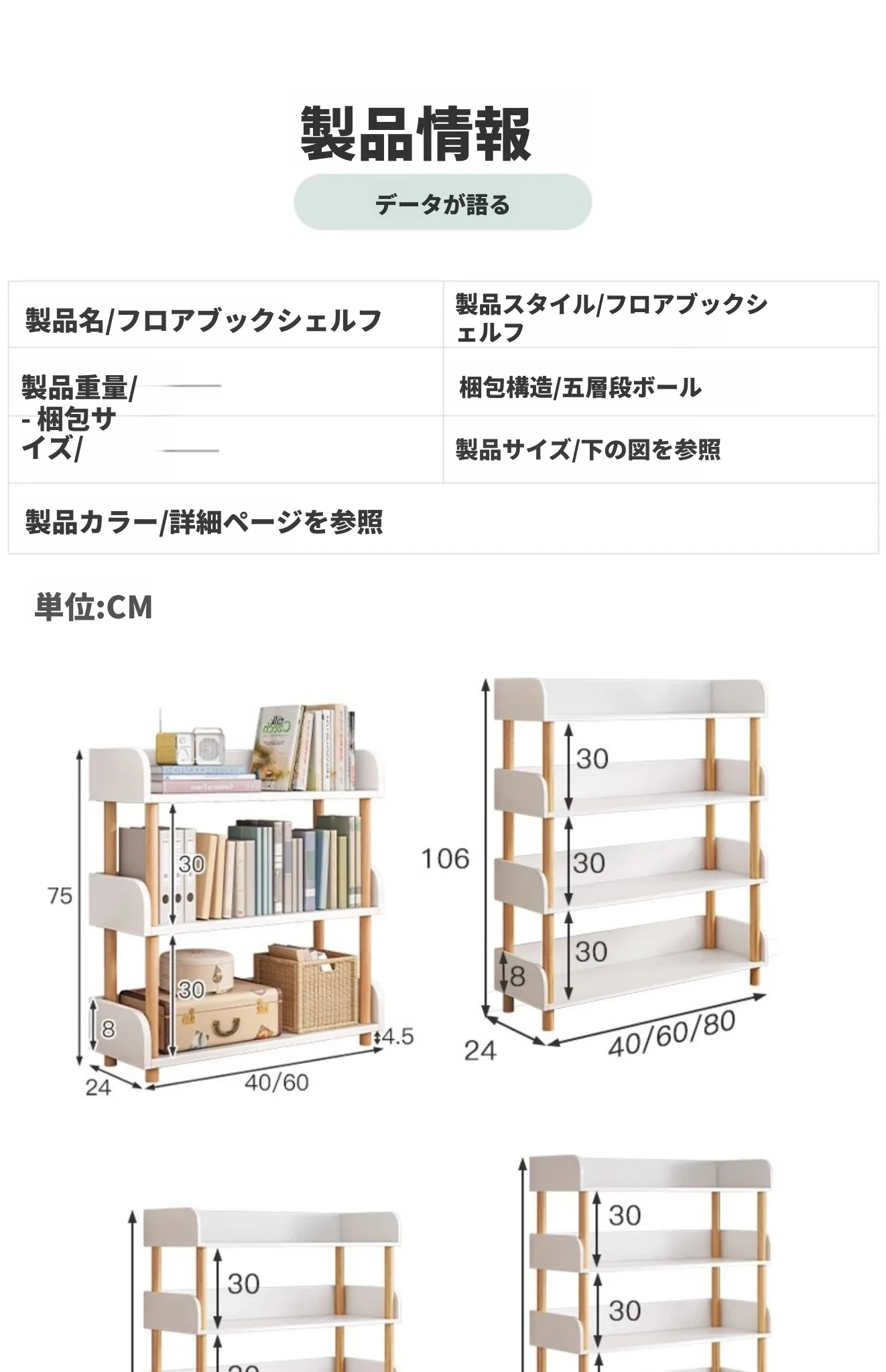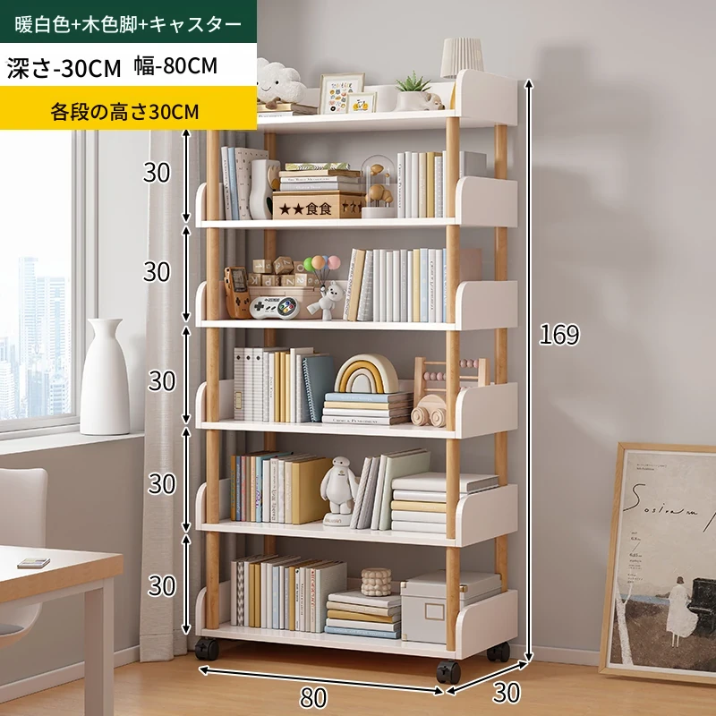 リビングルーム用壁寄せ本棚・フロア収納ラック - 家庭向け多段木製収納棚、雑貨整理に最適!おしゃれで実用的な収納ソリューションをお届けします!